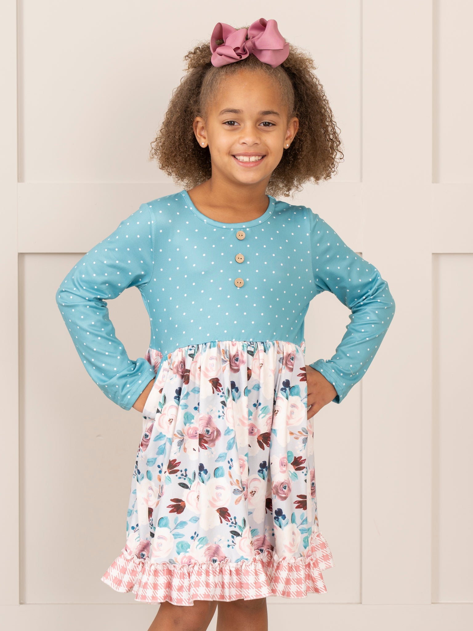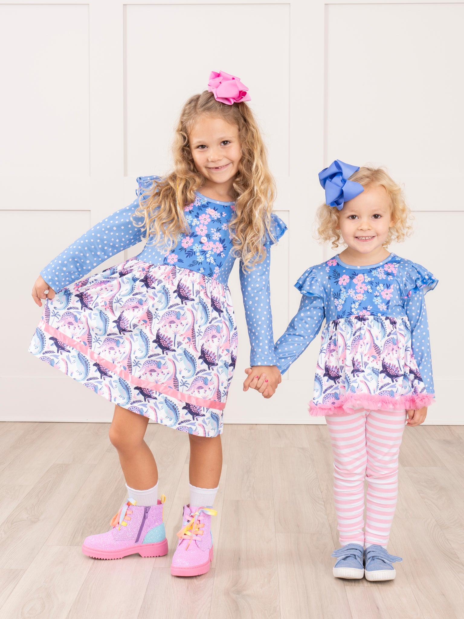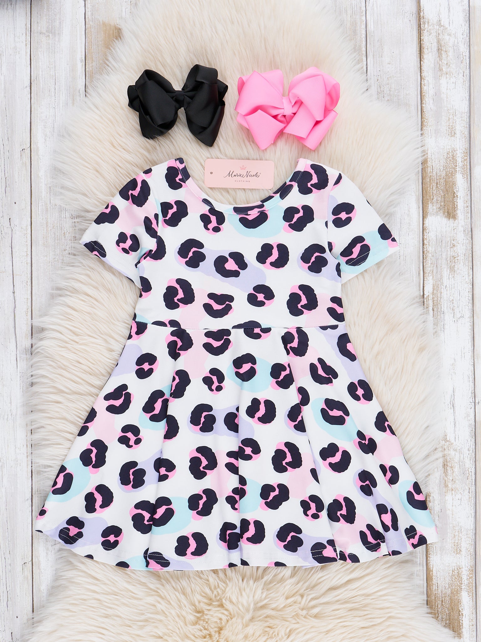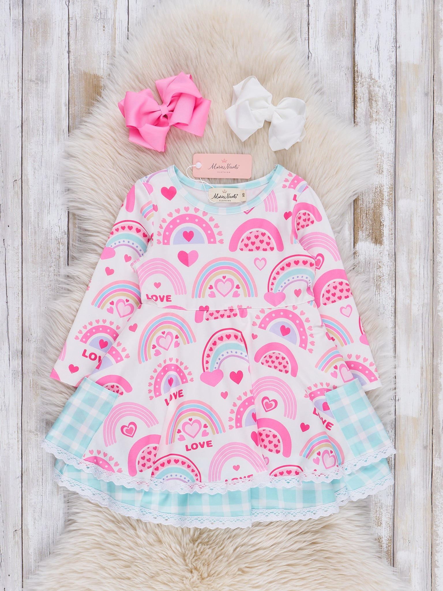 Pink & Turquoise Rainbow Hearts Ruffle Dress