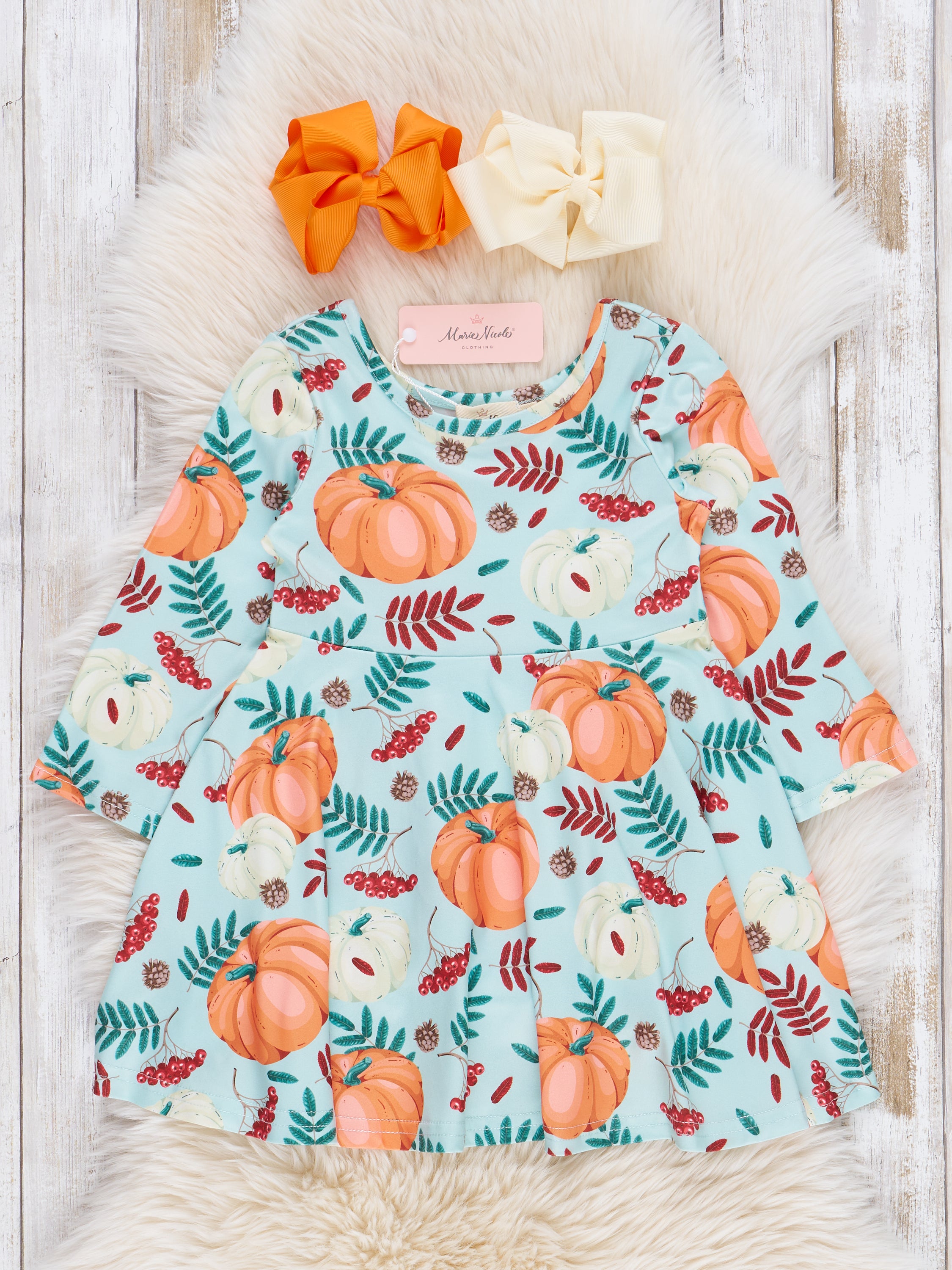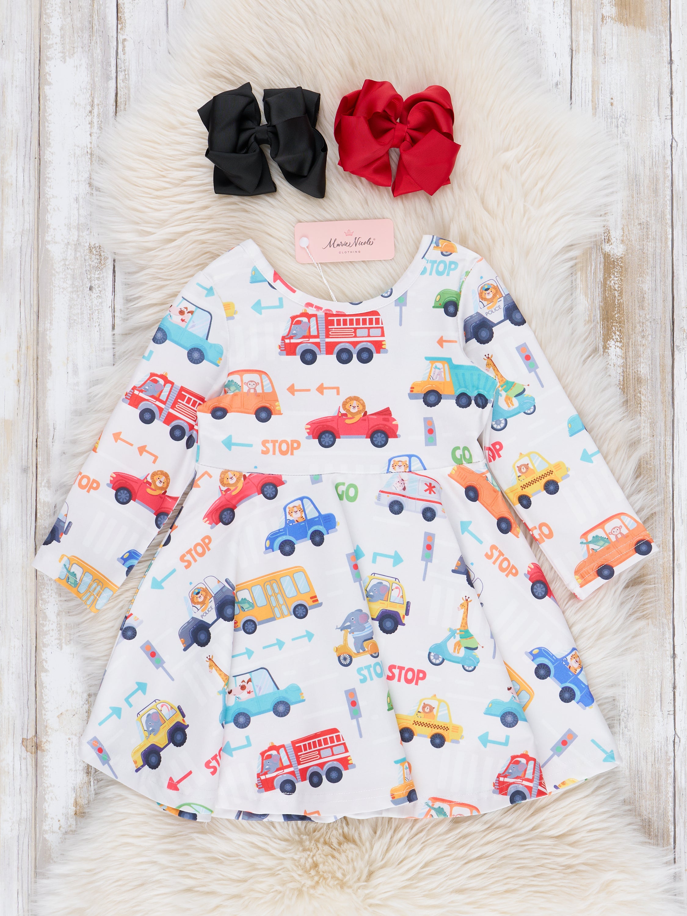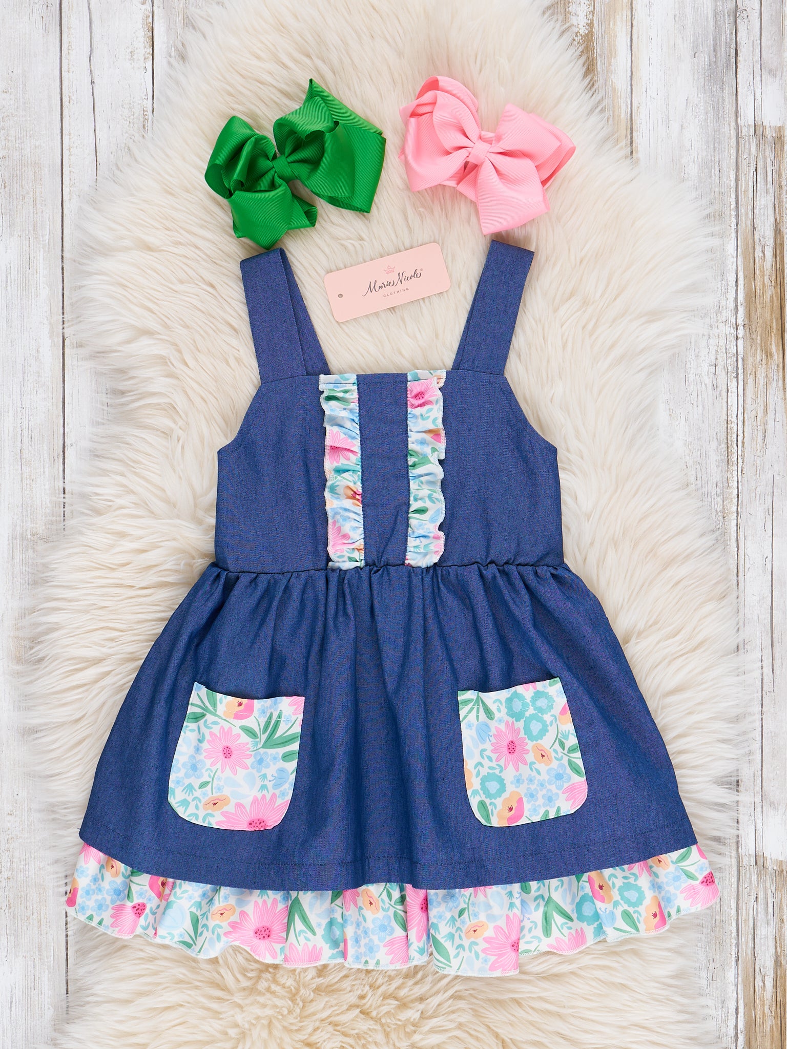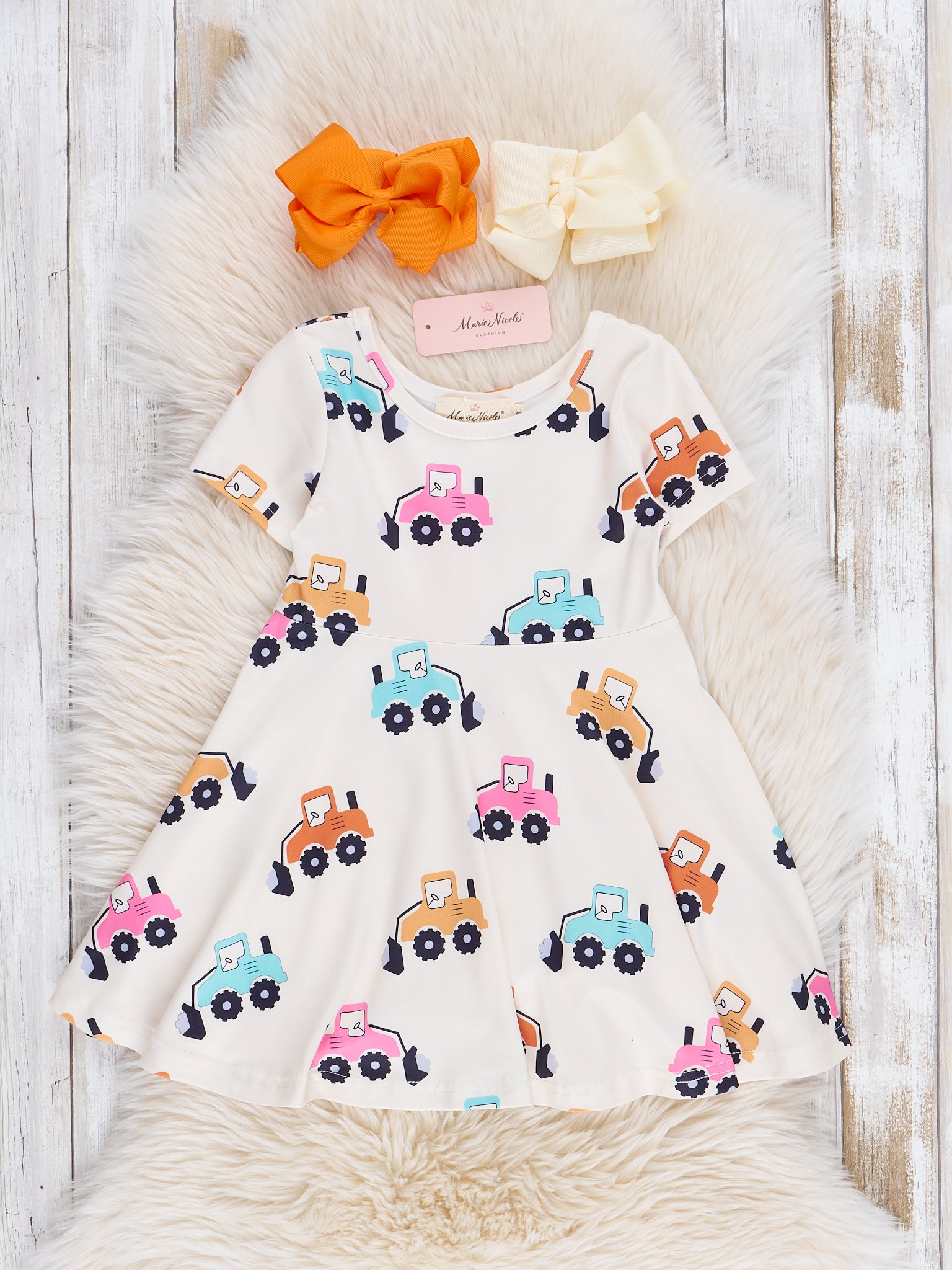 Pink & Turquoise Rainbow Hearts Ruffle Dress