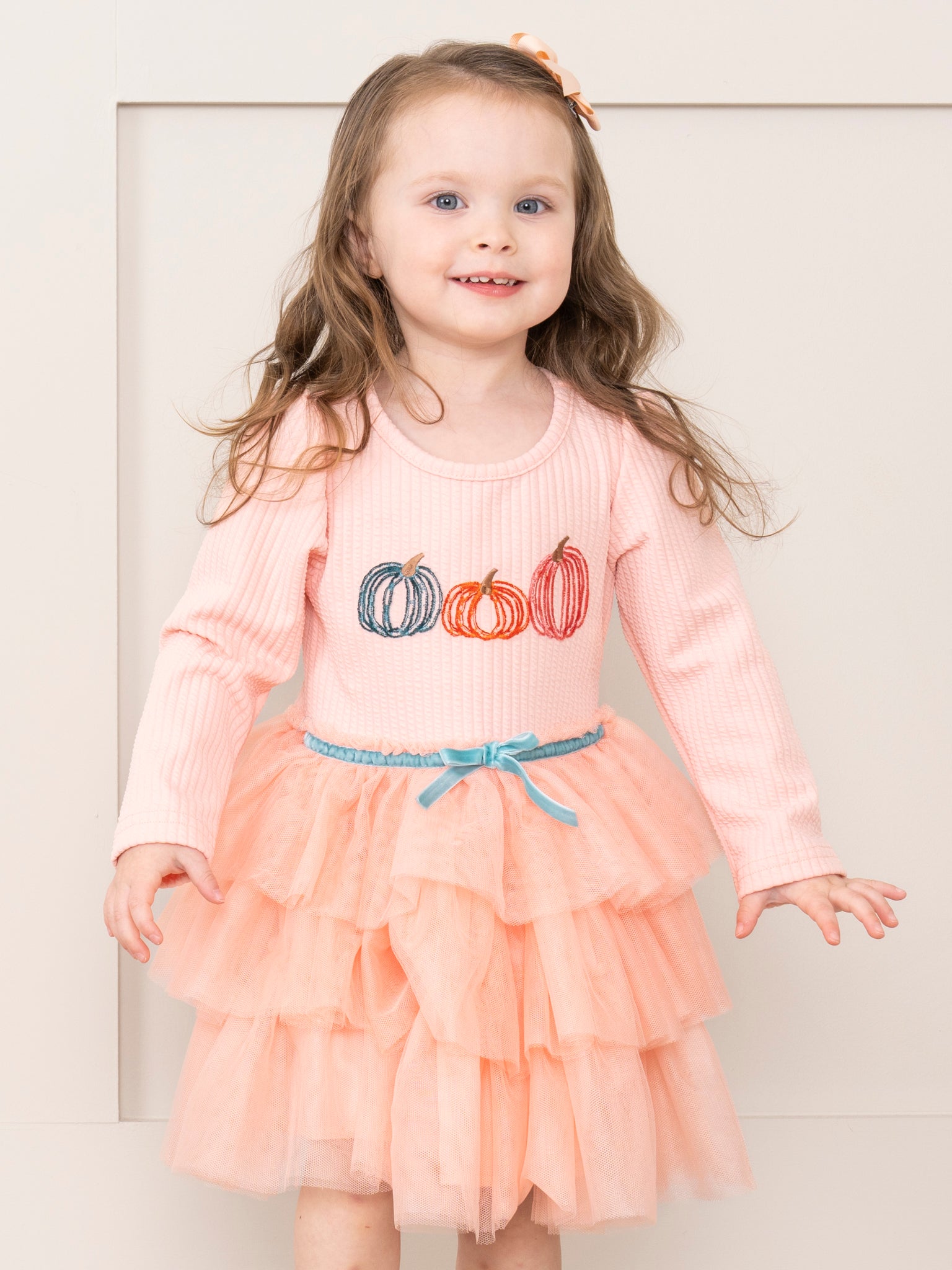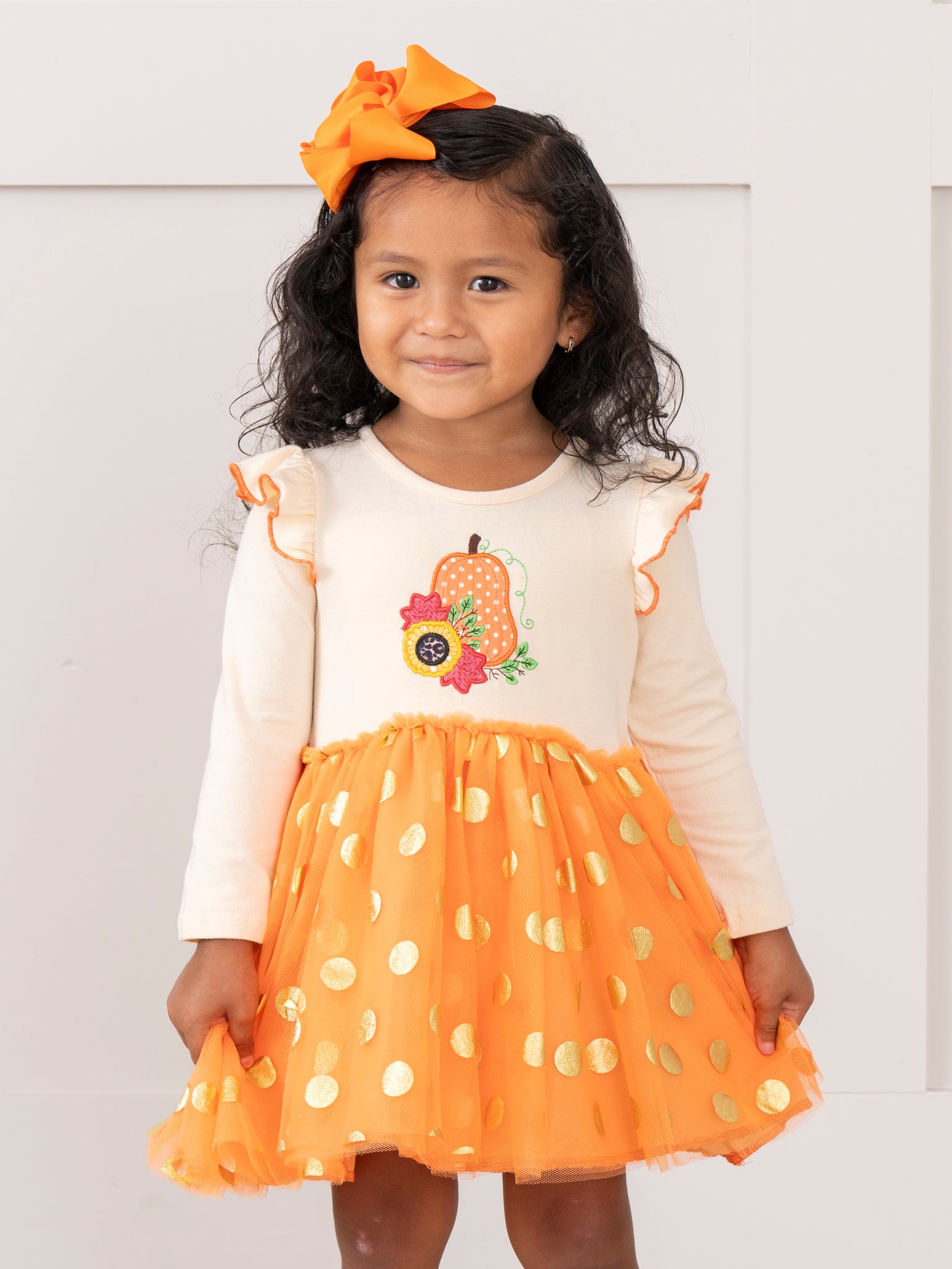 Orange Embroidered Gourds Polka Dot Tulle Dress