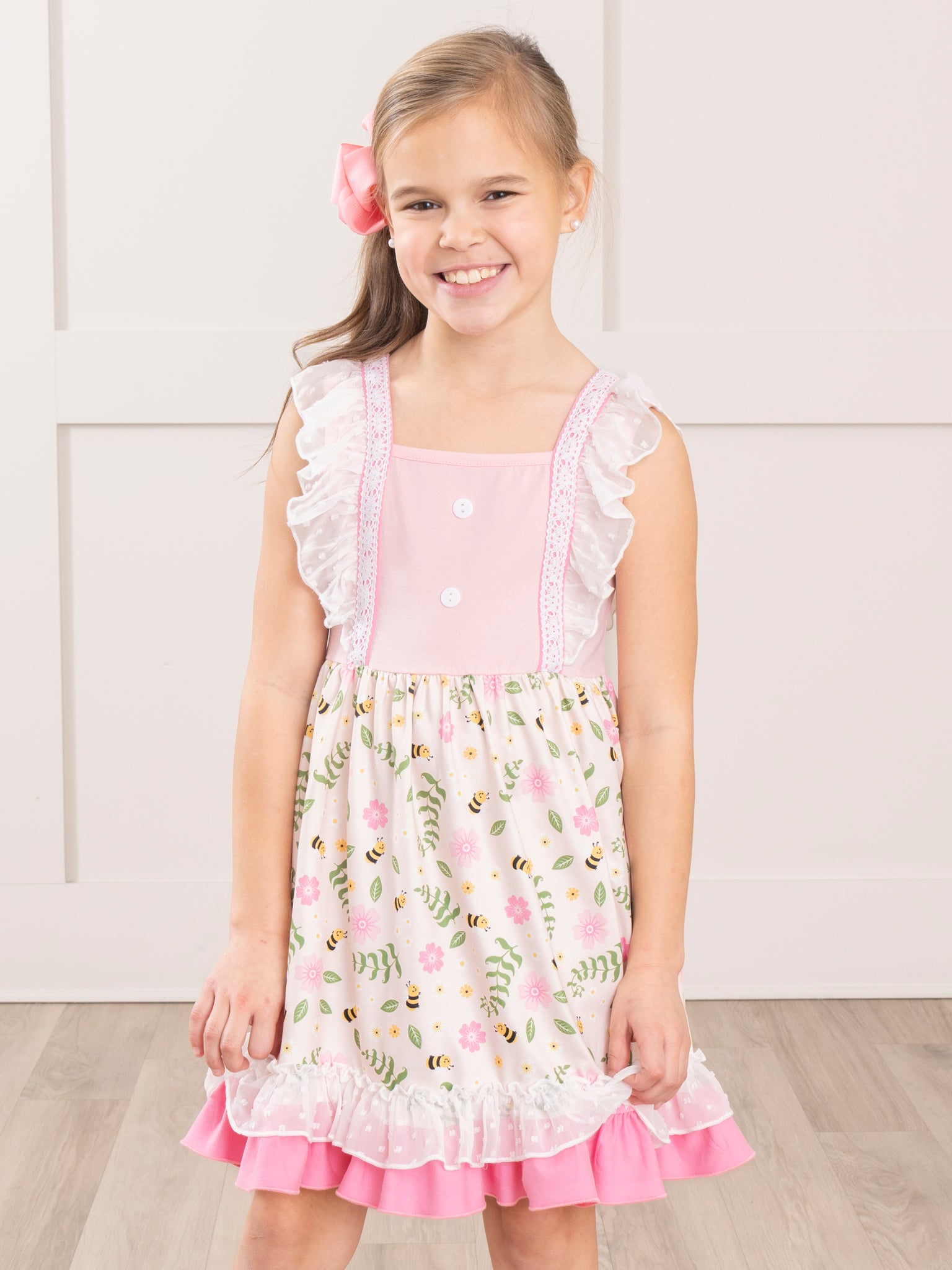 Eyelet Flutter Sleeve Garden Ruffle Dress