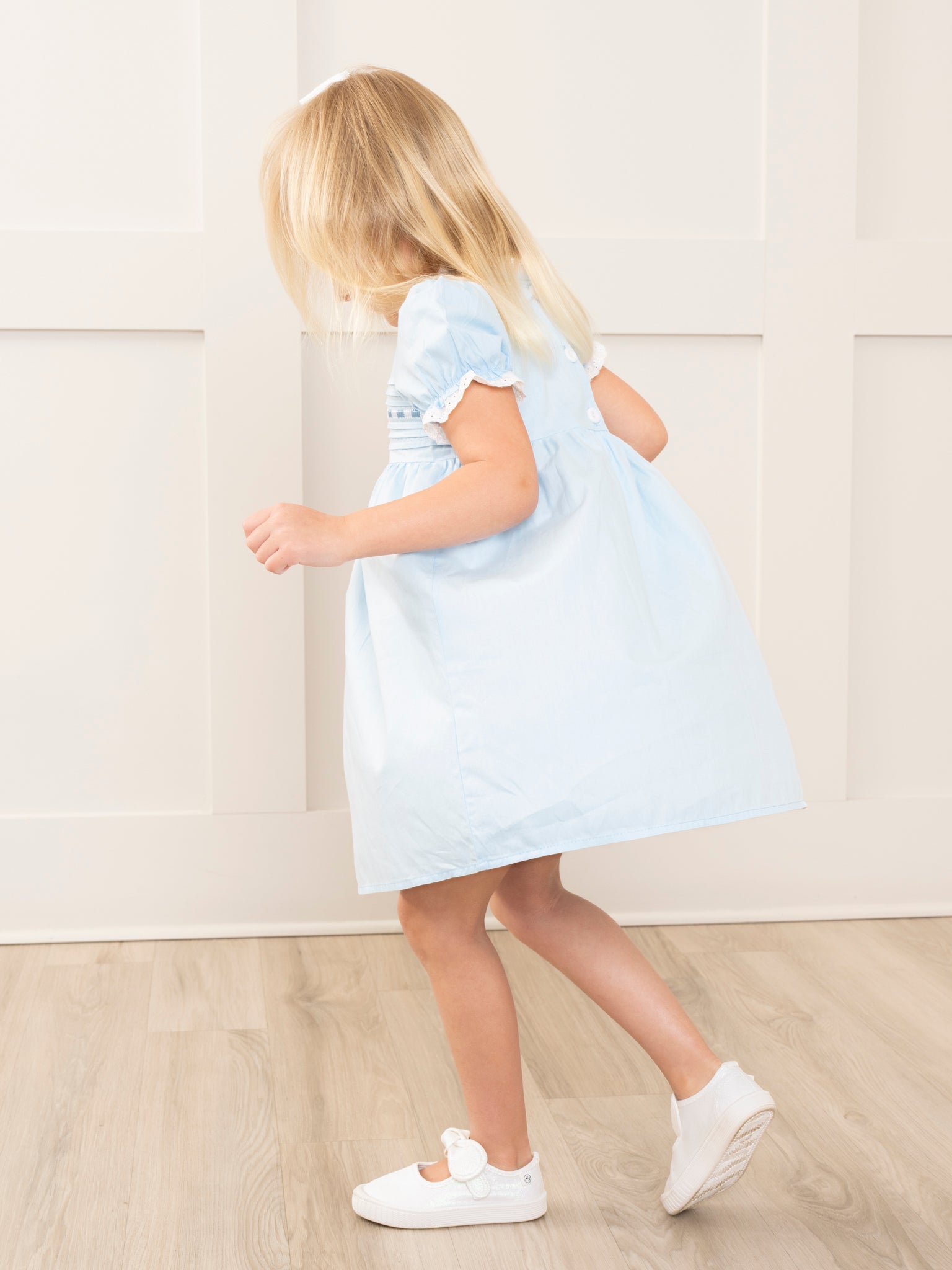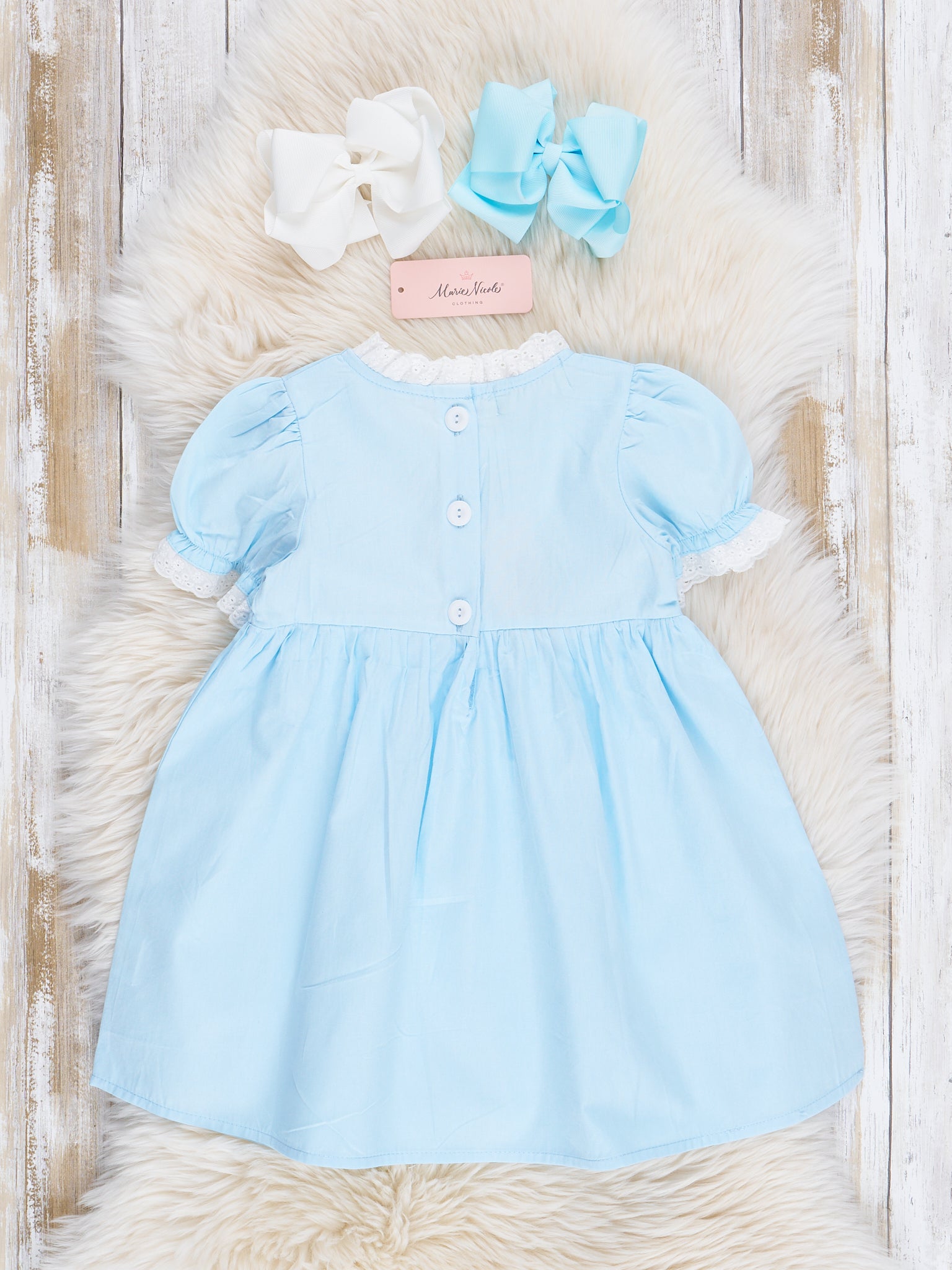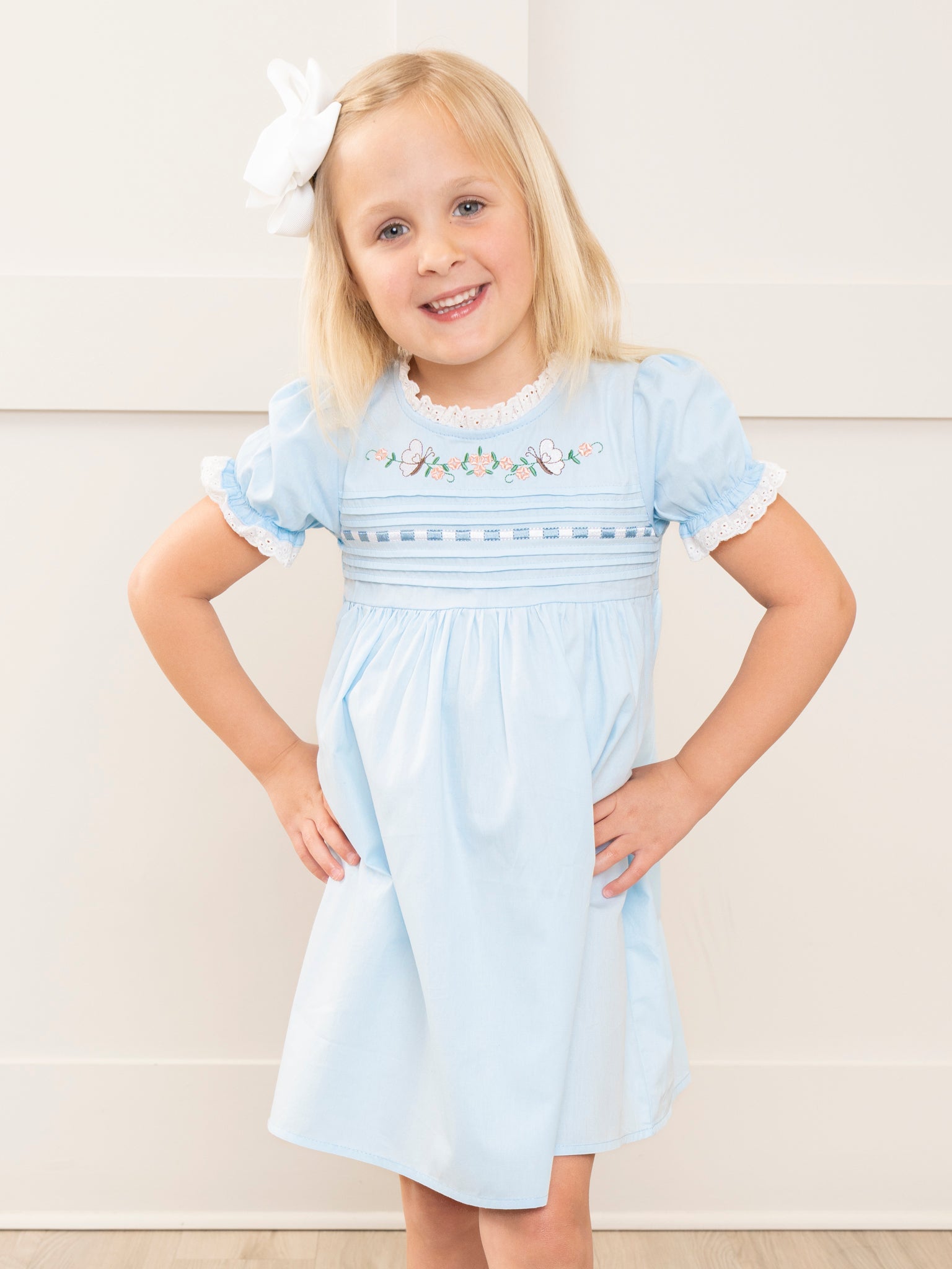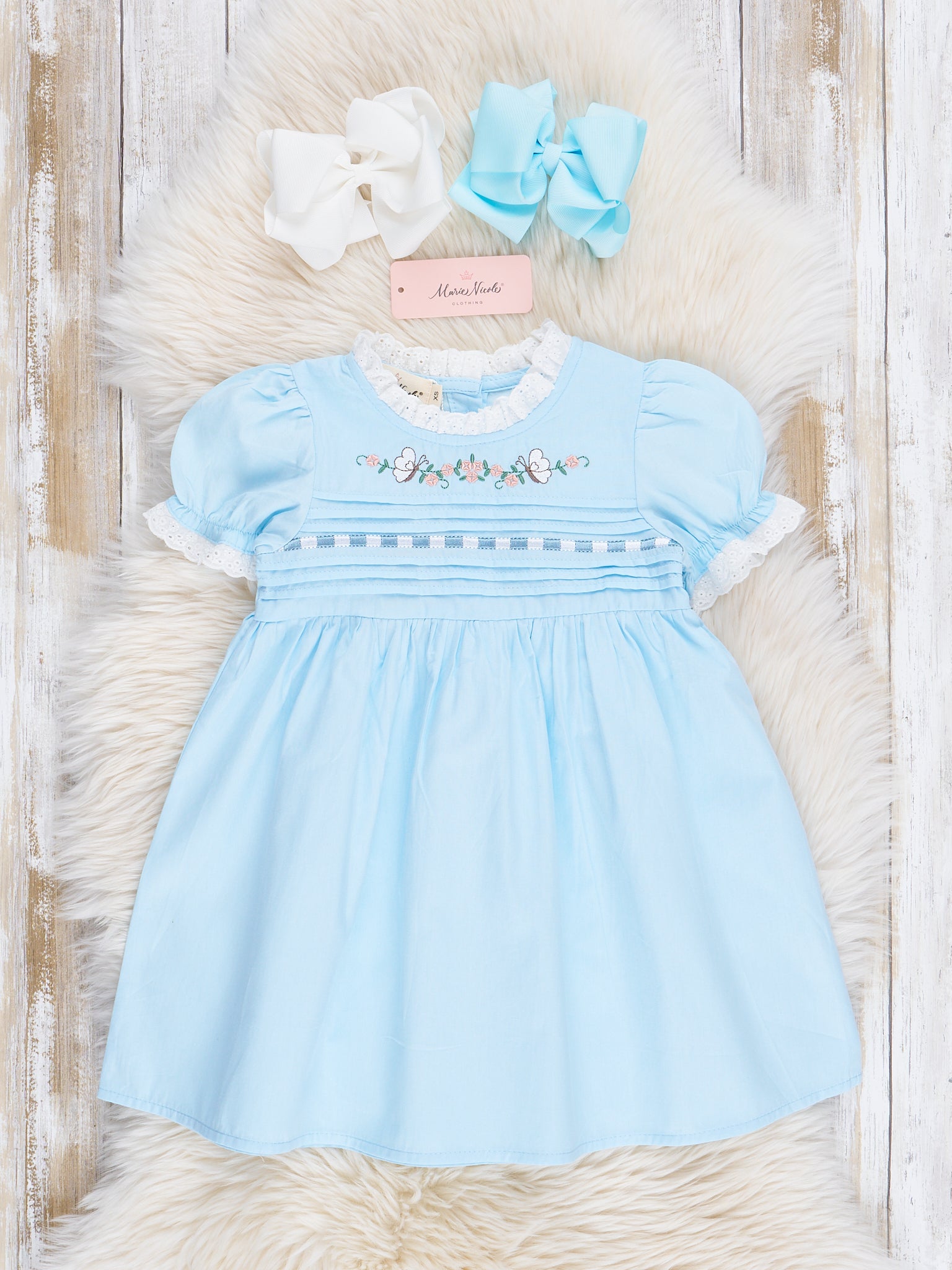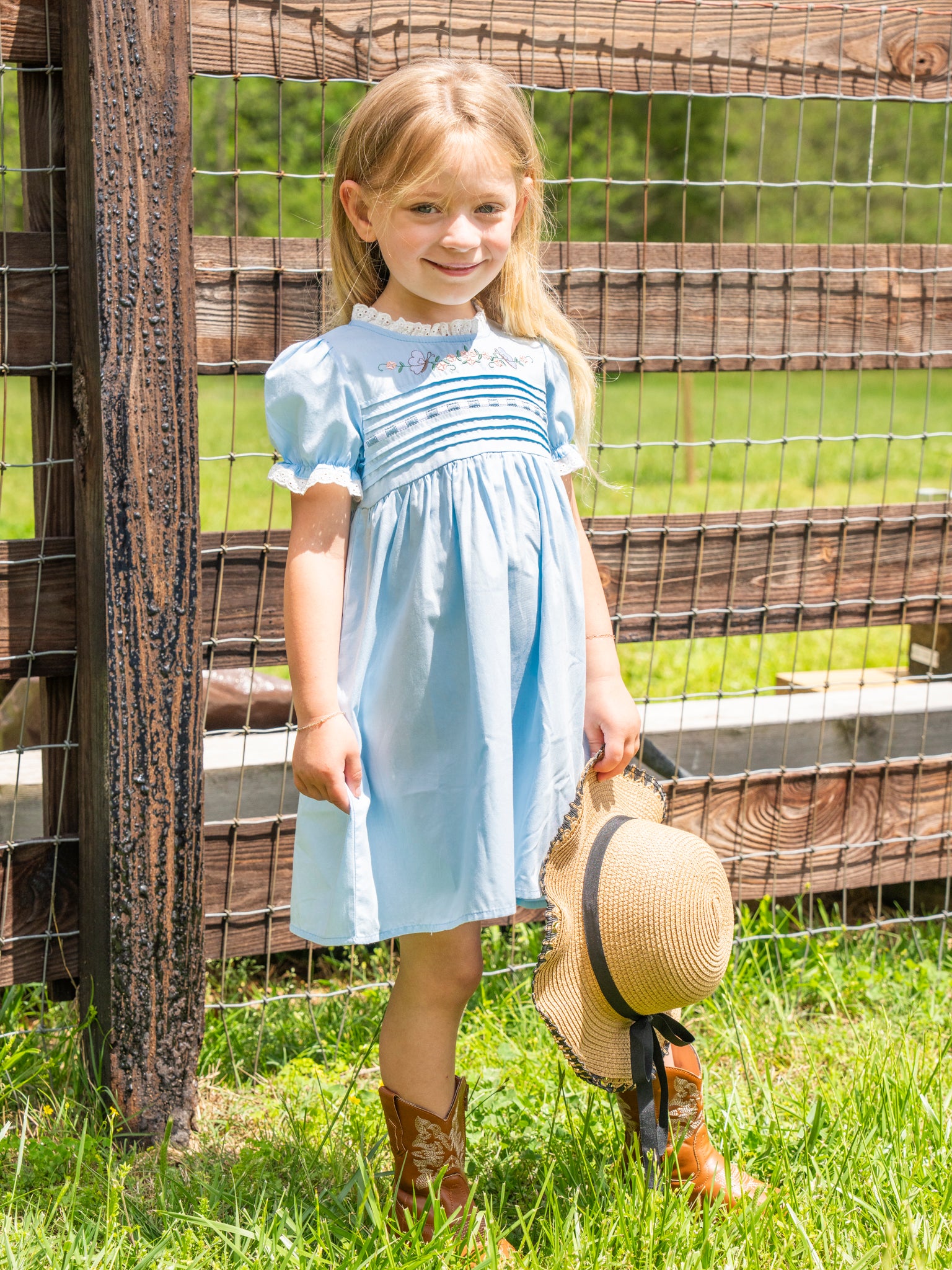 Light Blue Embroidered Garden Smocked Ruffle Dress