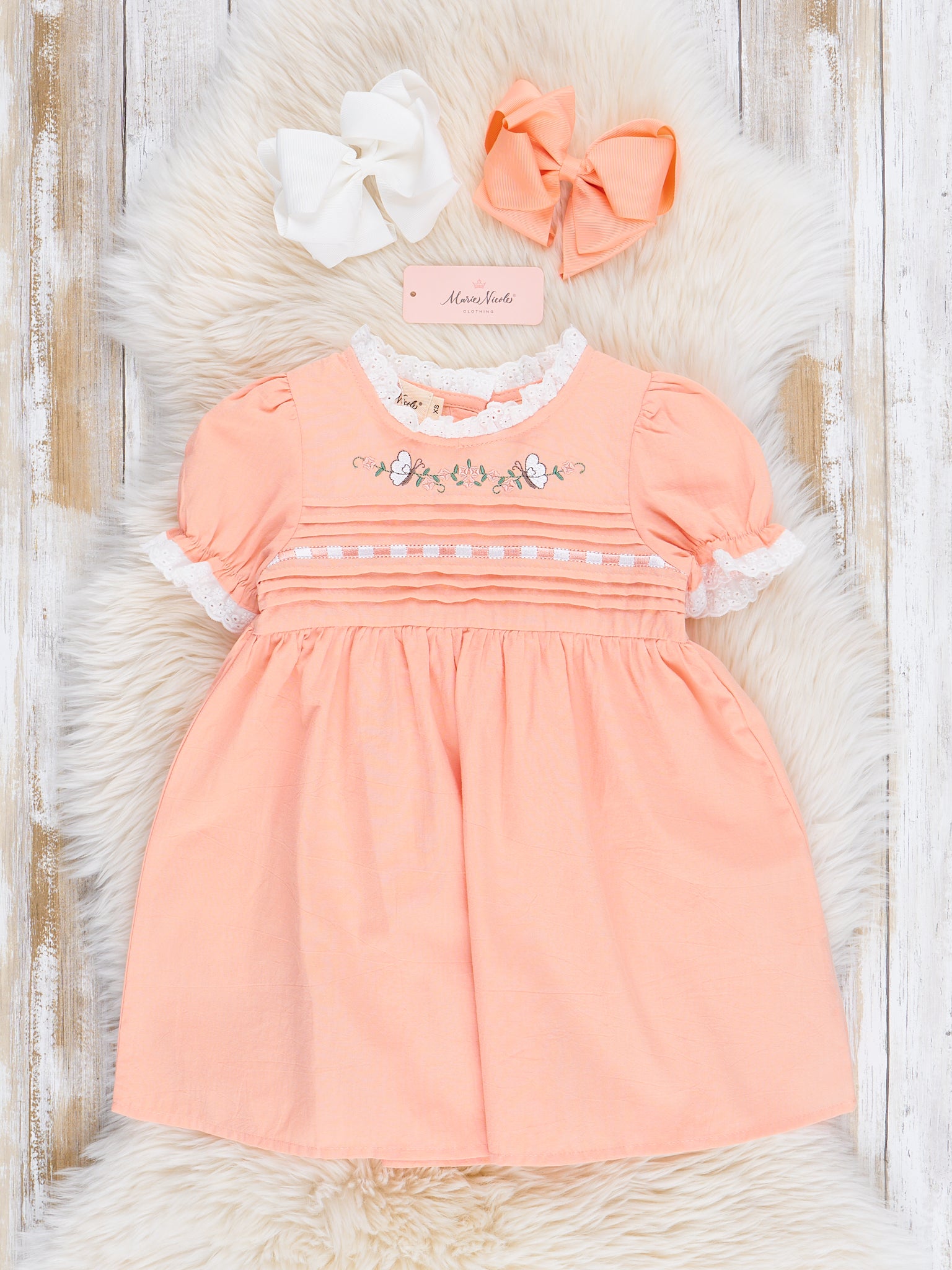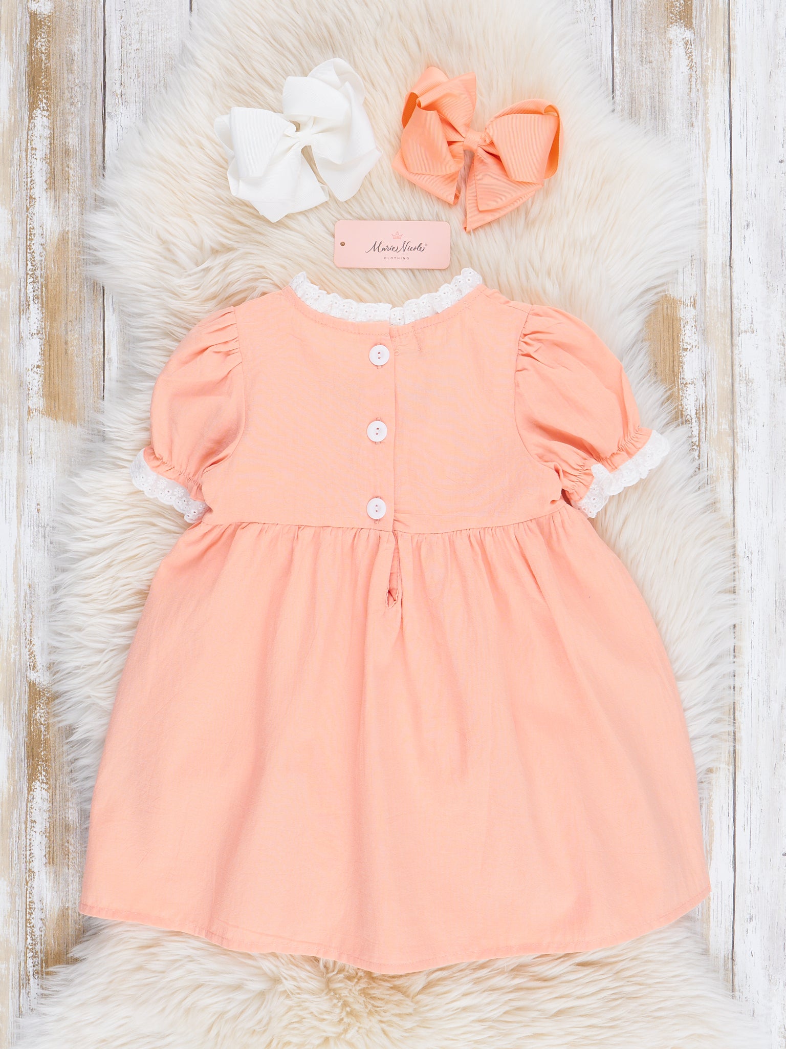 Peach Embroidered Garden Smocked Ruffle Dress