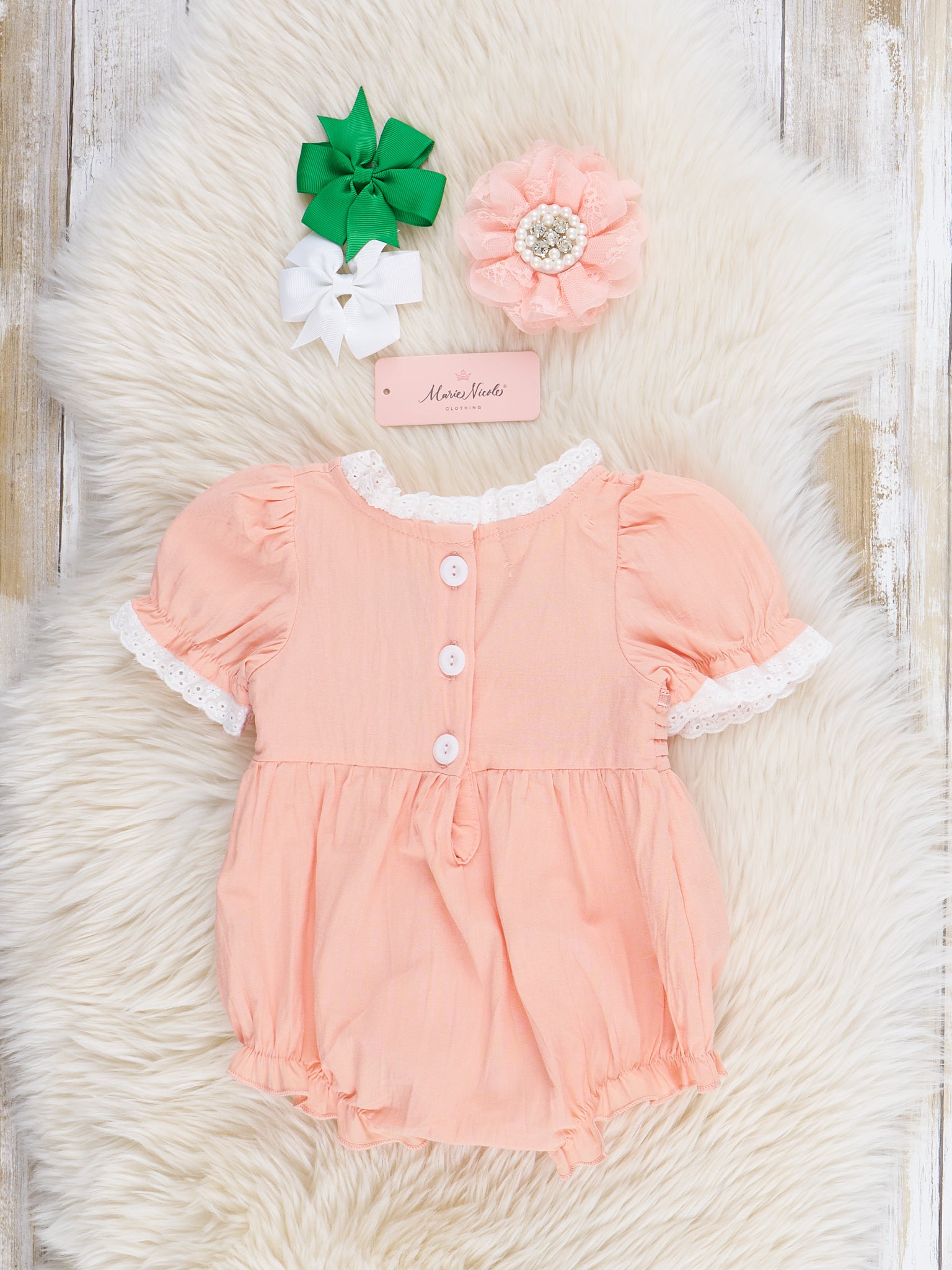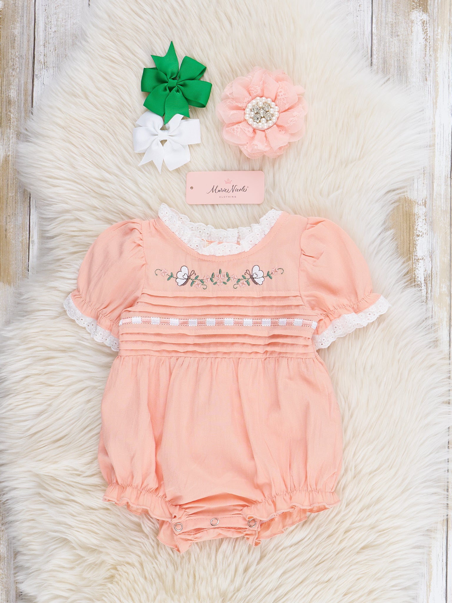 Peach Embroidered Garden Smocked Ruffle Bubble