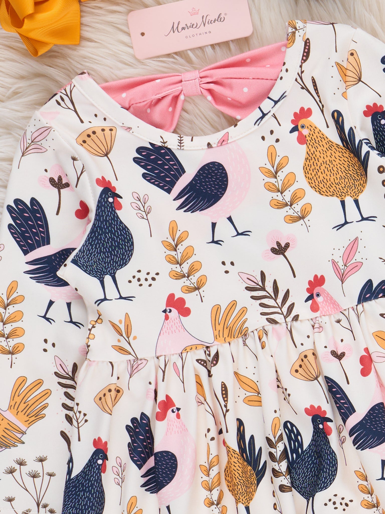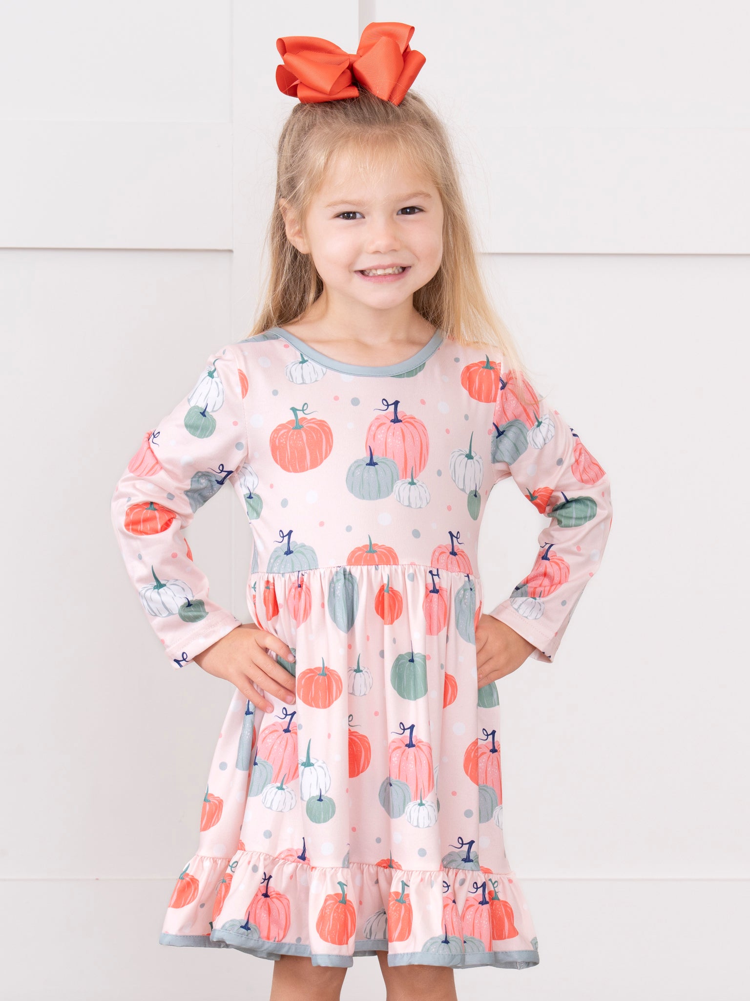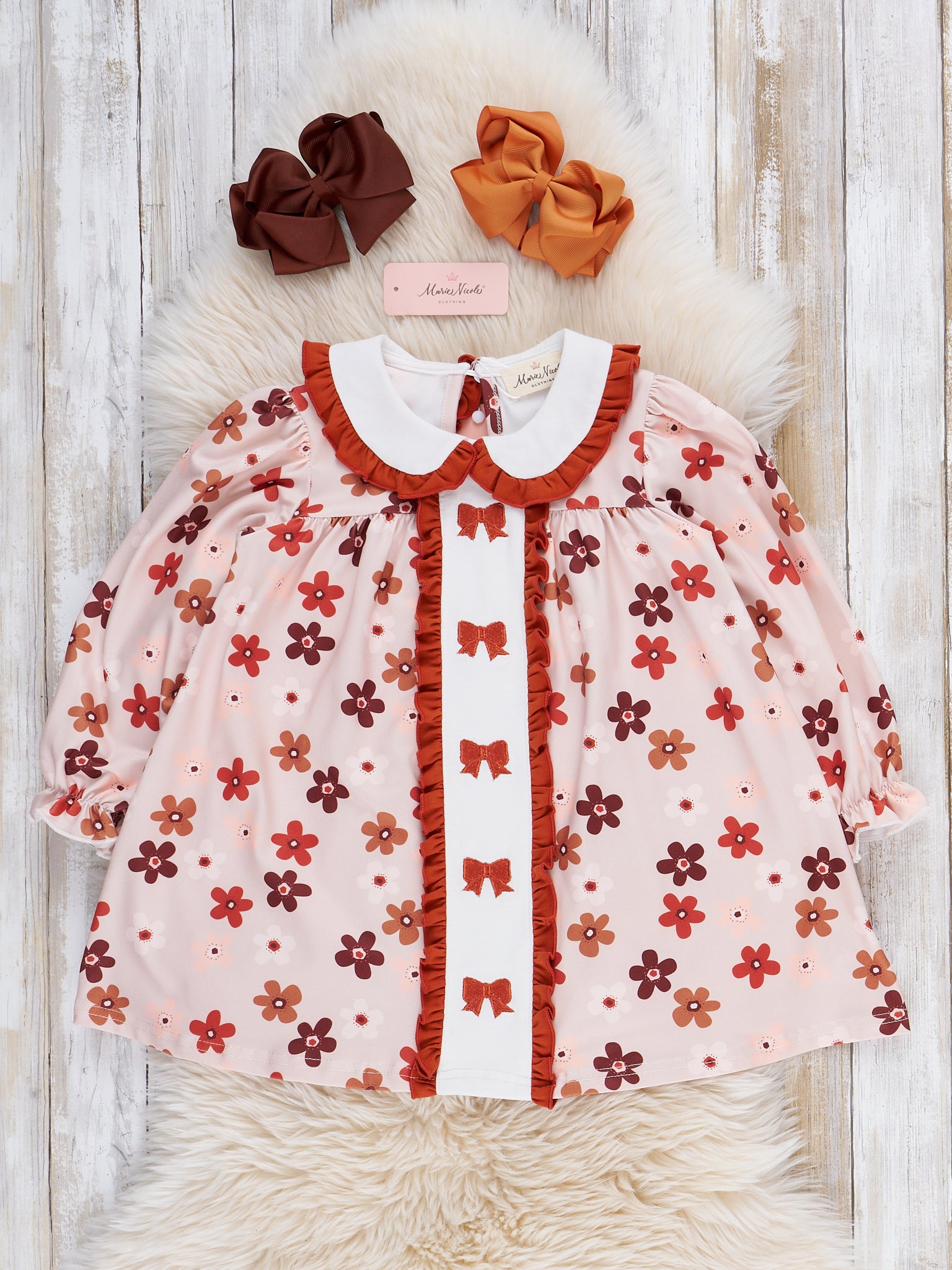 Pumpkin Botanicals Embroidered Bow Ruffle Dress