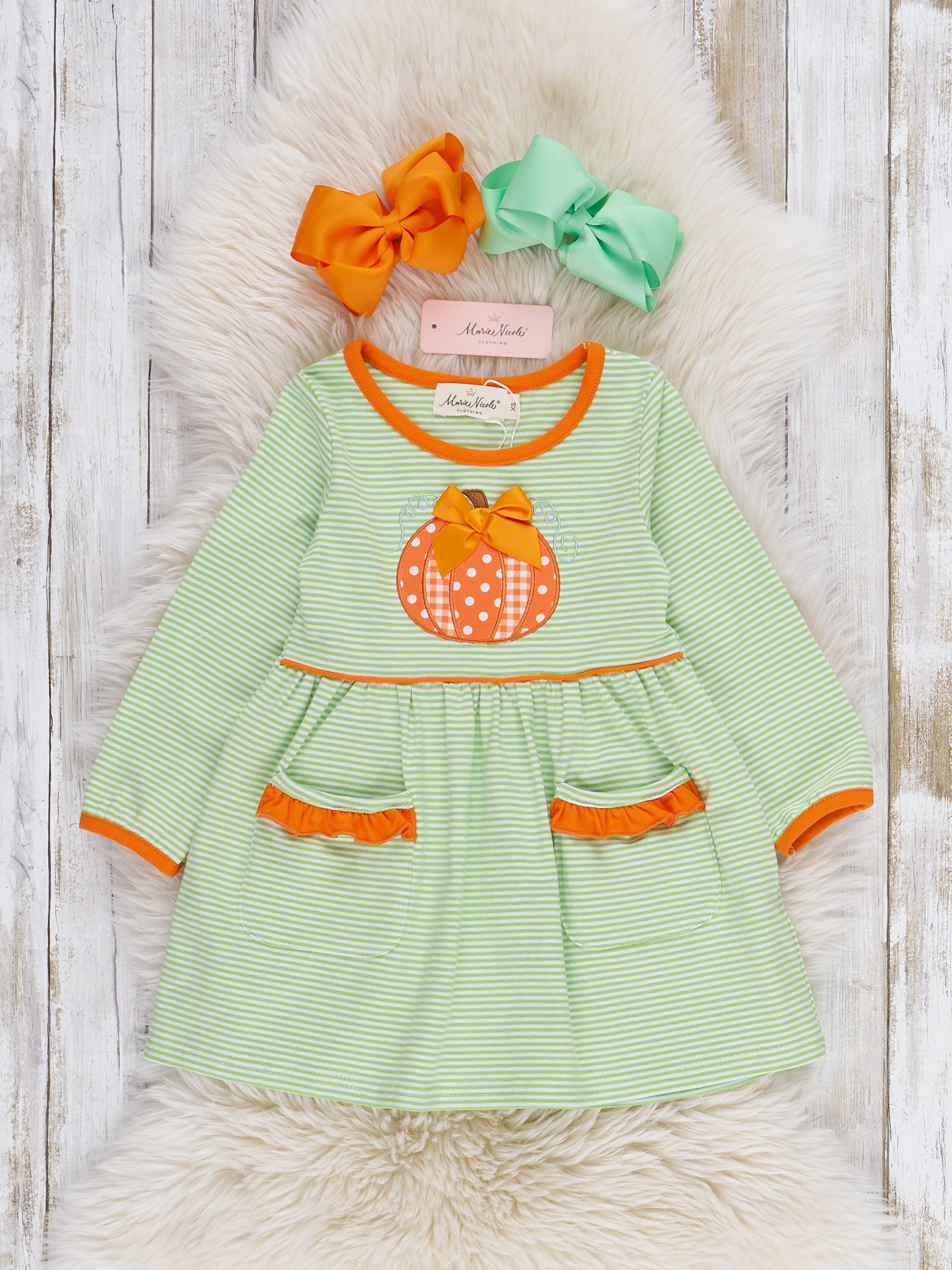 Sunshine Pumpkin Drive Embroidered Bow Ruffle Dress