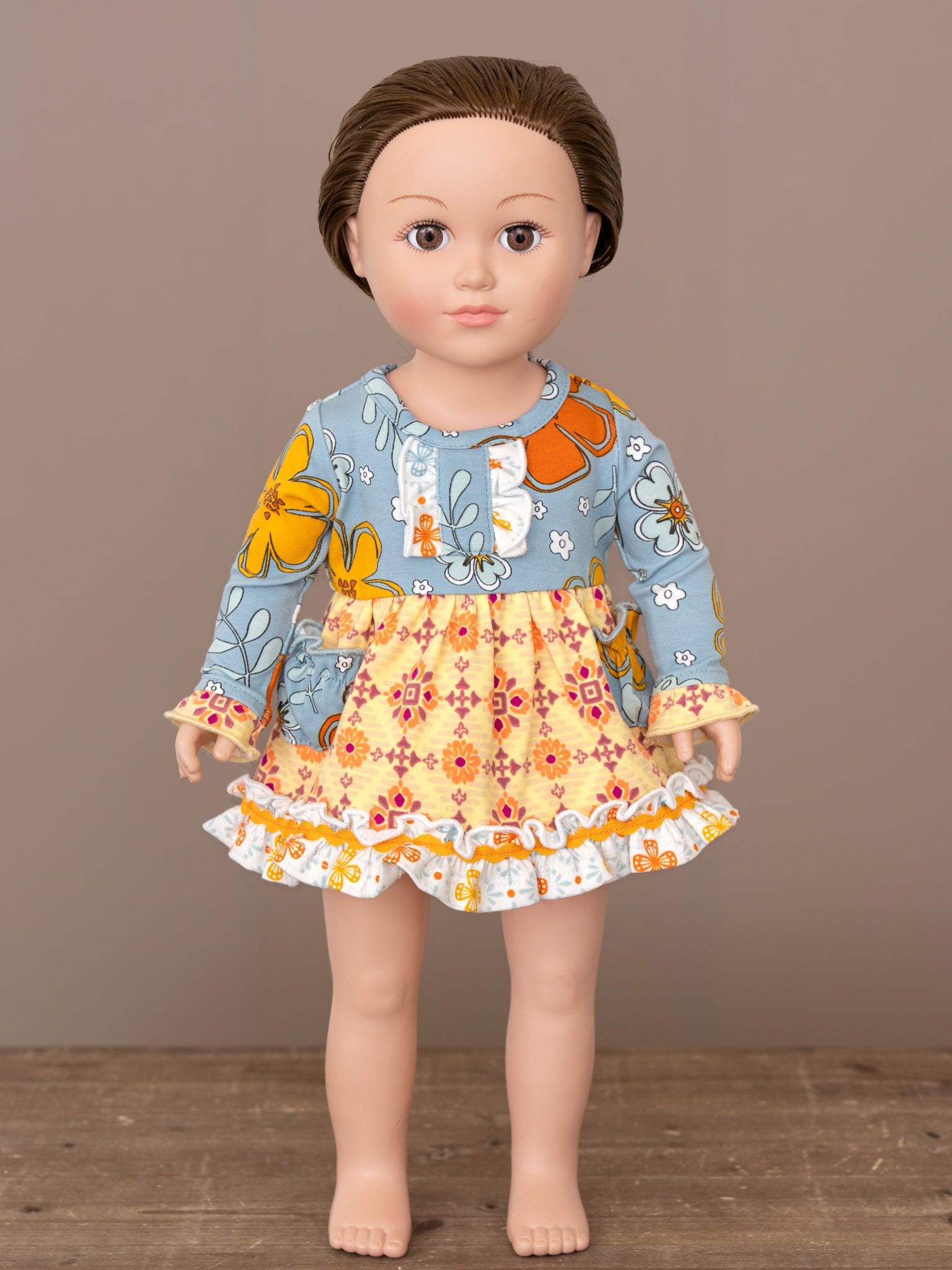 Pumpkins & Blue Stripes Embroidered Ruffle Dress