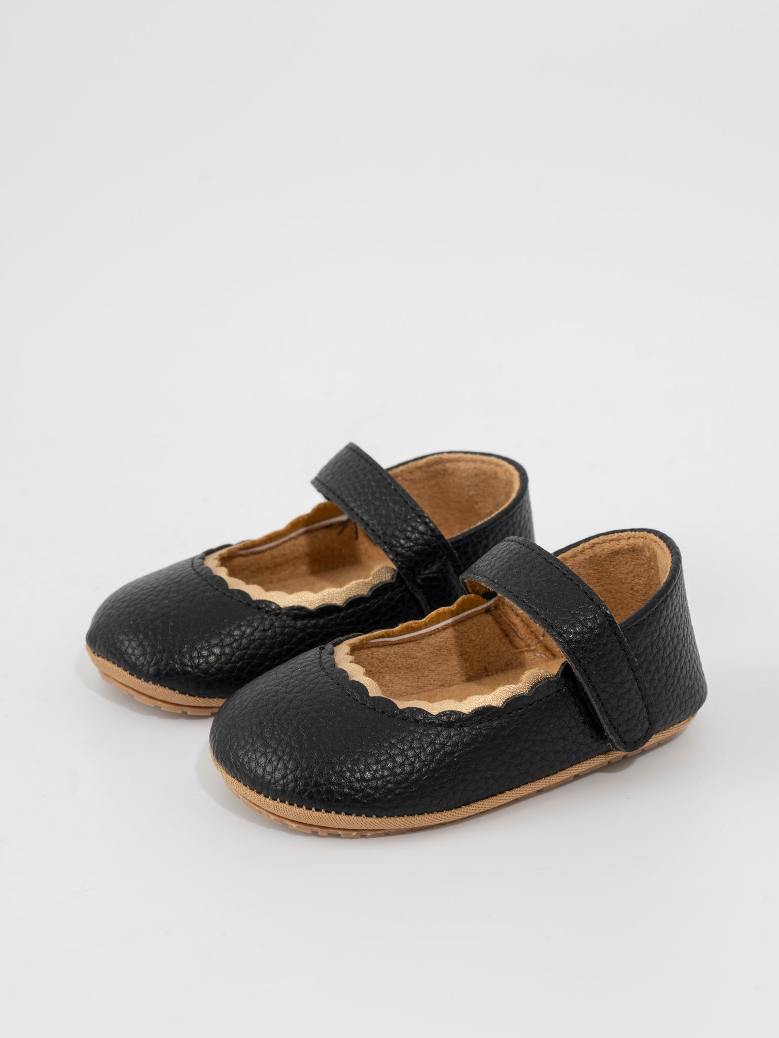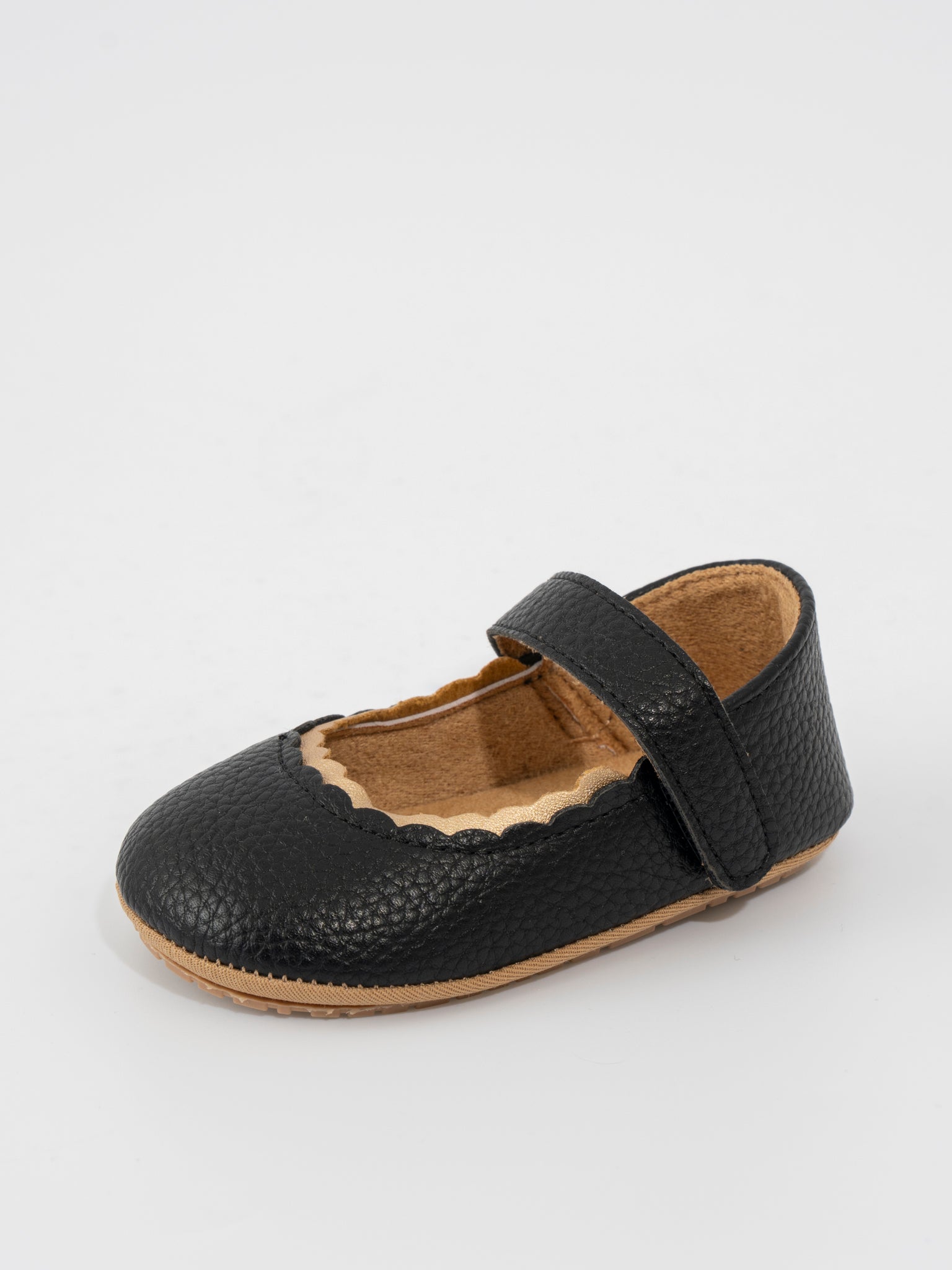 The Scalloped Toe Mary Jane Baby Shoe is a charming staple shoe for the everyday but also great to dress up. This pair from Marie Nicole Clothing has a scalloped edge design that gives an extra cute, stylish touch. Along with the velcro strap, these are easy to wear and comfortable for your child to add to any outfit!