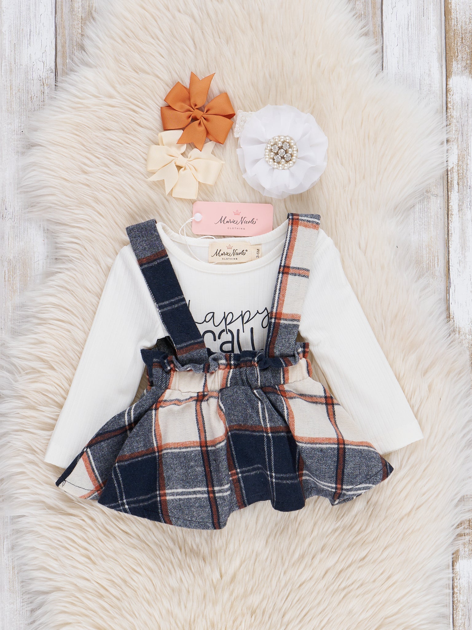 Navy Plaid "Happy Fall Y'all" Bubble Skirtall Set