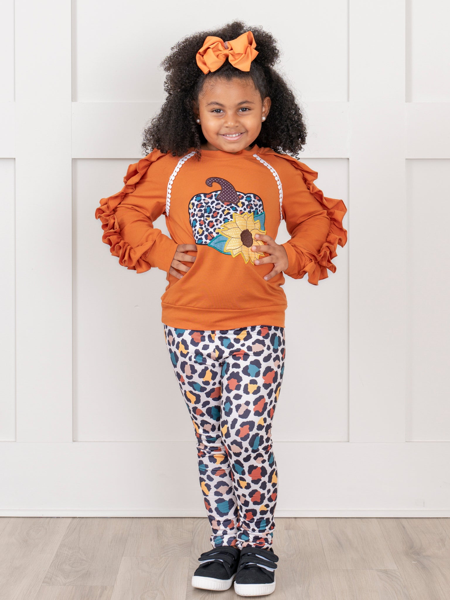 Bronze & Teal Leopard Harvest Ruffle Outfit