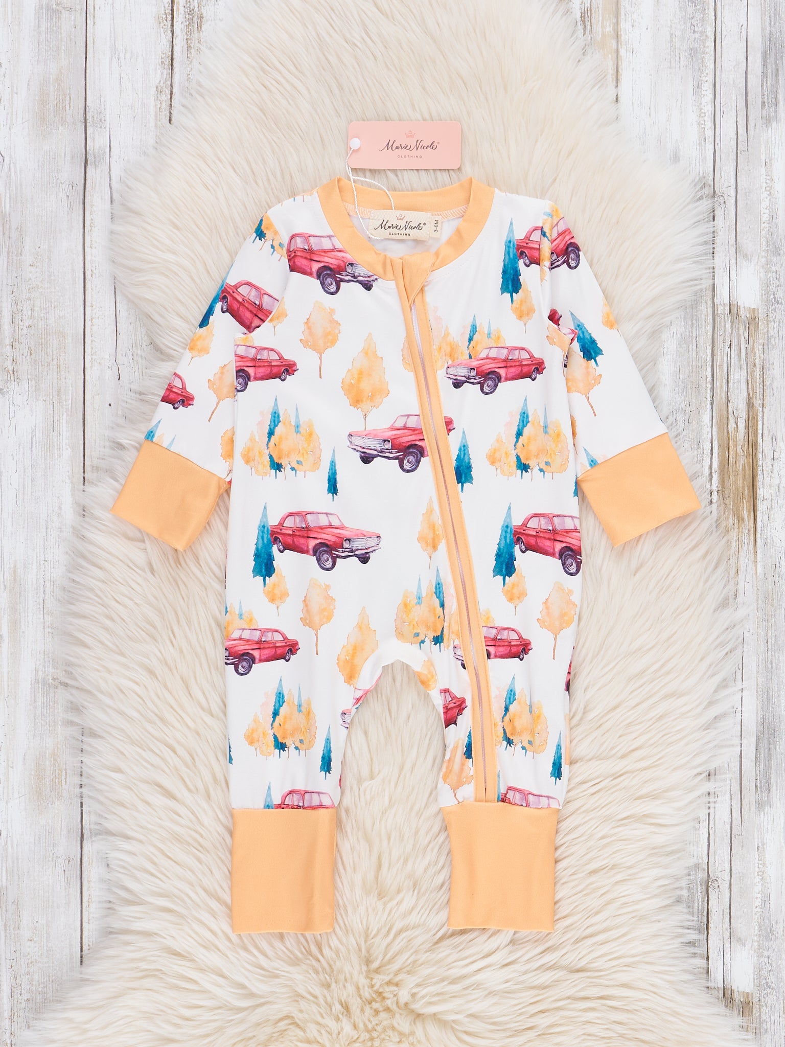 The Campground Cruiser Sleeper Pajamas are made for cozy nights and camping dreams. Featuring a fun and adventurous print of cruiser and trees, these pajamas from Marie Nicole Clothing bring outdoorsy charm to bedtime. Crafted from soft, stretchy fabric with a full-length zipper, they’re perfect for keeping your little explorer comfy all night long.