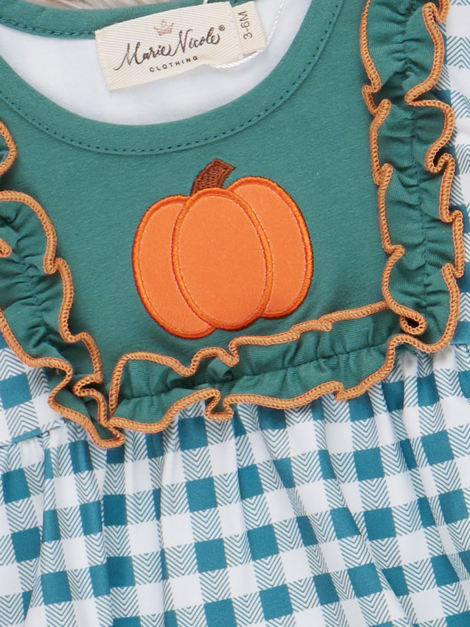 Pumpkin Patch Pines Embroidered Plaid Bubble