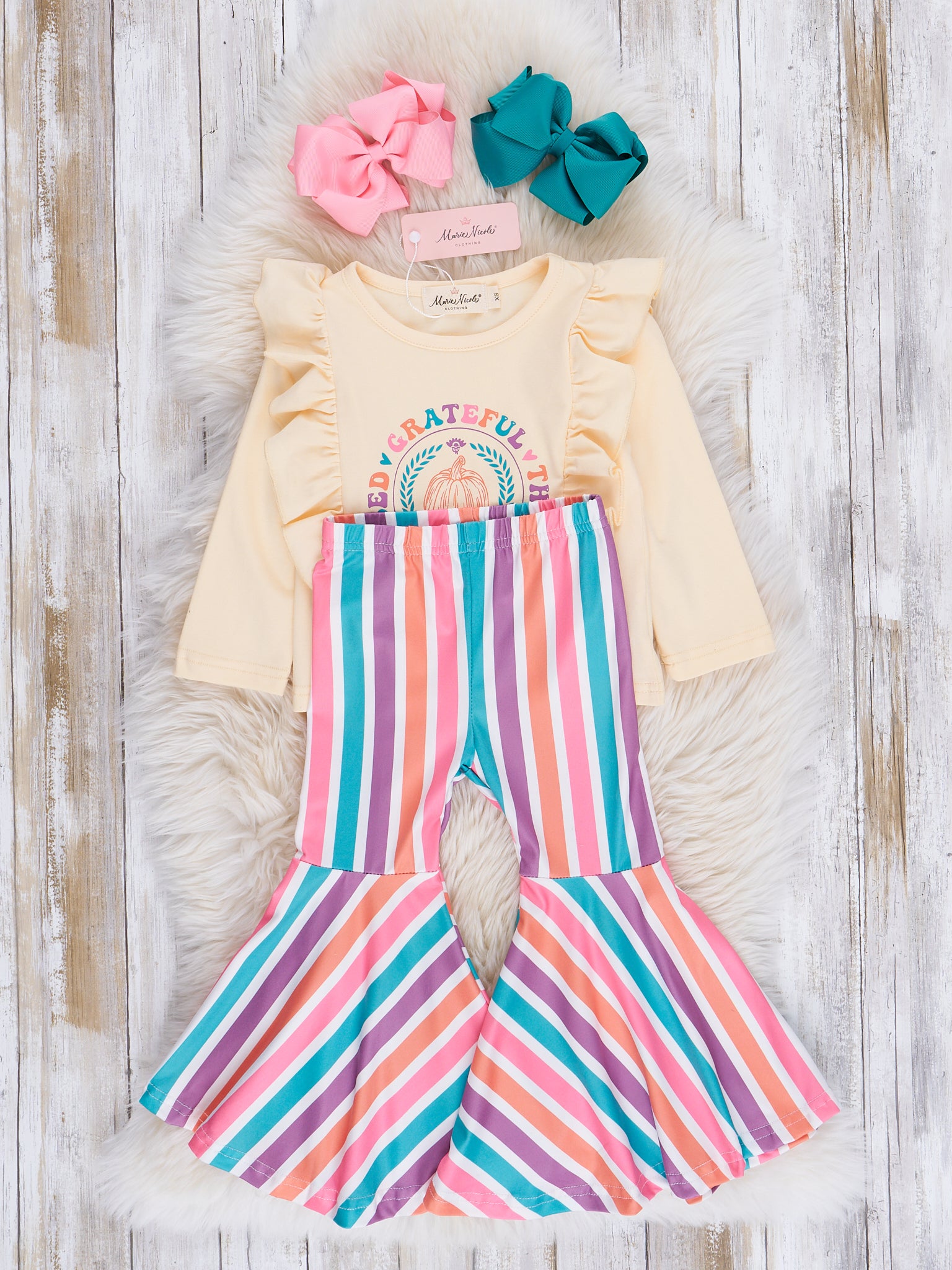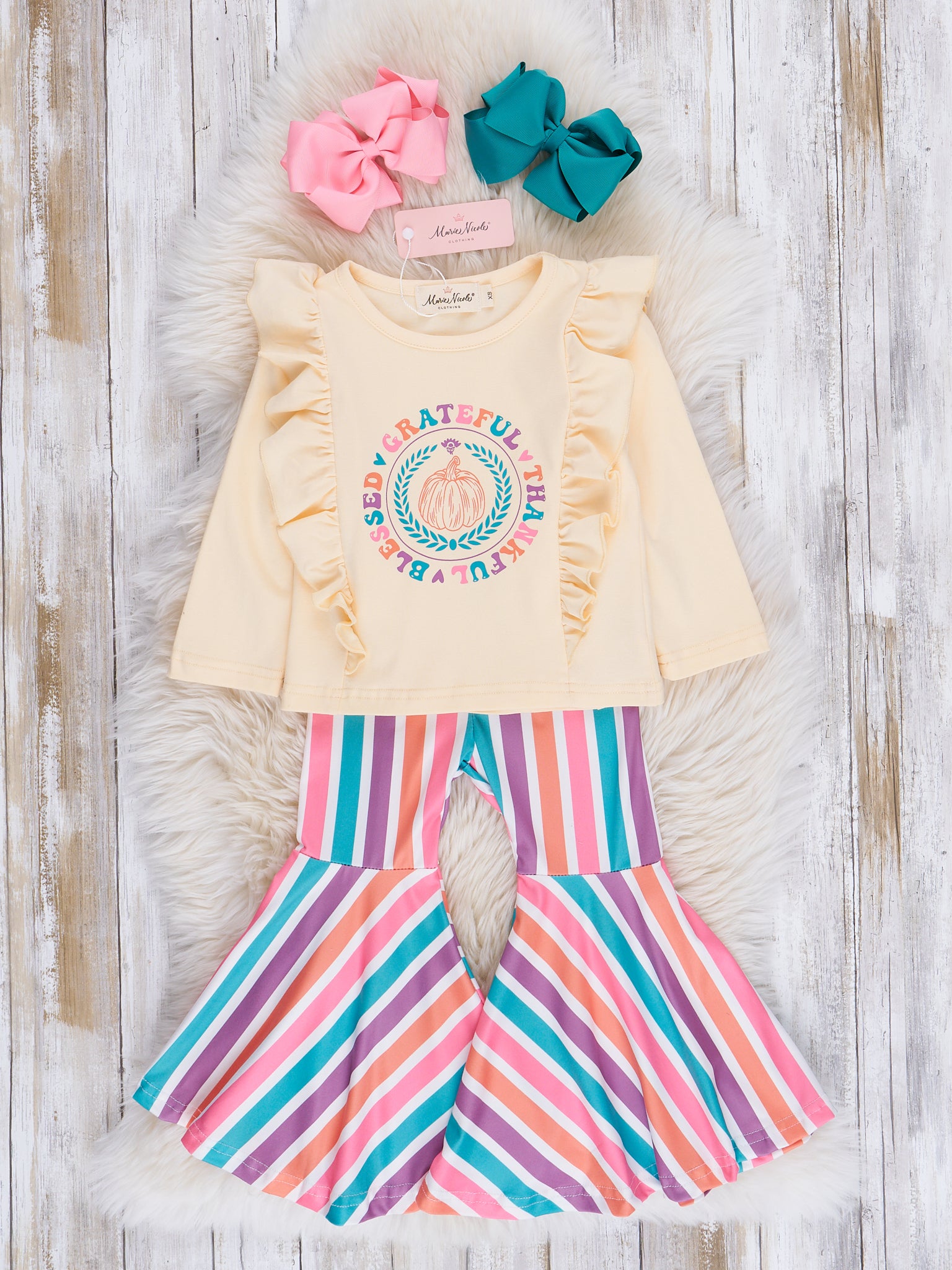 Grateful, Thankful, Blessed Striped Bell Bottoms Outfit