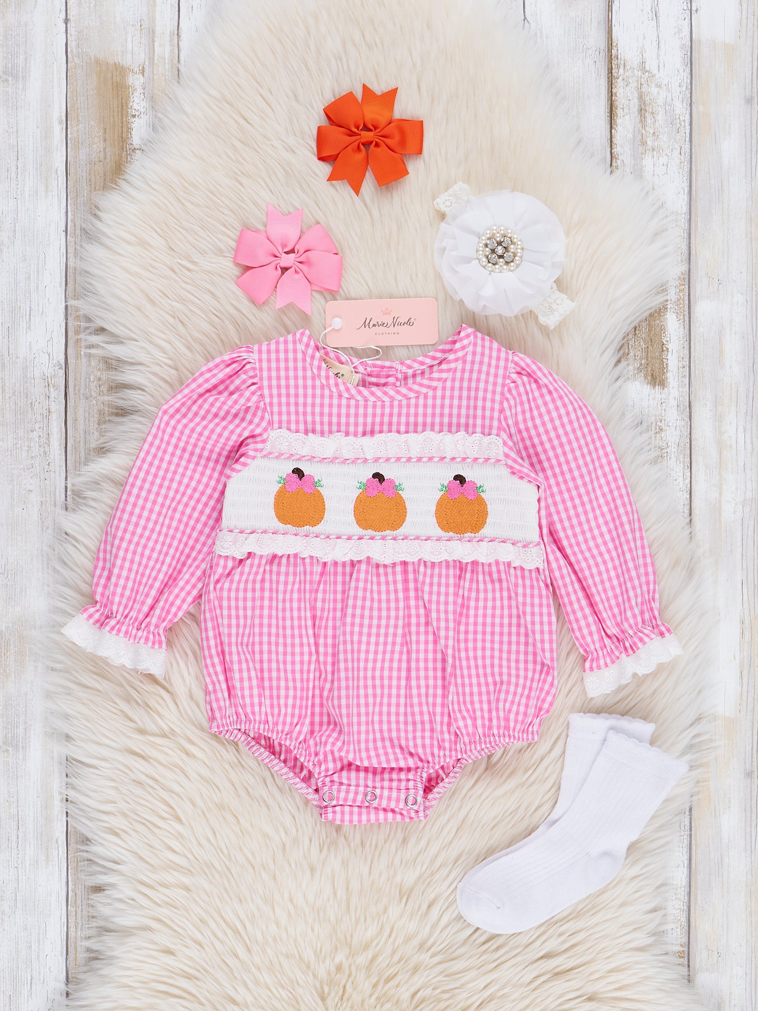 Pink Gingham Smocked Pumpkin Ruffle Bubble