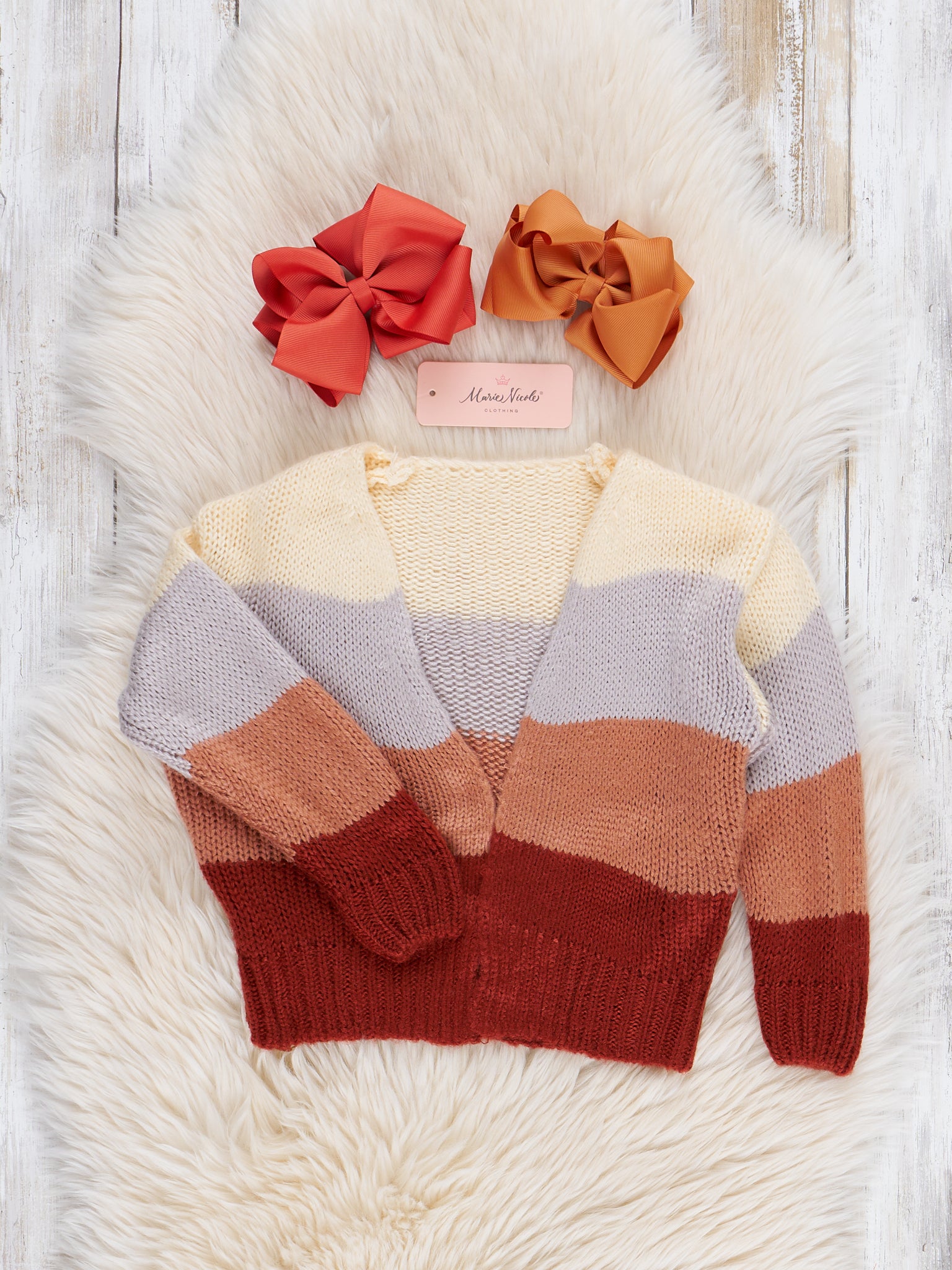 The Crimson Colorblock Sweater is the perfect layer for cool days! This cozy sweater by Marie Nicole Clothing features crimson, pumpkin spice, lilac, & cream color block. Crafted with soft, comfortable fabric, it is the perfectly cozy addition to any outfit this fall season!
