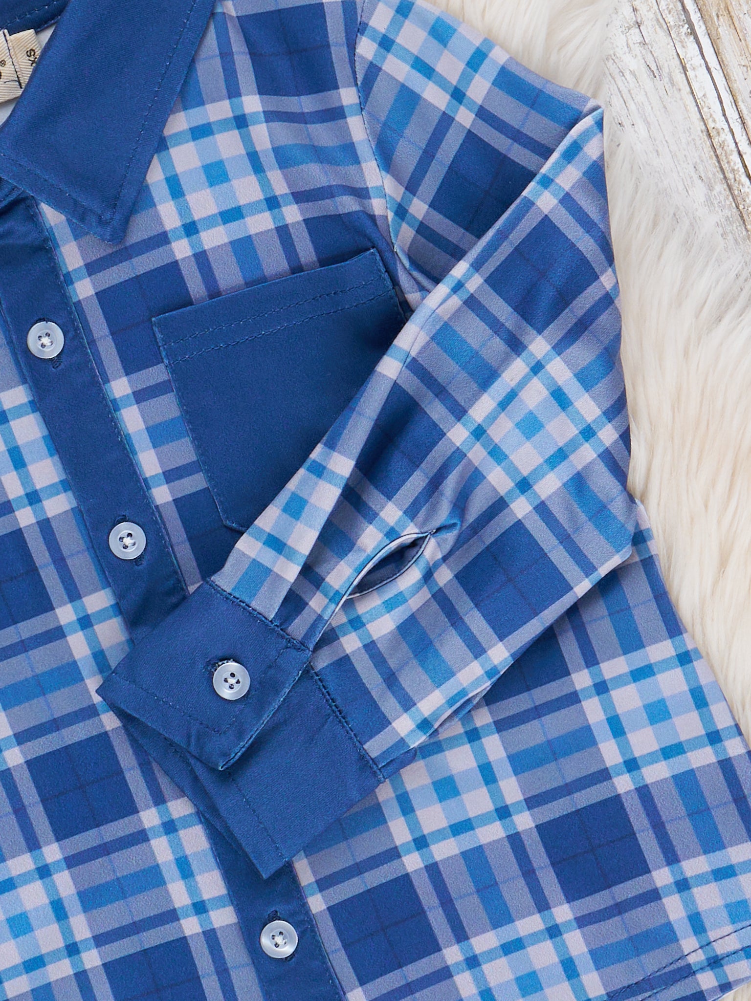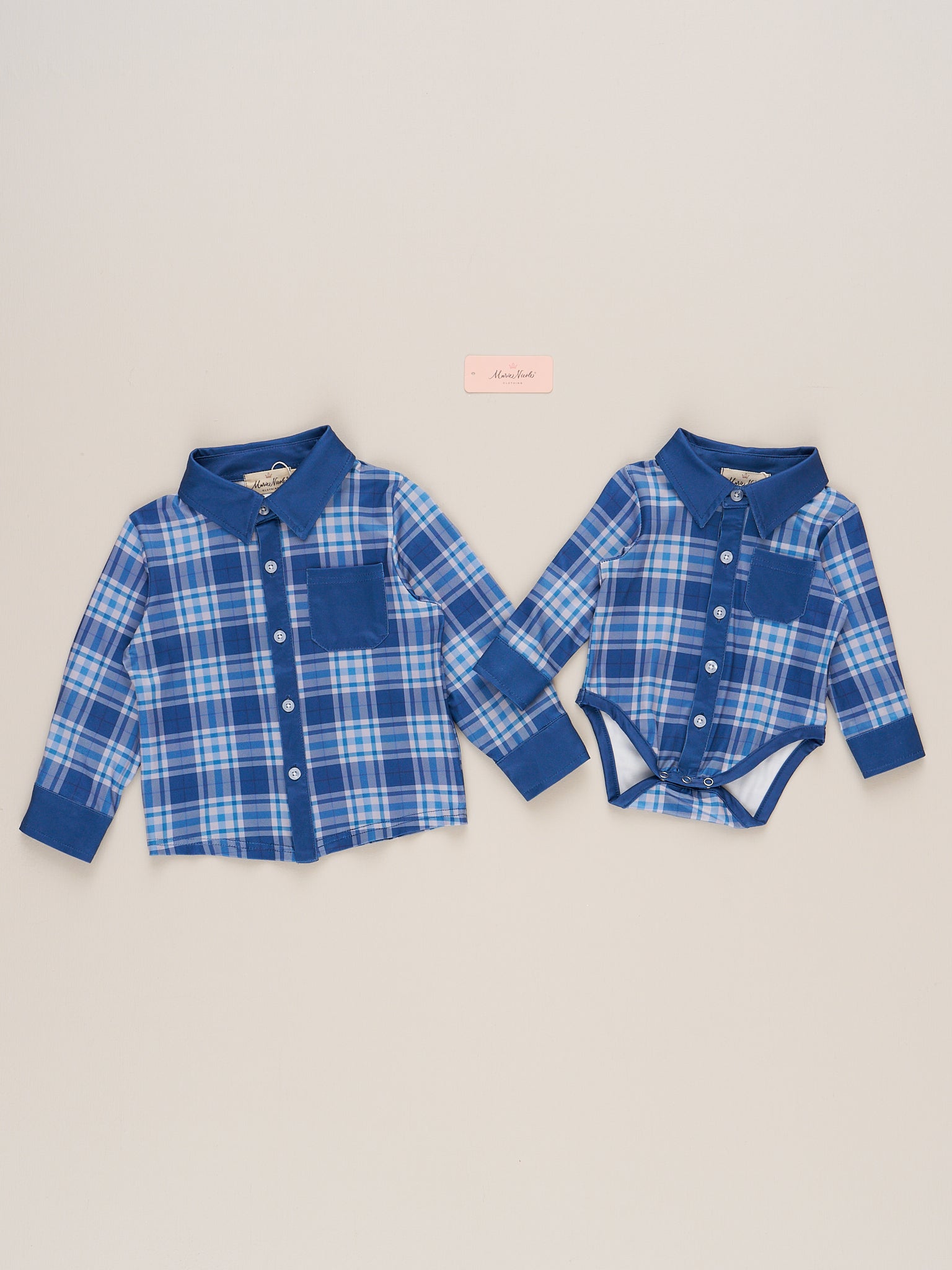 The Pocket Button Up Plaid Shirt in Blue is a classic and cozy choice that’s perfect for everyday adventures and fall outings. Featuring a charming plaid pattern, button-up front, and convenient chest pocket, this shirt from Marie Nicole Clothing blends timeless style with comfortable wearability. Made from soft, breathable fabric, it’s ideal for playtime, family gatherings, and picture-perfect moments.