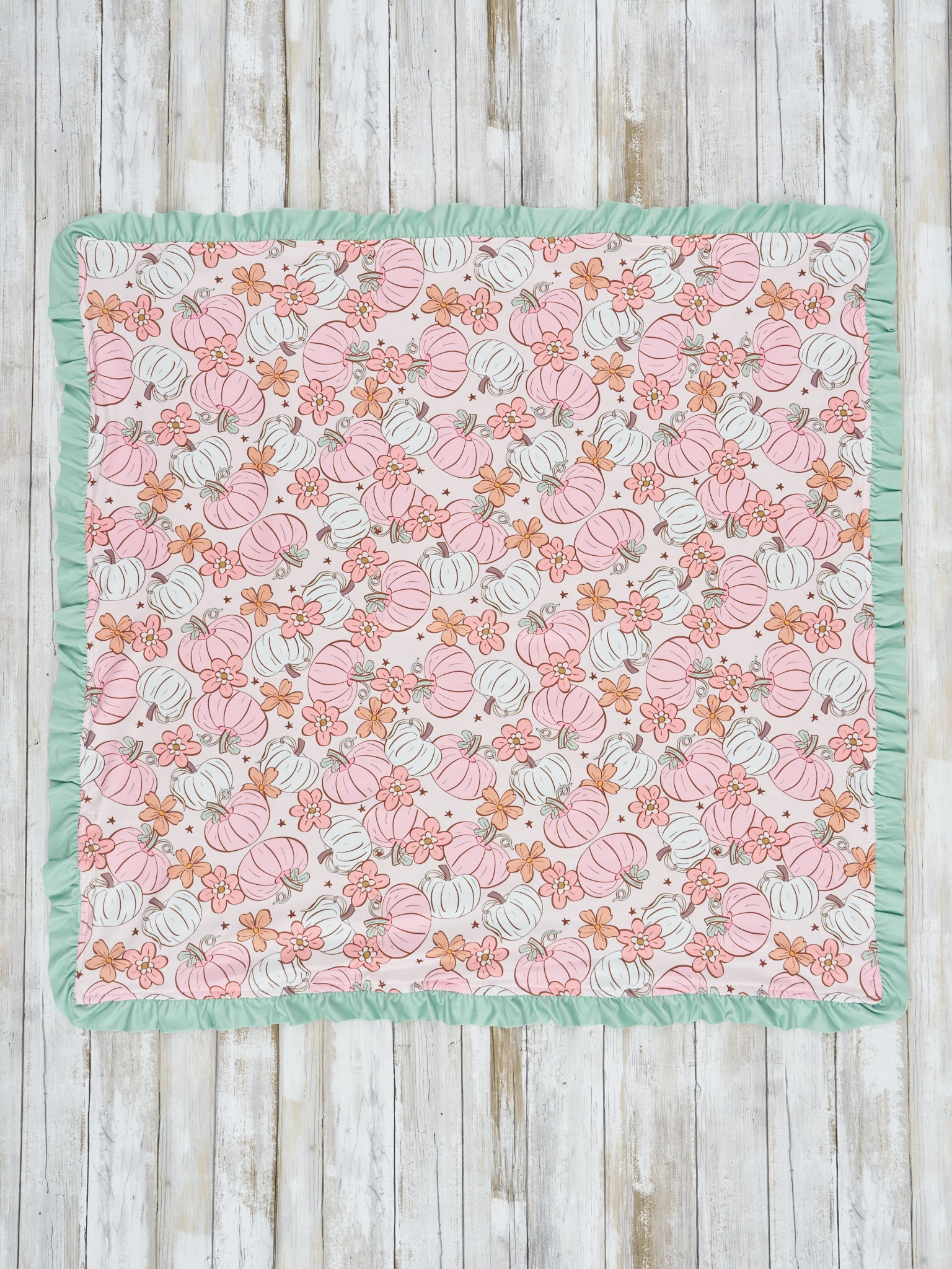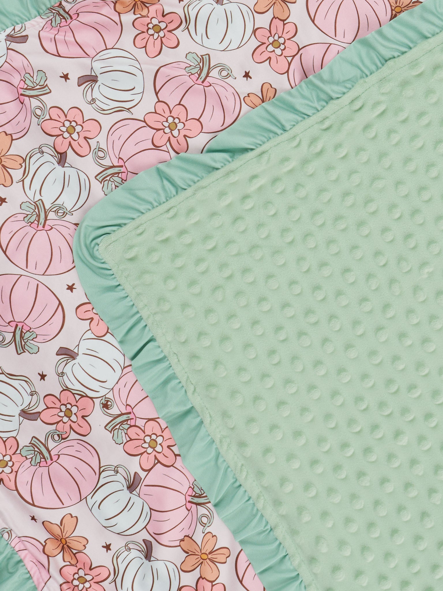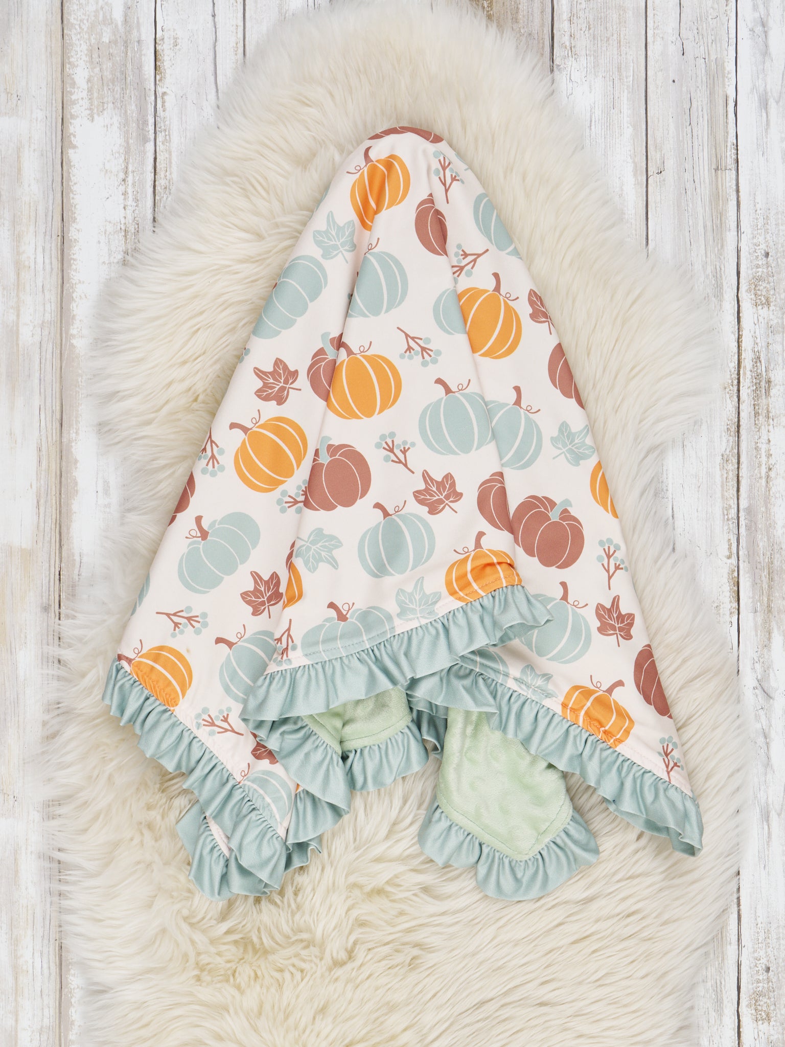 Sage Pumpkin Doodle Minky Ruffle Blanket