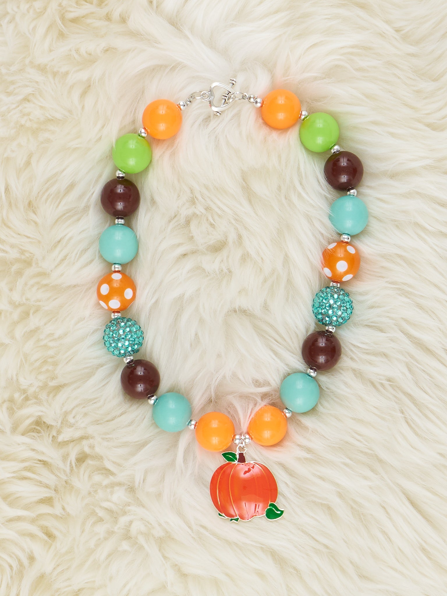 Orange & Teal Sparkle Pumpkin Bubblegum Necklace