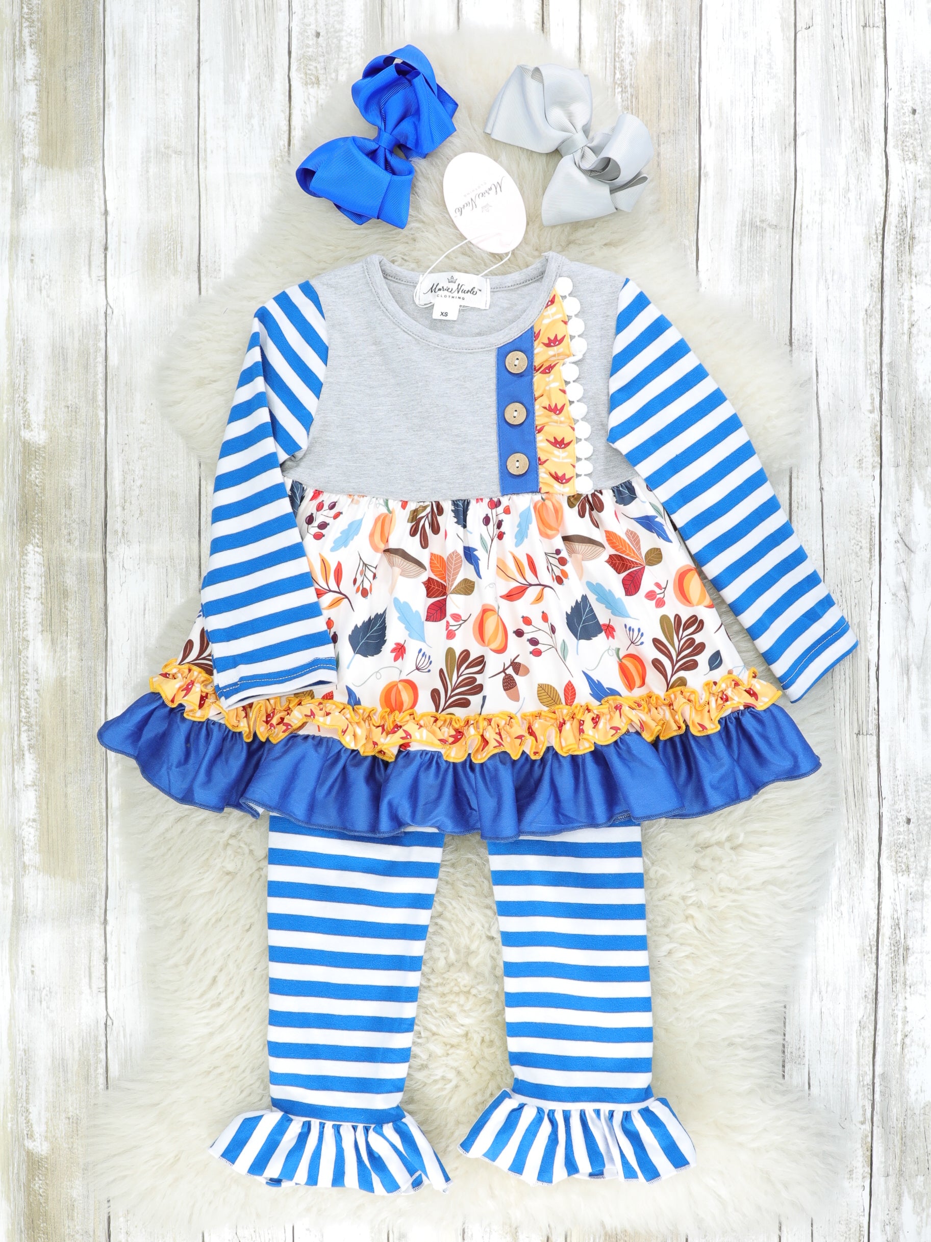 Pink Pumpkin Ruffle Top & Denim Bell Bottoms Outfit