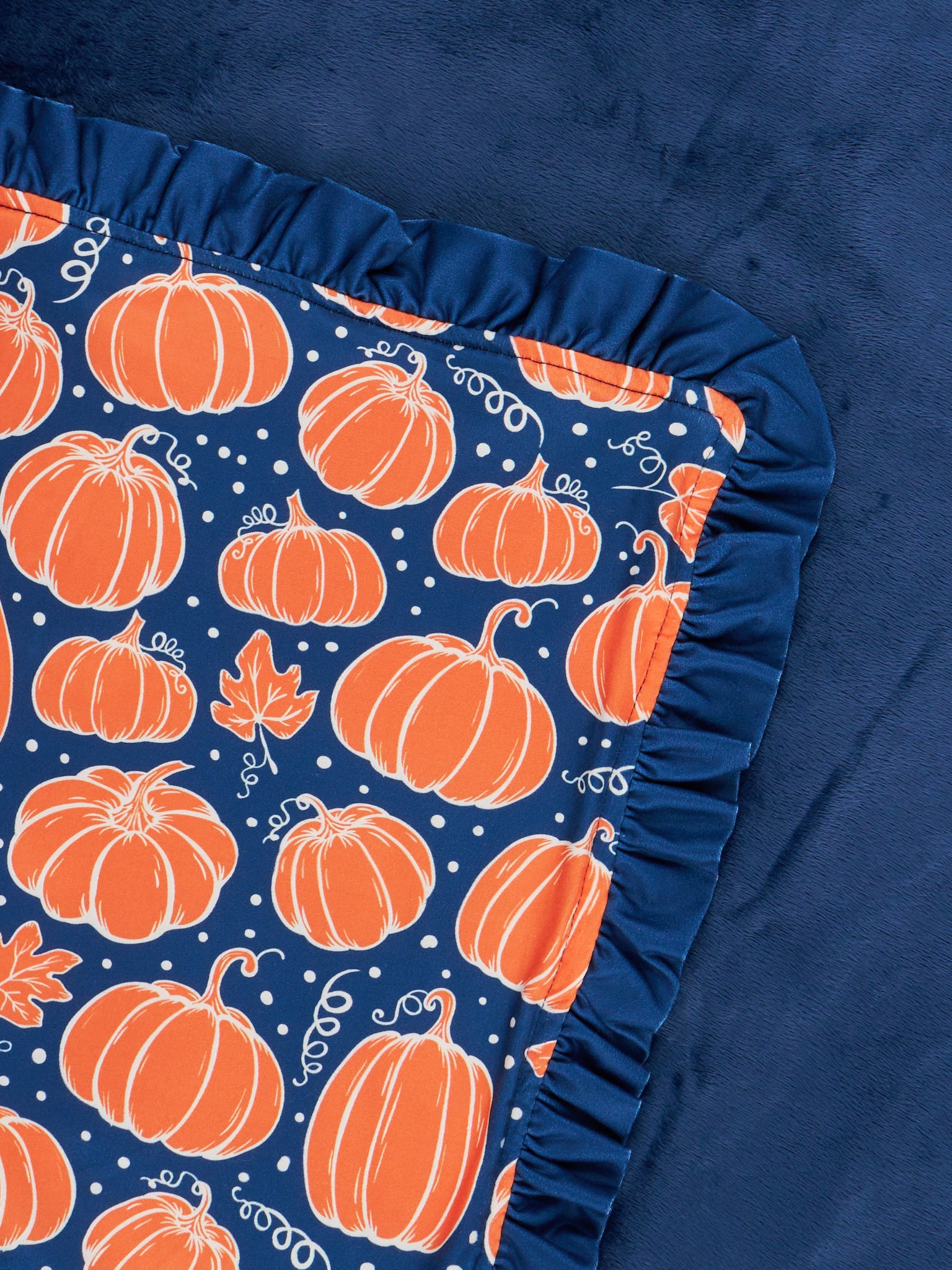 Stay cozy this fall with our Navy Blue Gourds Ruffle Minky Blanket! Enjoy the minky side for extra cuddliness and the pumpkin and gourd details for plenty of autumnal charm. With its navy blue hem, this blanket is sure to become your little ones favorite fall companion, taking you through those chilly months in snuggly style!