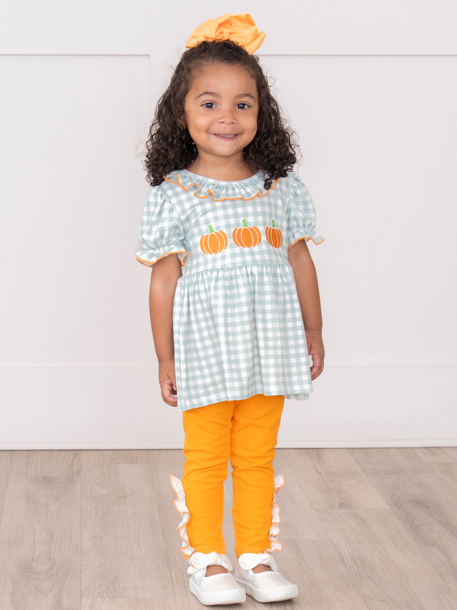 Gingham Pumpkin Spice Embroidered Outfit