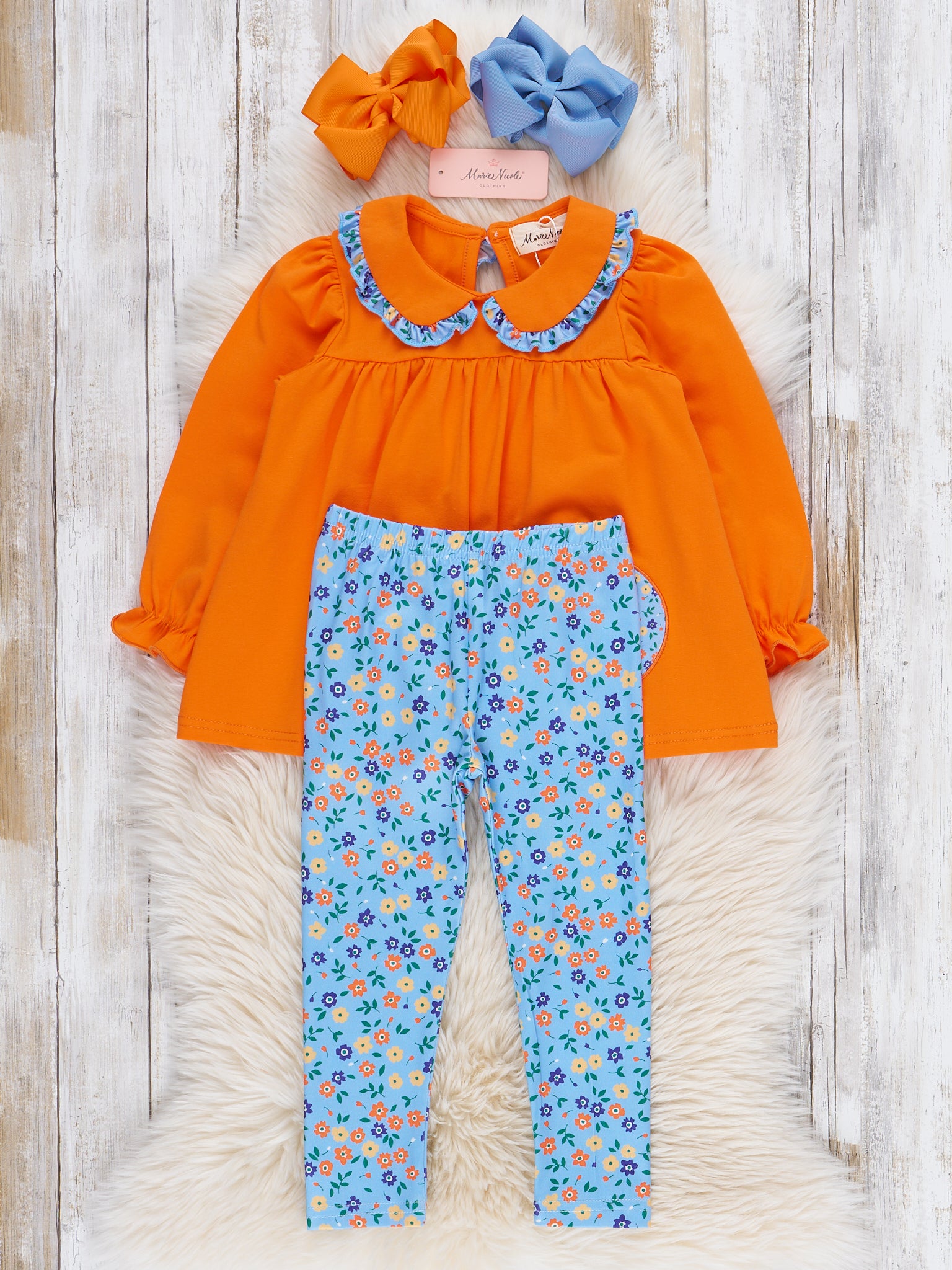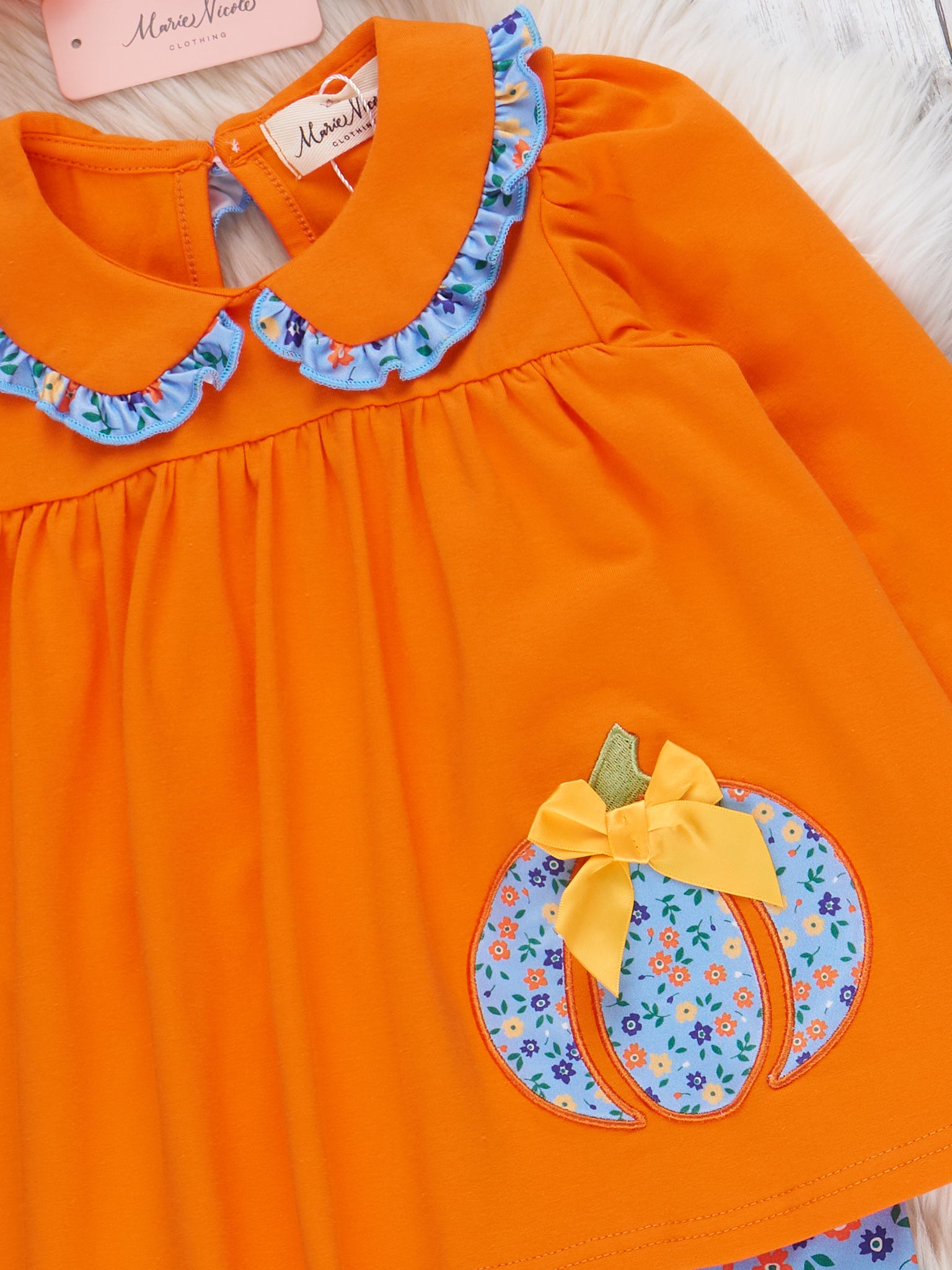 The Blooming Pumpkin Babe Embroidered Outfit is a sweet and stylish choice for fall festivities. Featuring beautifully embroidered pumpkin accented with floral touches, this outfit from Marie Nicole Clothing blends seasonal charm with delicate detail. Complete with coordinating leggings and made from soft, breathable fabric, it’s perfect for pumpkin patches, autumn outings, and picture-perfect moments.