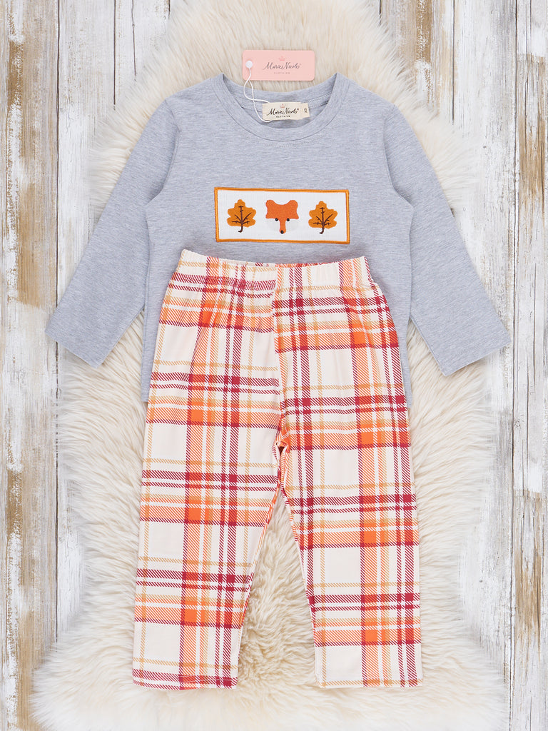 Cabin Critter Smocked Embroidered Plaid Outfit