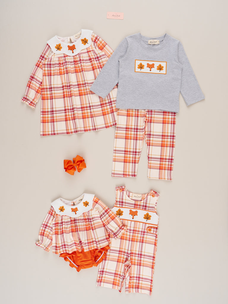 The Cabin Critter Embroidered Plaid Outfit is a cozy and whimsical outfit perfect for fall adventures and chilly cabin days. Featuring charming woodland critter embroidery and a classic plaid pattern, this dress from Marie Nicole Clothing is paired with coordinating pants for a complete and adorable look. Soft, breathable, and full of seasonal charm, it’s ideal for family outings, photoshoots, or snuggling up in style.