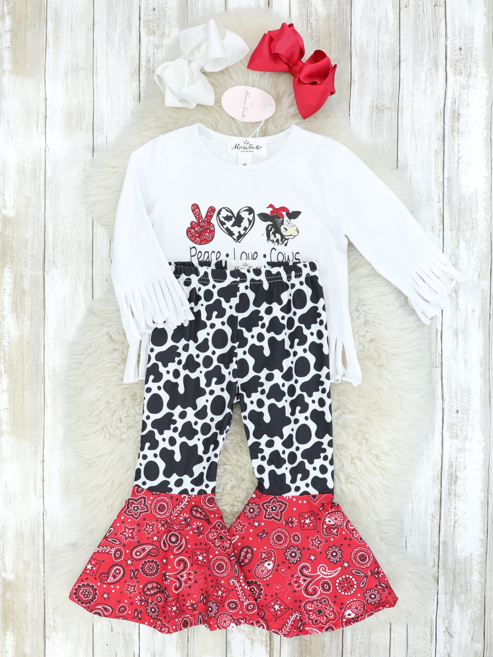 Peace, Love, & Cows Fringe Top & Bell Bottoms Outfit