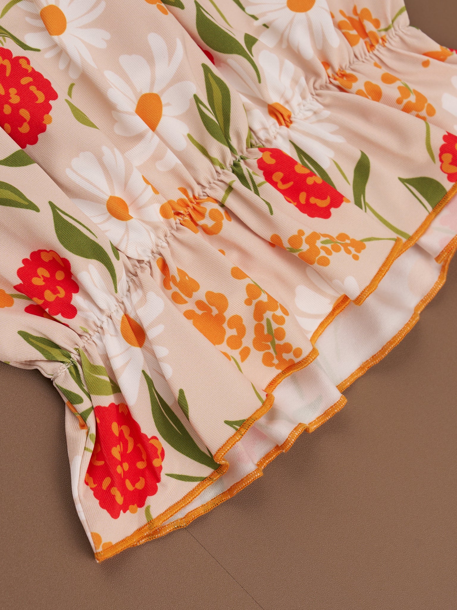 Peach & Green Daisy Garden Ruffle Knot Gown