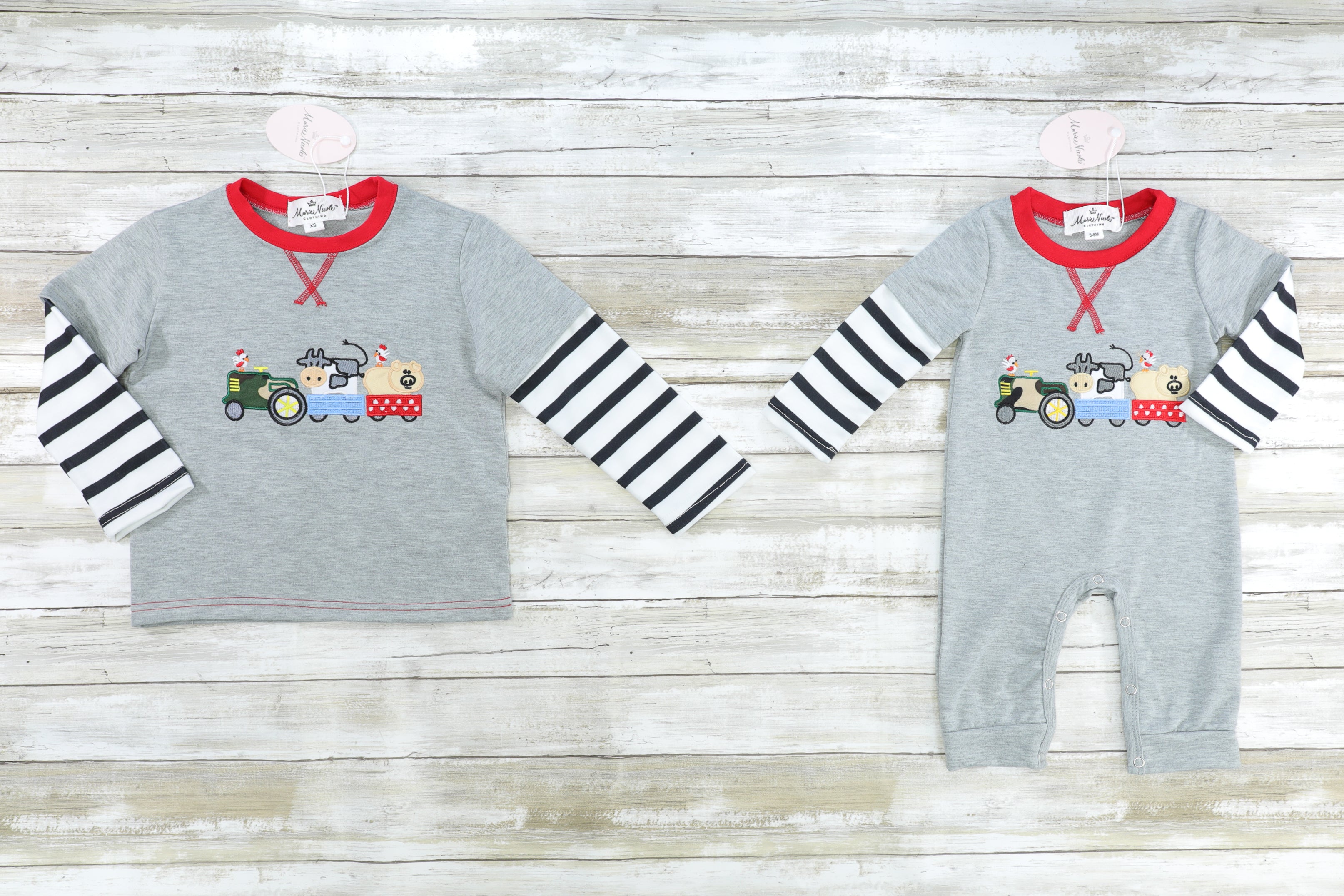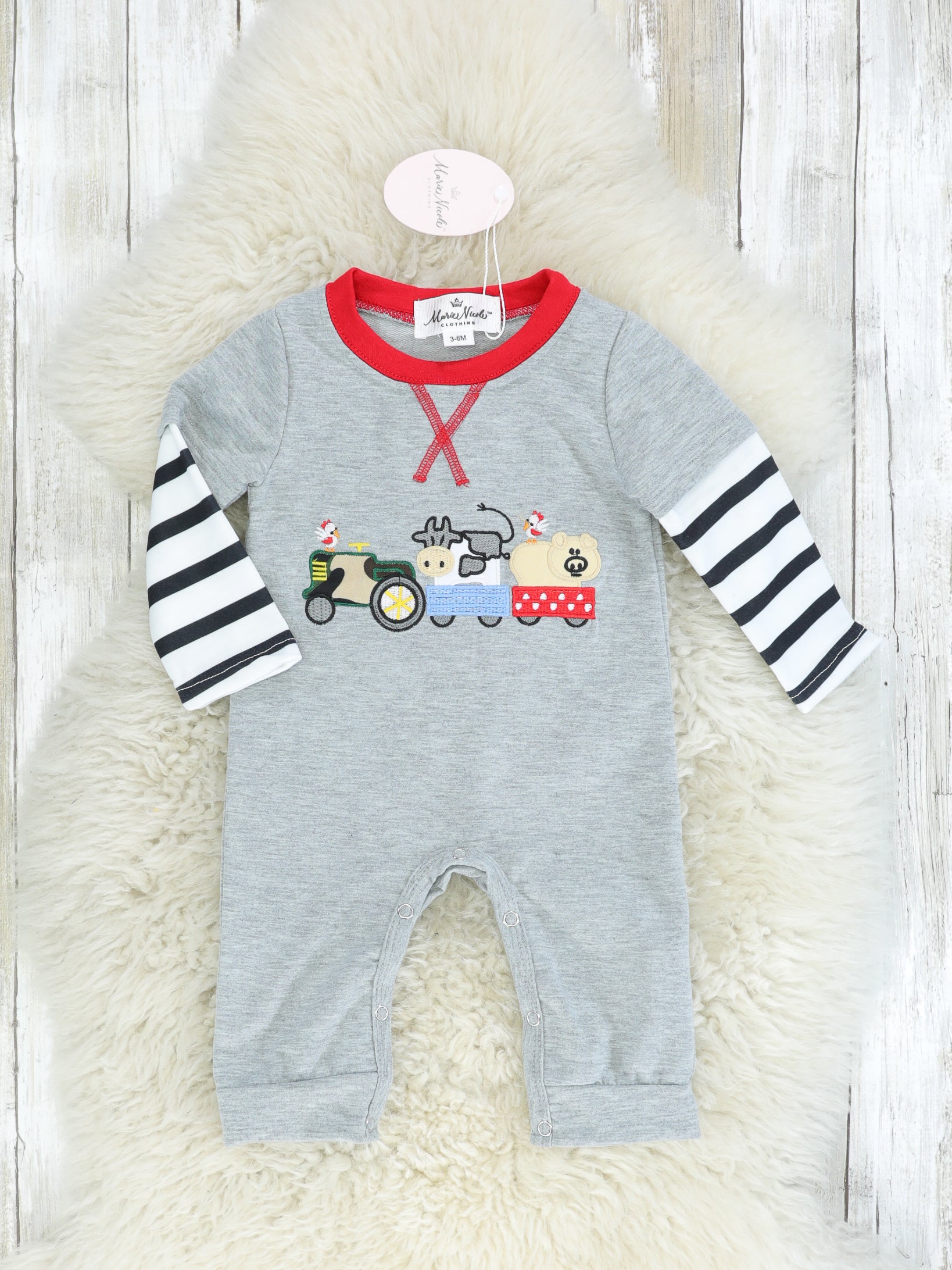 Farm Animals On A Tractor Striped Romper