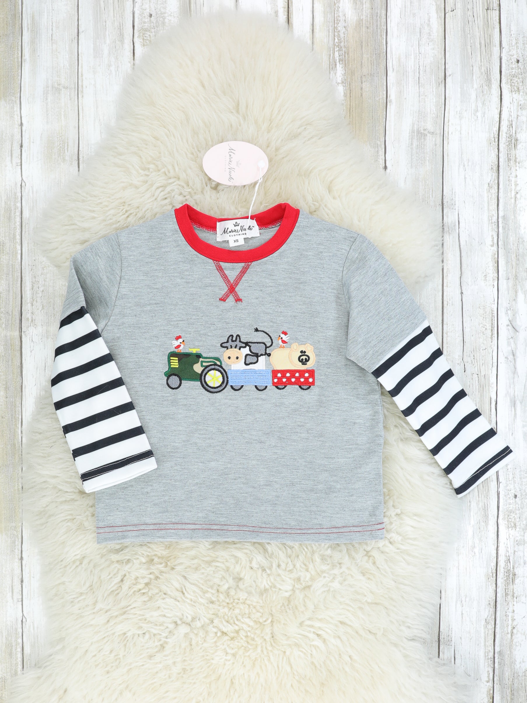 Farm Animals On A Tractor Striped Shirt