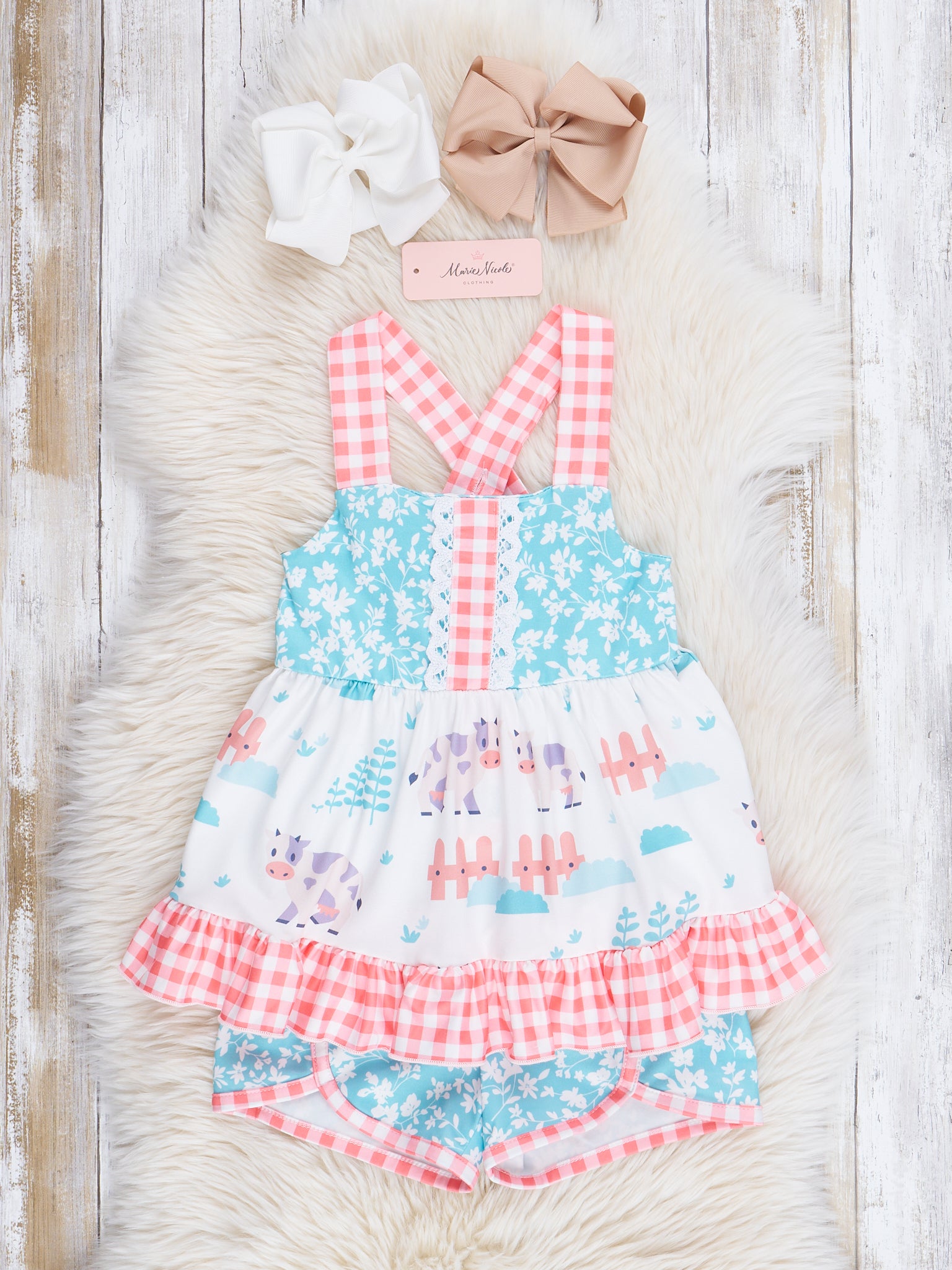 Farm Friends Pumpkin Ride Embroidered Ruffle Outfit