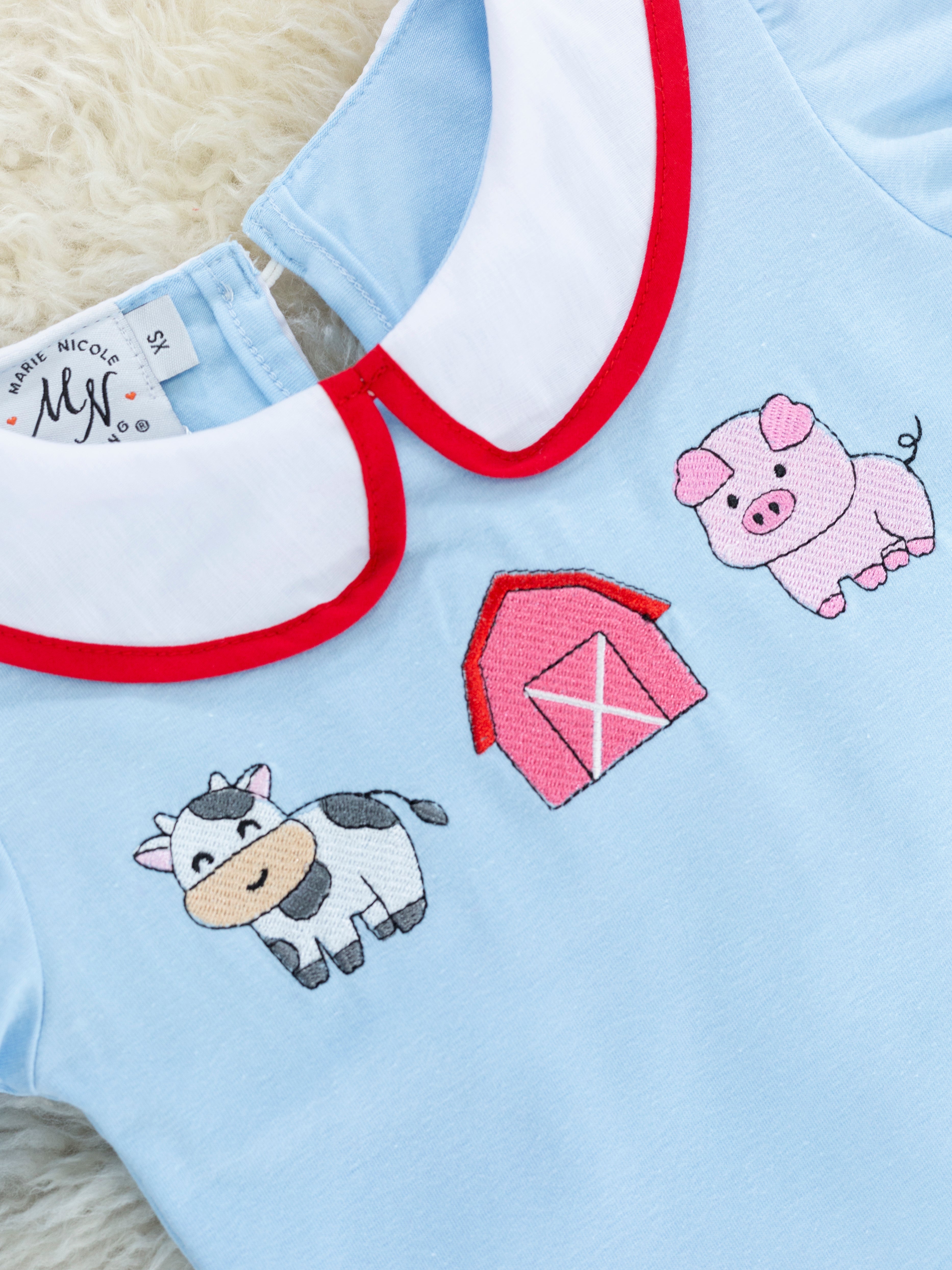 Farm Friends Pumpkin Ride Embroidered Ruffle Bubble