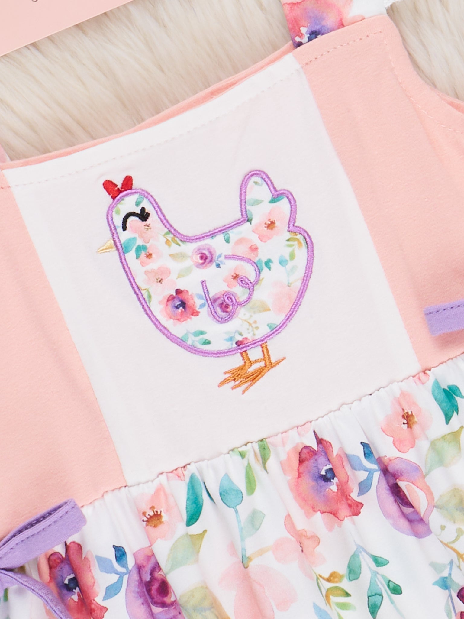 The Rosy Chickens Ruffle Dress from Marie Nicole Clothing is farm-fresh fun with a sweet twist, featuring  an adorable chicken and rosy accents. Soft fabric and playful ruffles make it perfect for twirling through summer days. Comfy, cute, and full of country charm!