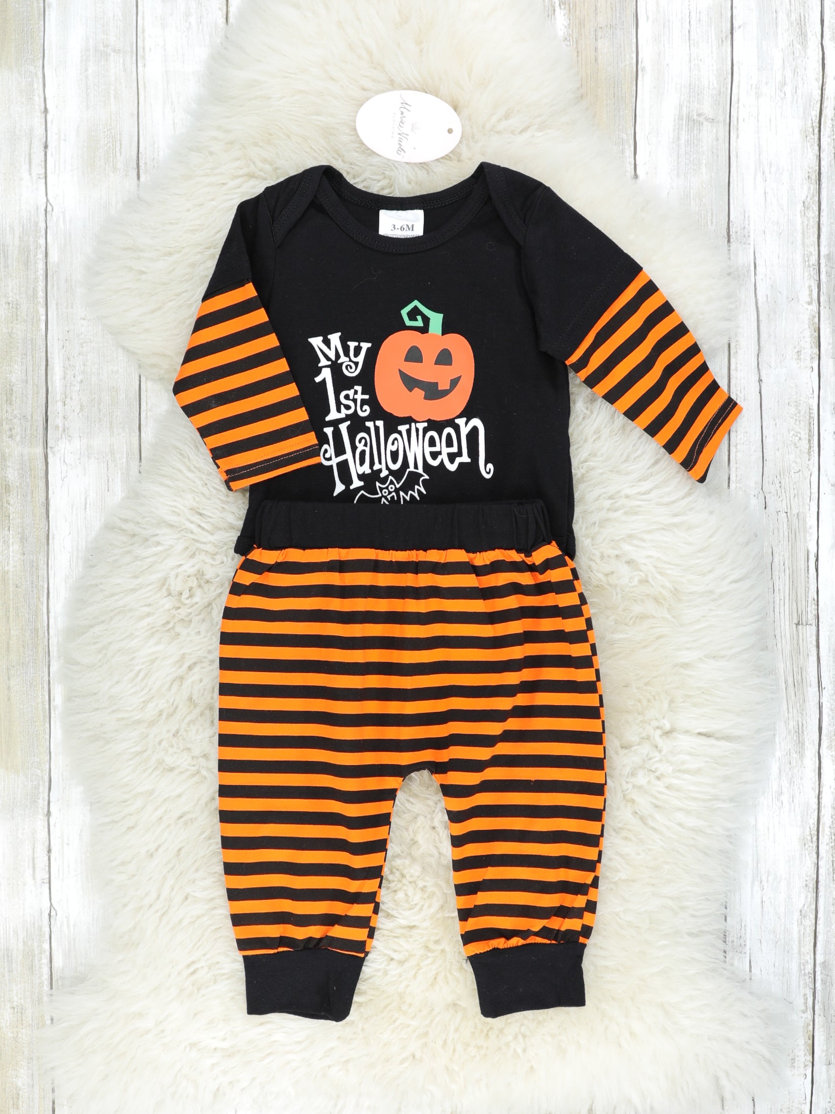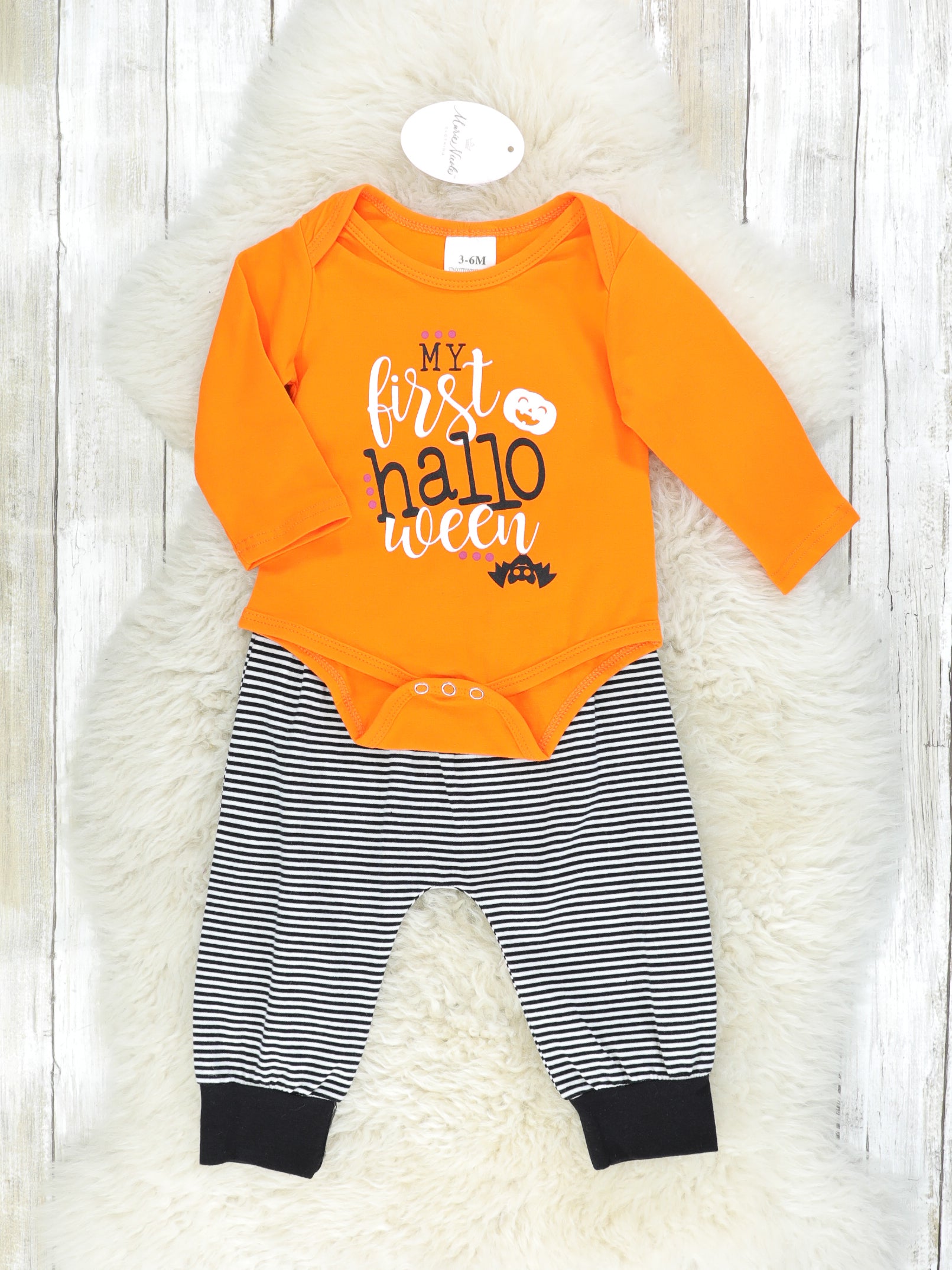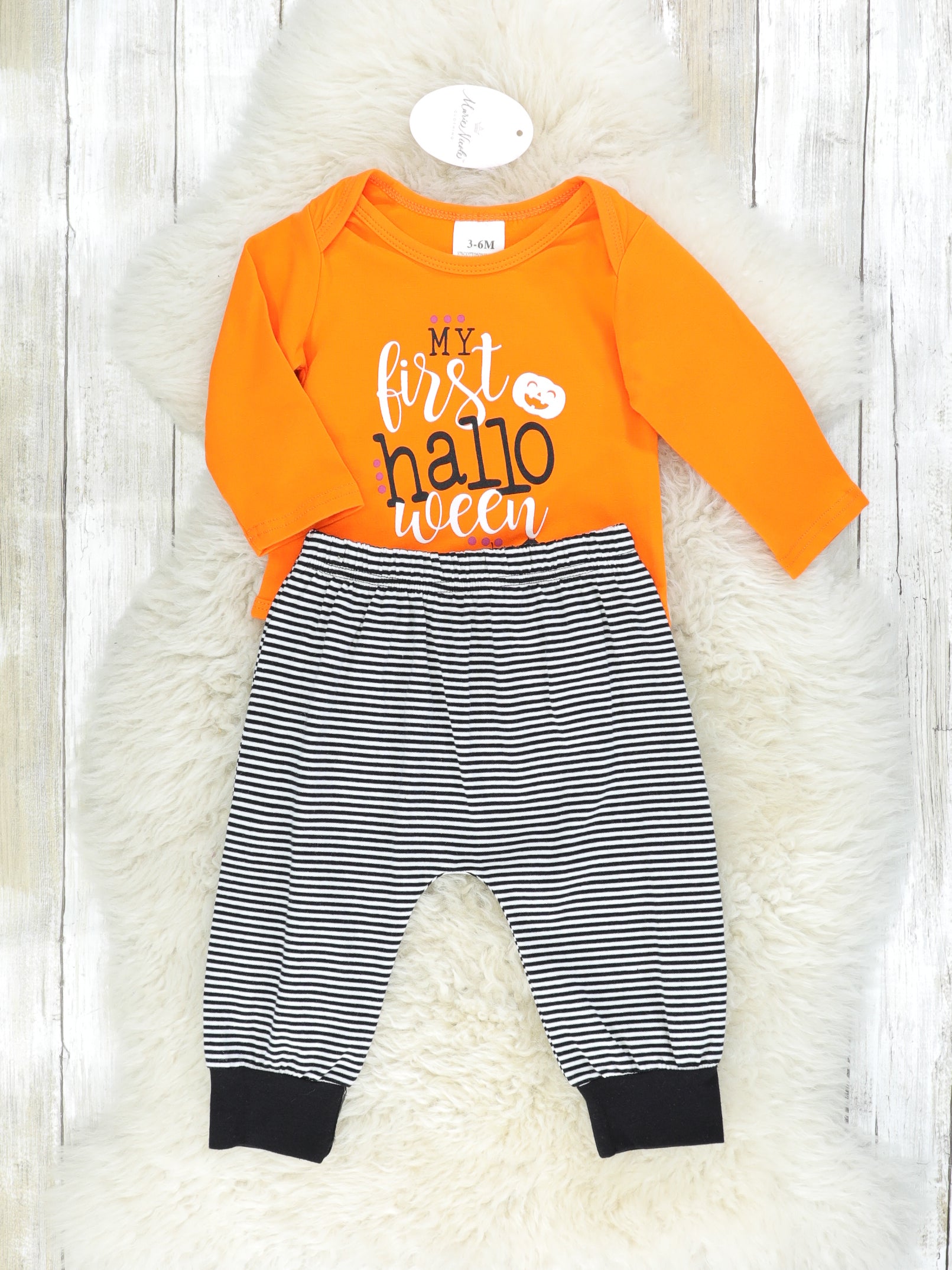 "My First Halloween" Onesie & Orange Striped Joggers Outfit