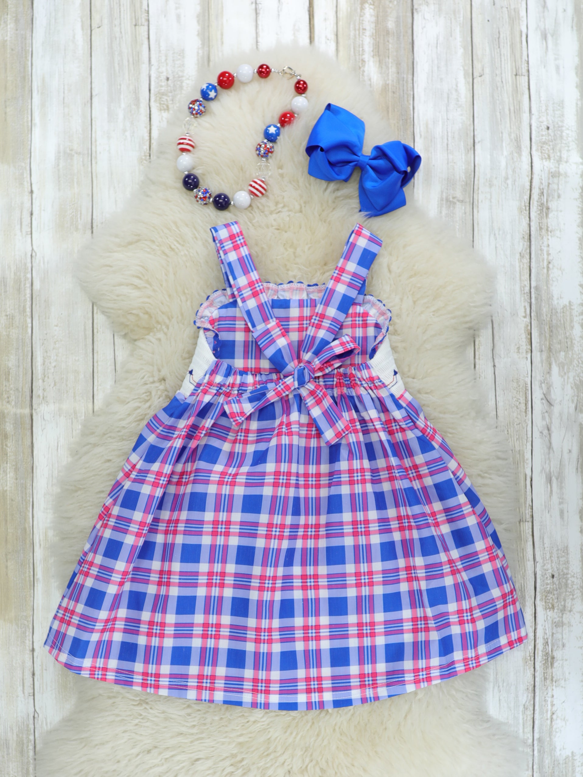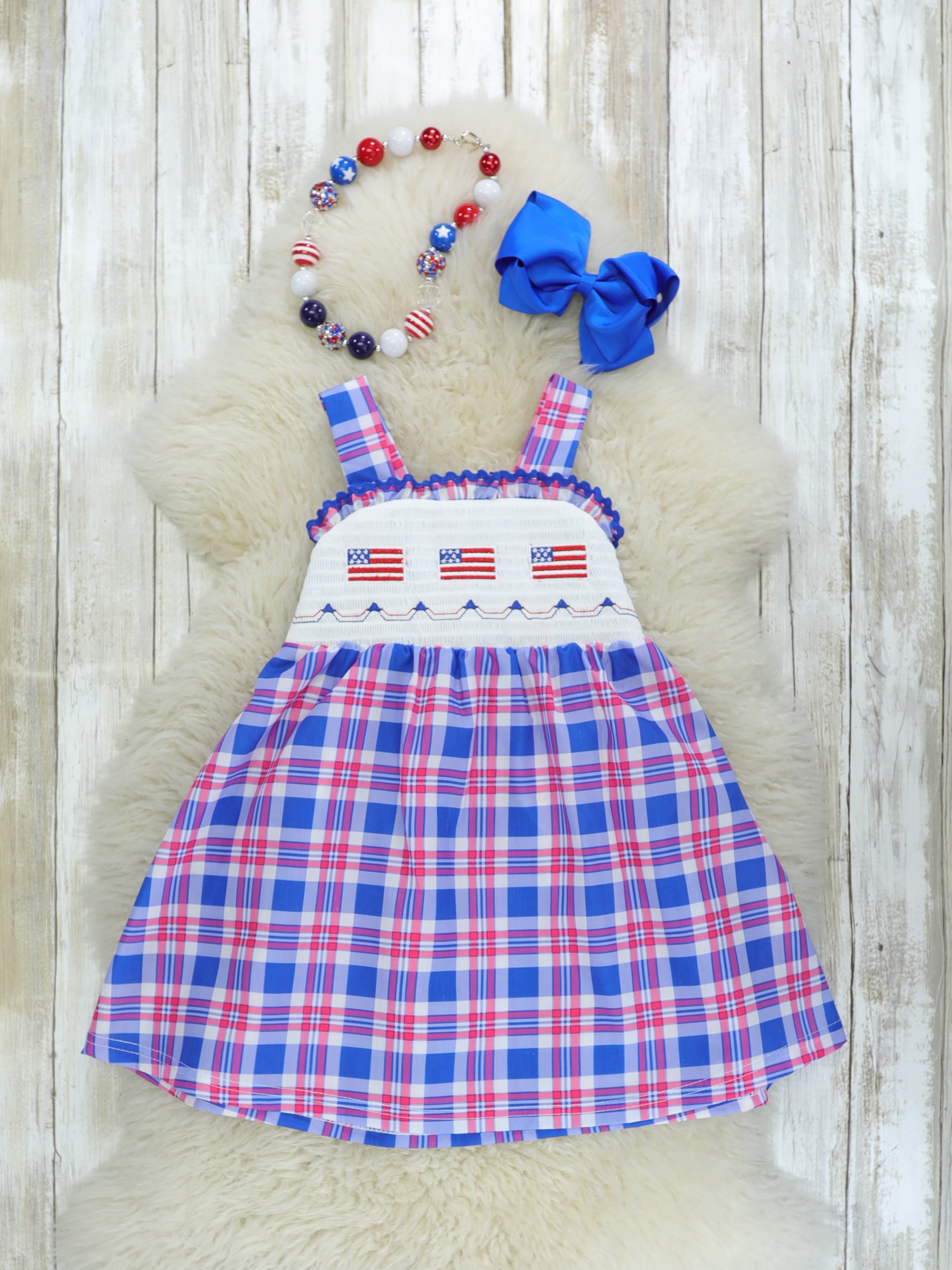 Flag Smocked Plaid Ruffle Dress