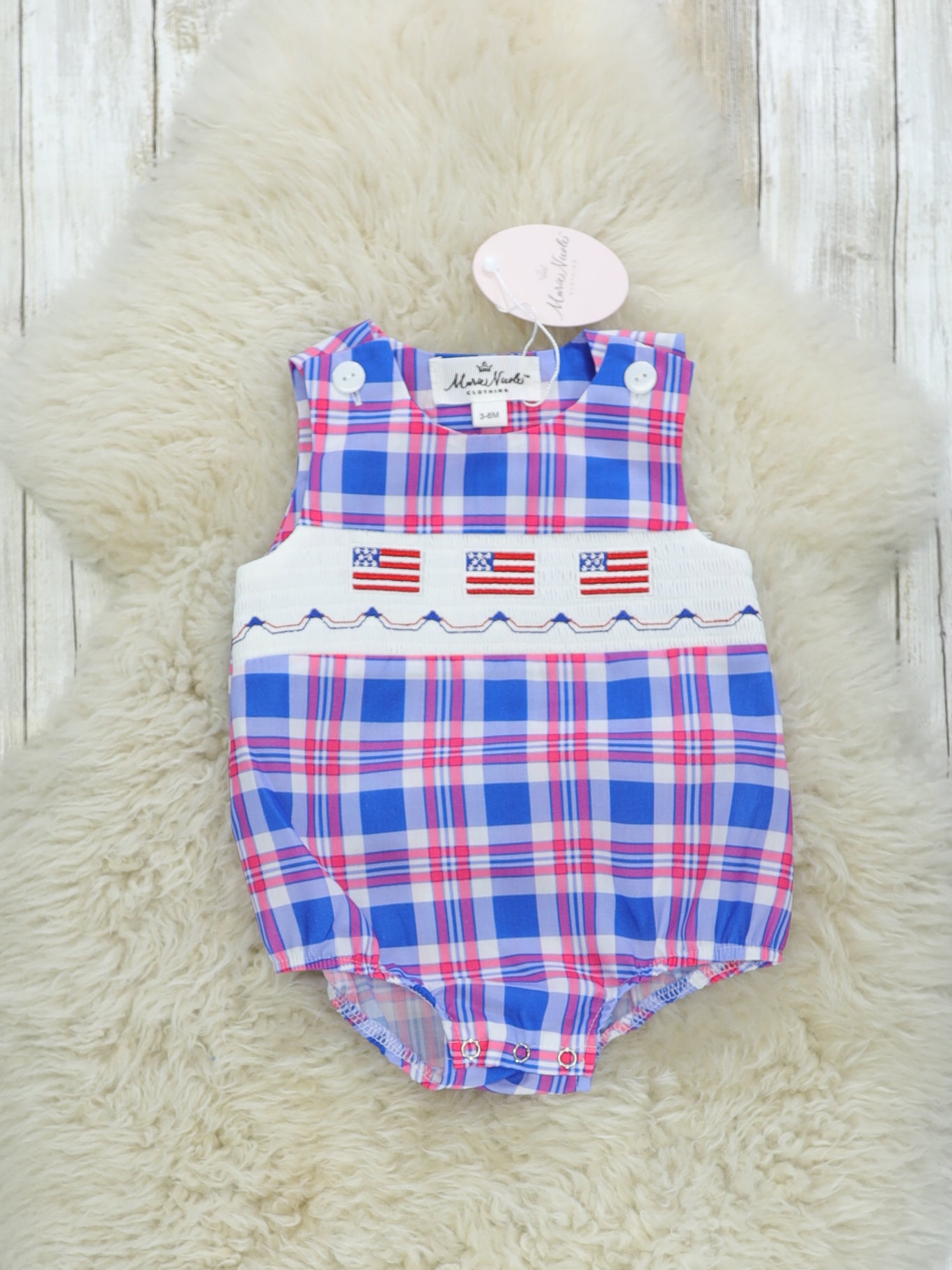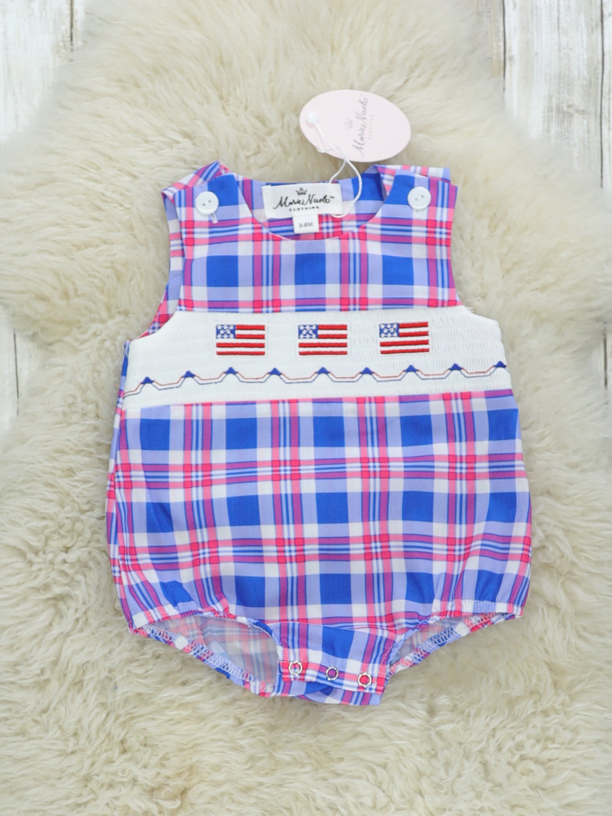 Flag Smocked Plaid Romper