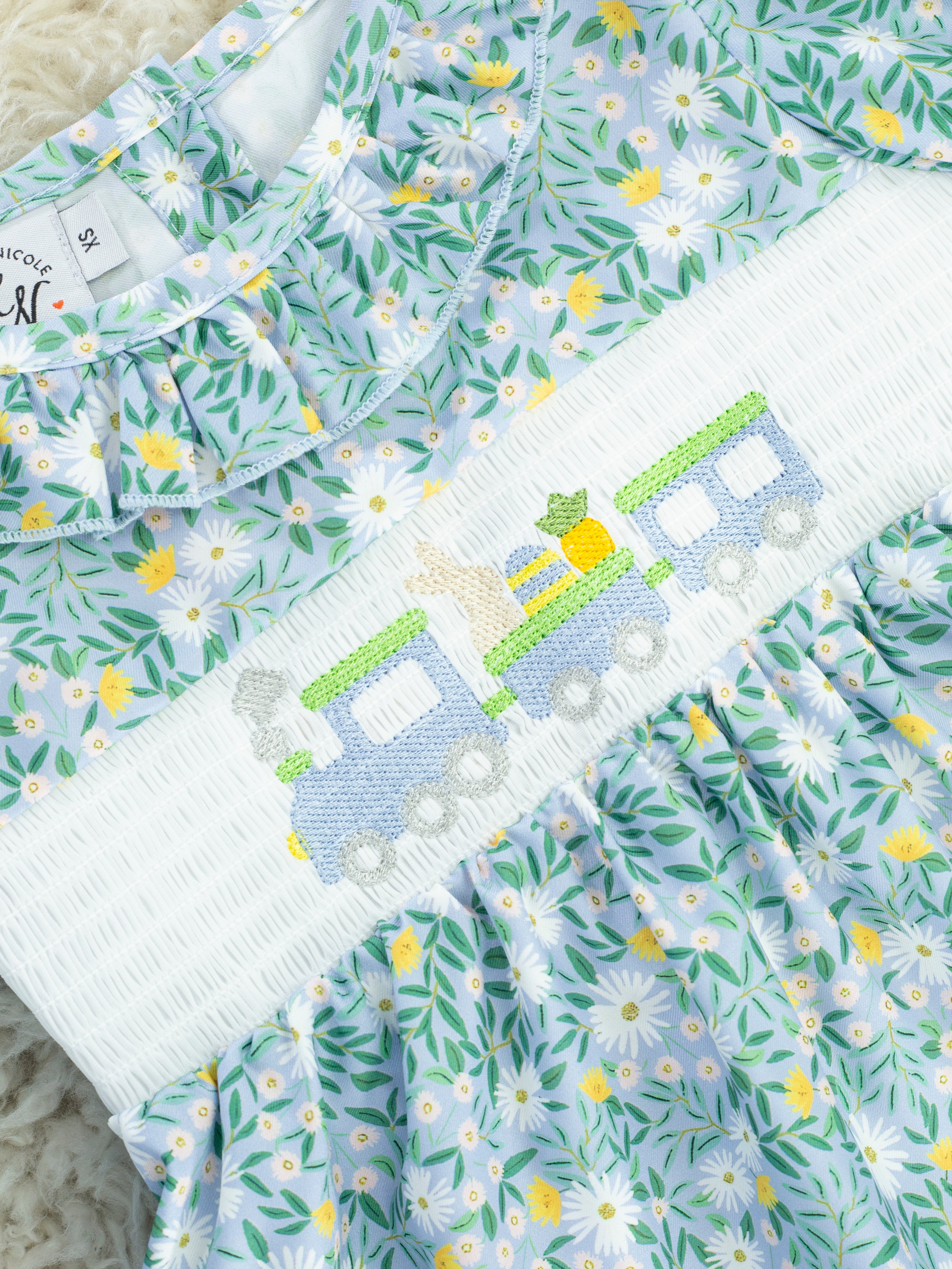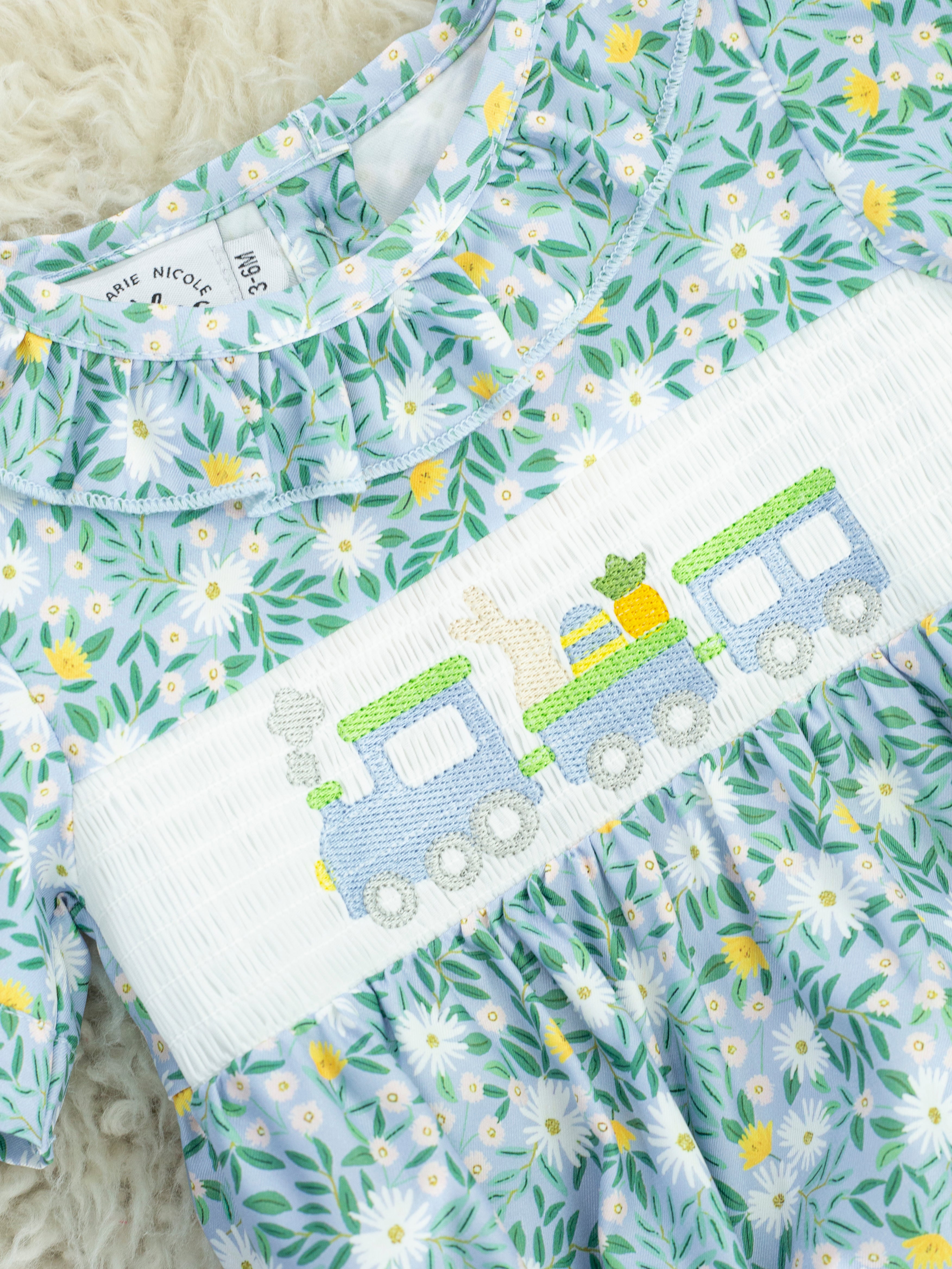 Floral Smocked Bunny Train Ruffle Bubble