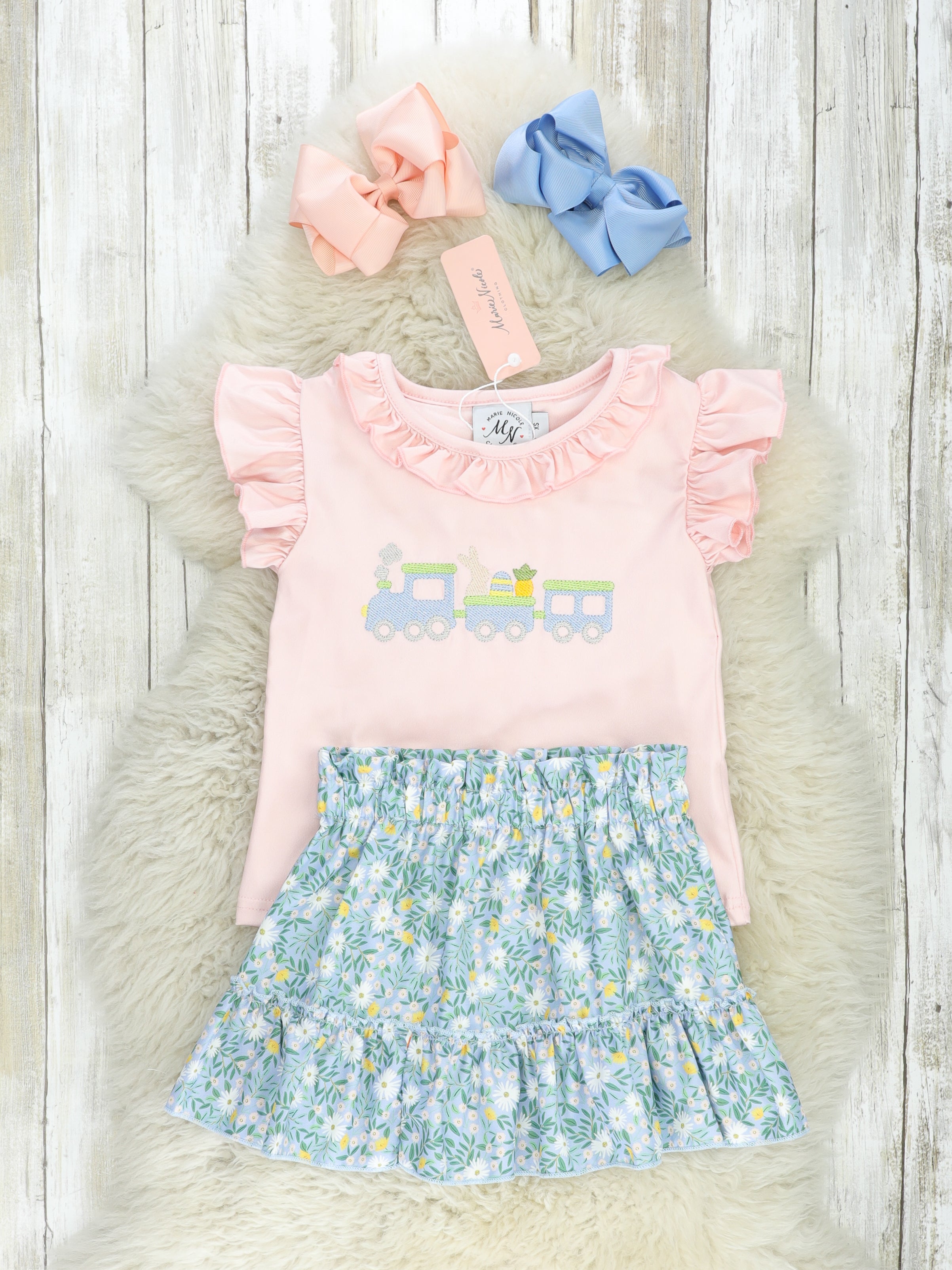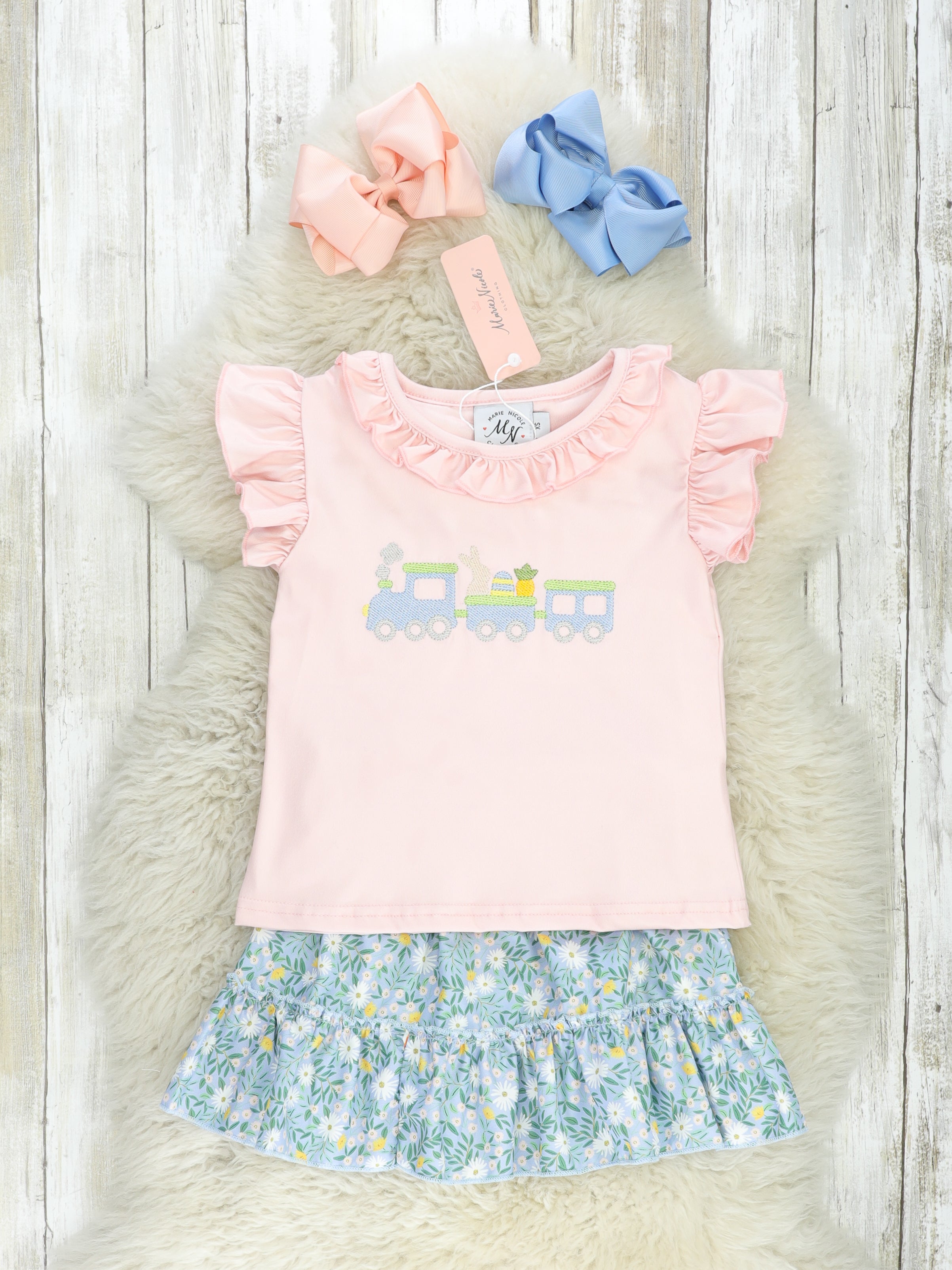 Floral Bunny Train Ruffle Outfit