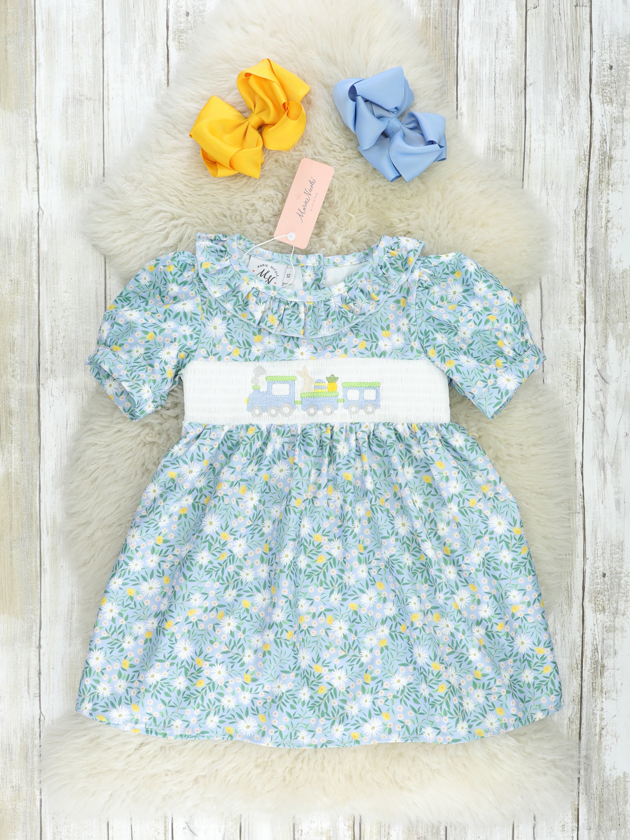Floral Smocked Bunny Train Ruffle Dress