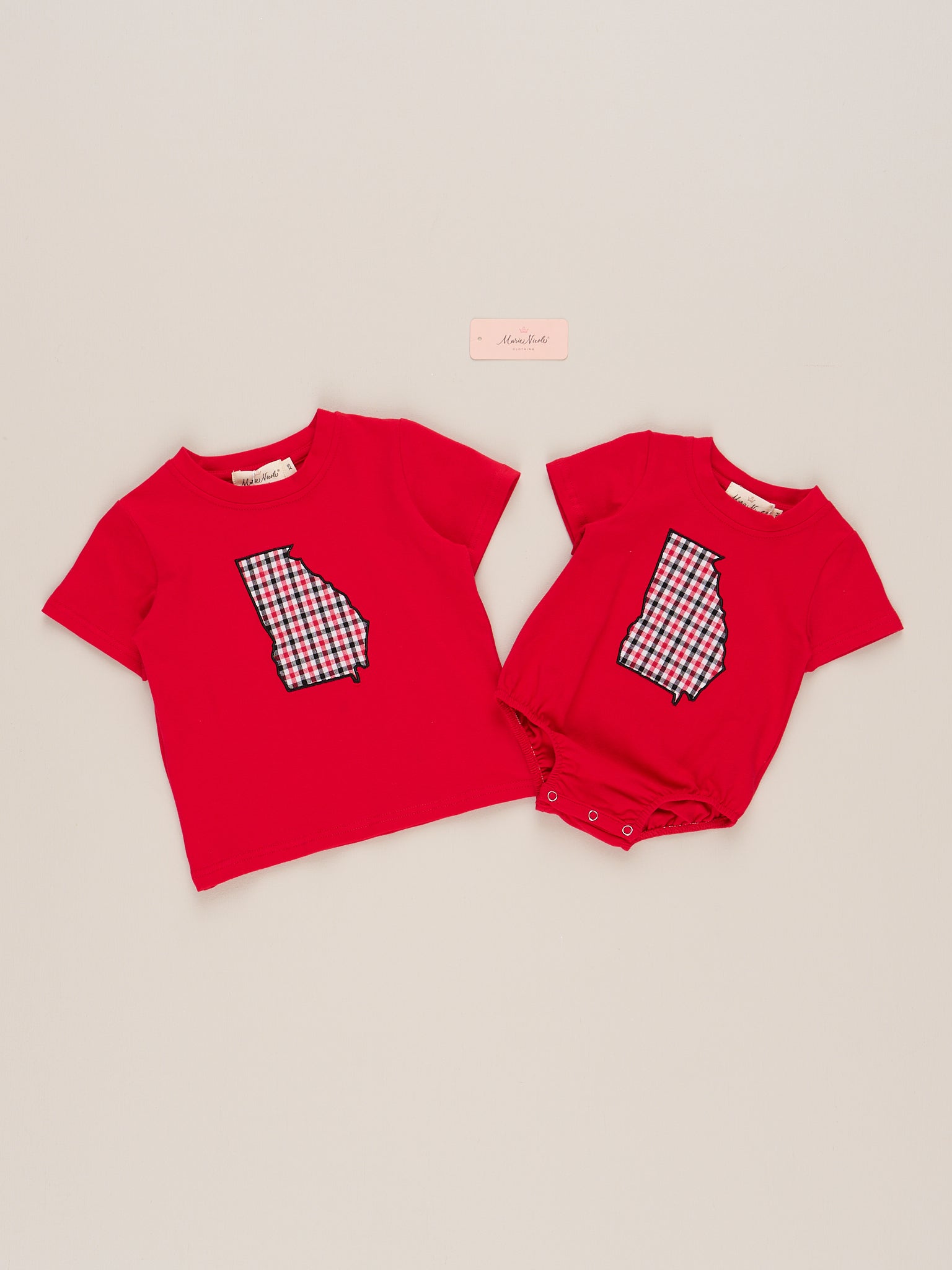 The Georgia Embroidered Gingham Bubble is a charming blend of Southern pride and classic style. Featuring a red and black gingham pattern and a beautifully embroidered Georgia applique, this bubble from Marie Nicole Clothing is perfect for showing off team spirit in a sweet, everyday way. Lightweight and breathable, it’s ideal for warm weather, casual outings, or cheering on your favorite team in comfort and style.