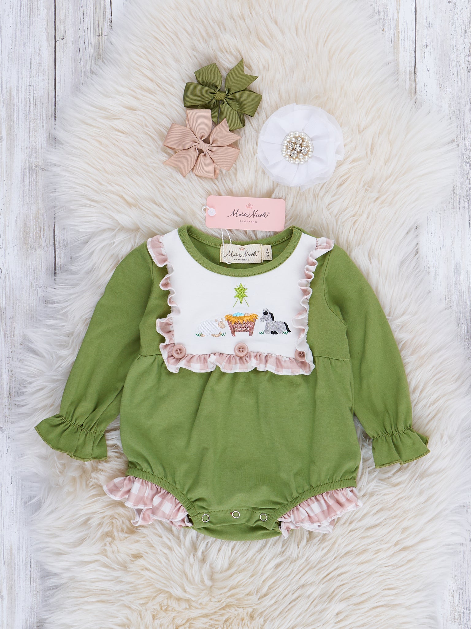 Gingham Embroidered Nativity Ruffle Outfit