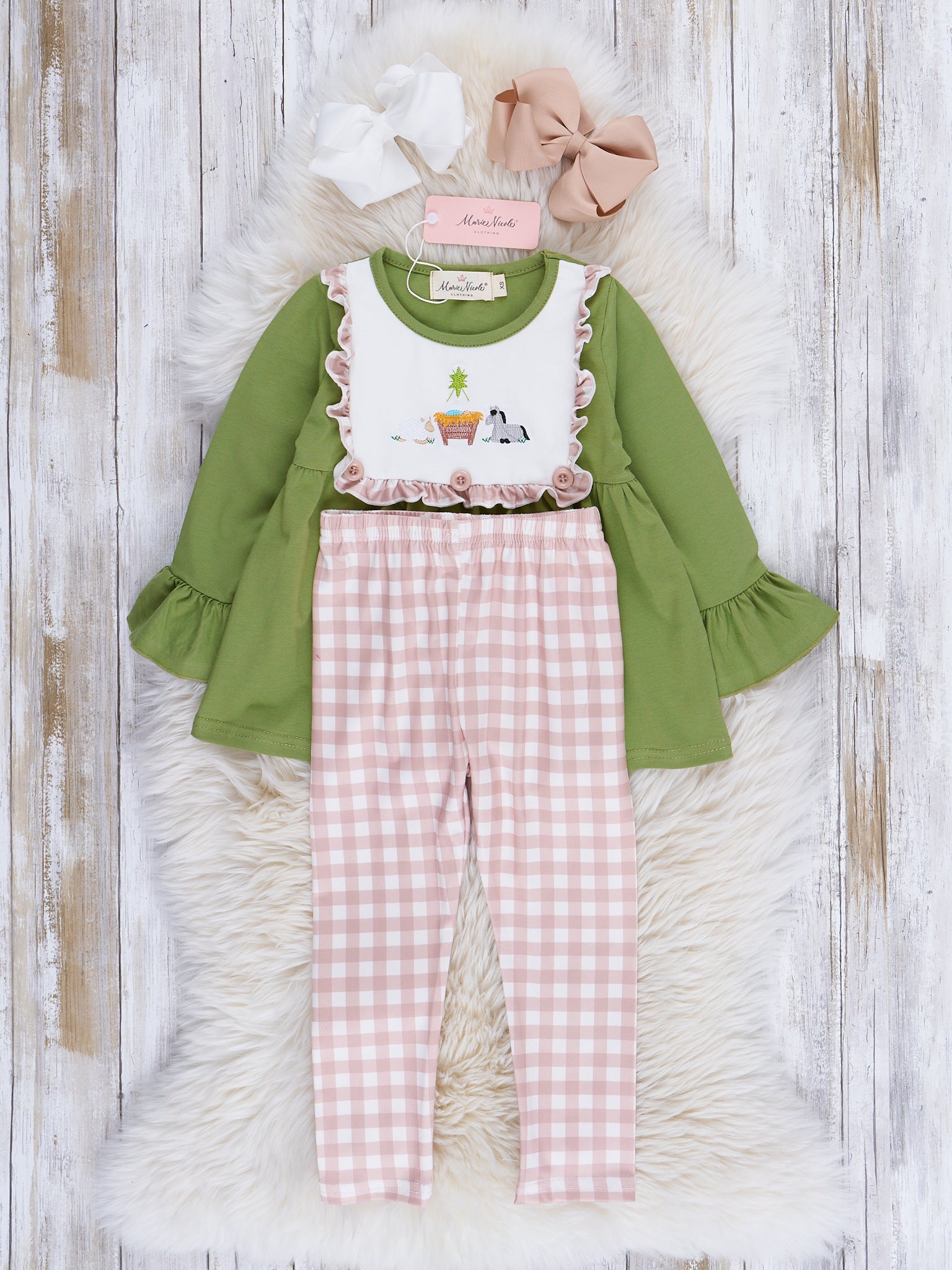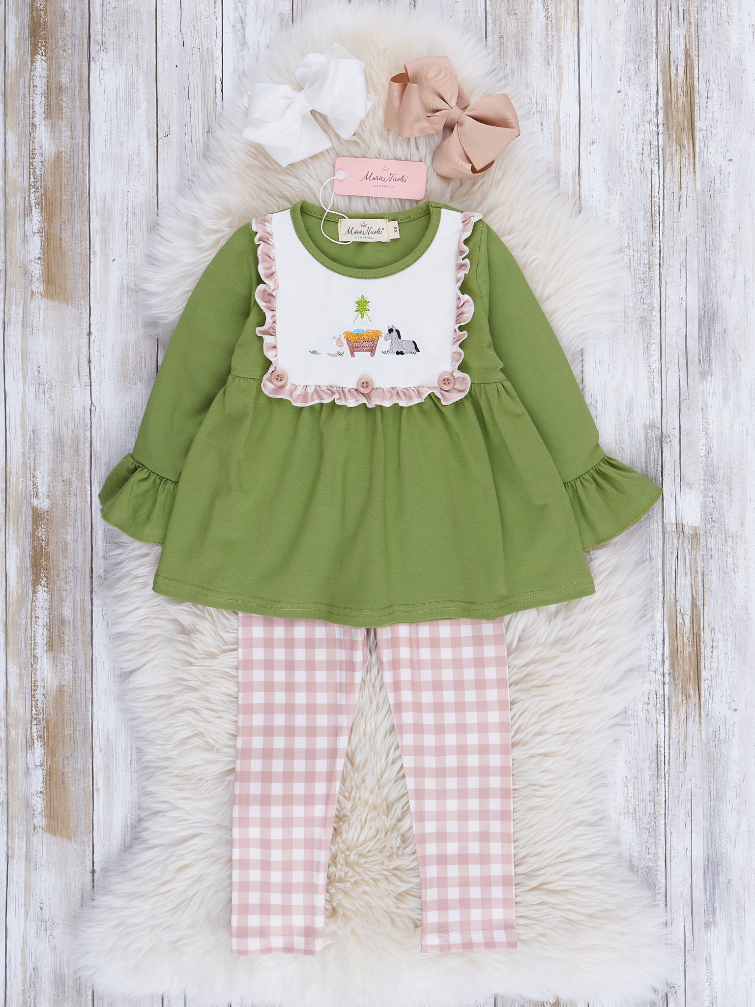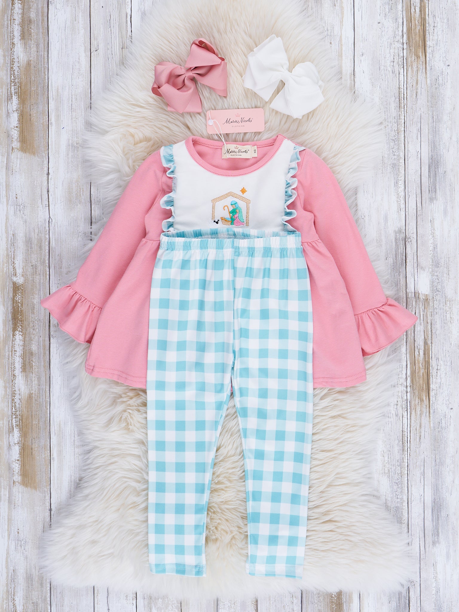 Gingham Embroidered Nativity Sister Set