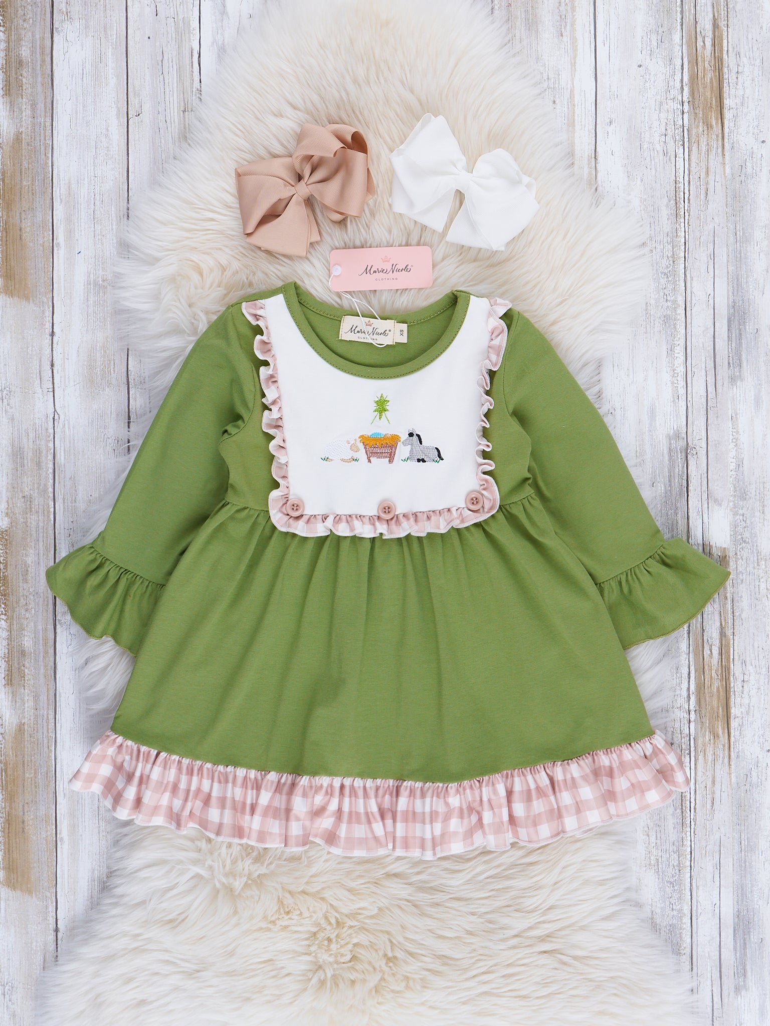 Gingham Embroidered Nativity Ruffle Dress