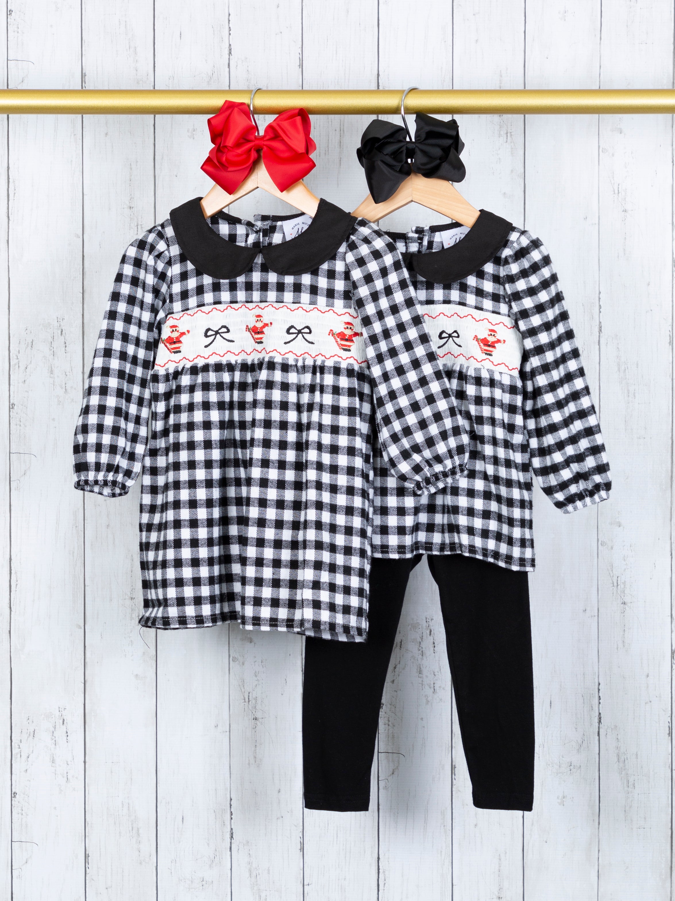 Gingham Smocked Santa Vintage Sister Set