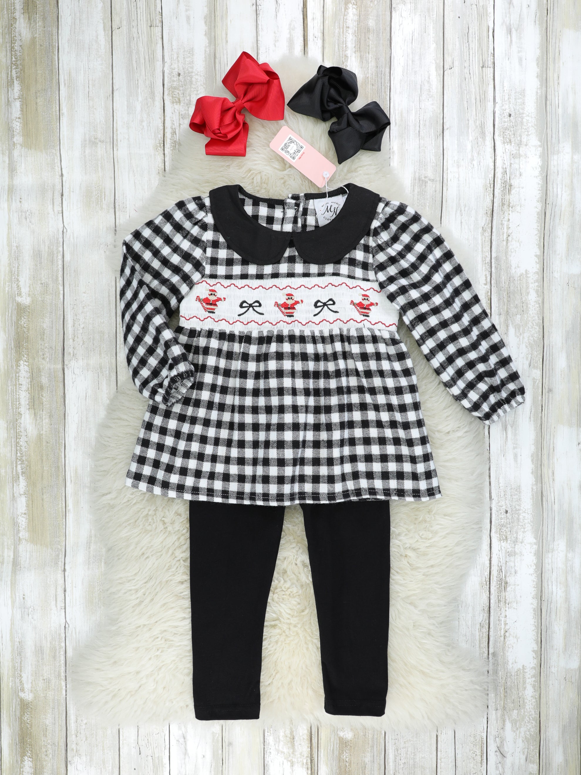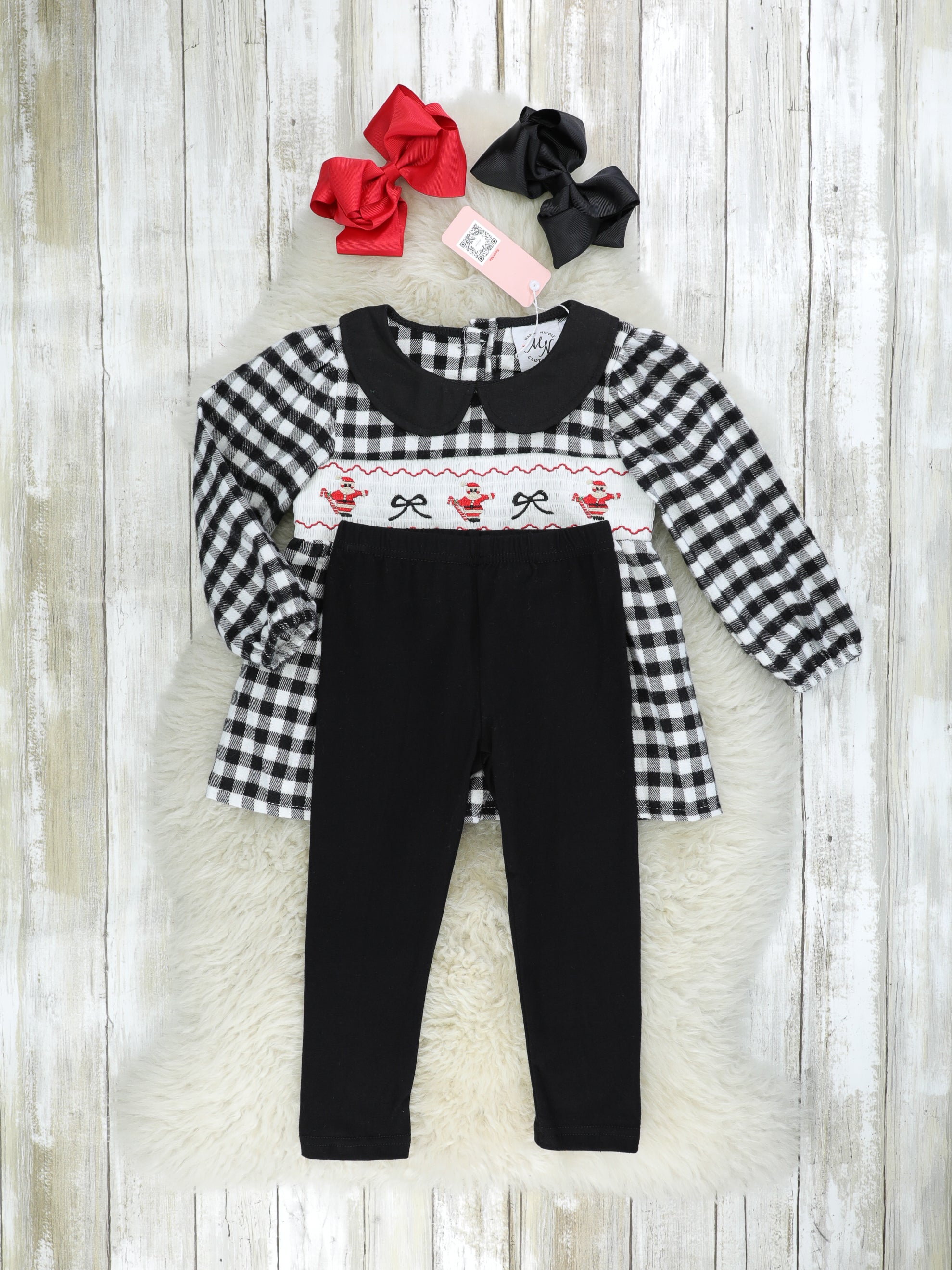 Gingham Smocked Santa Vintage Outfit