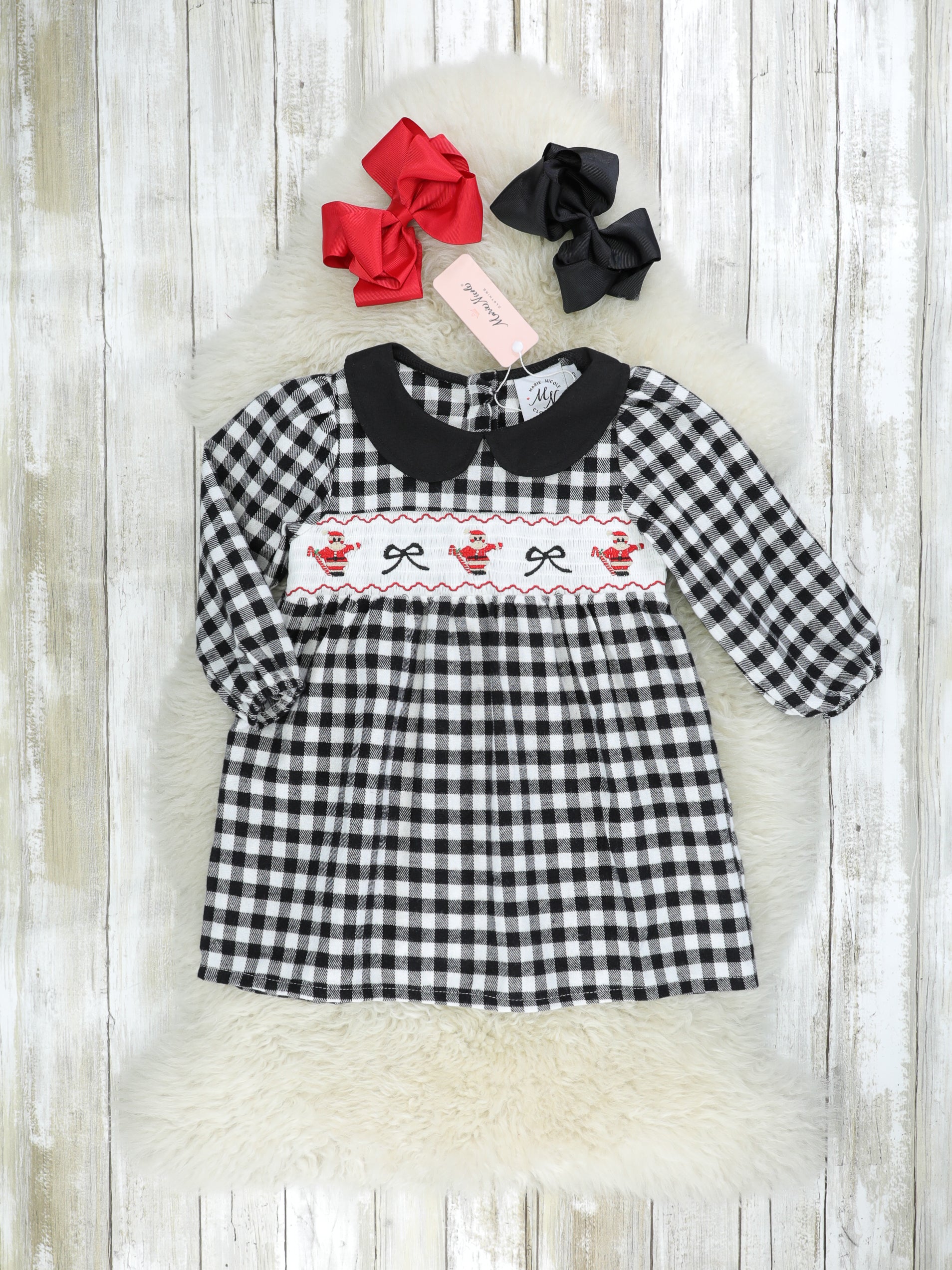 Home › Gingham Smocked Santa Vintage Sister Set
