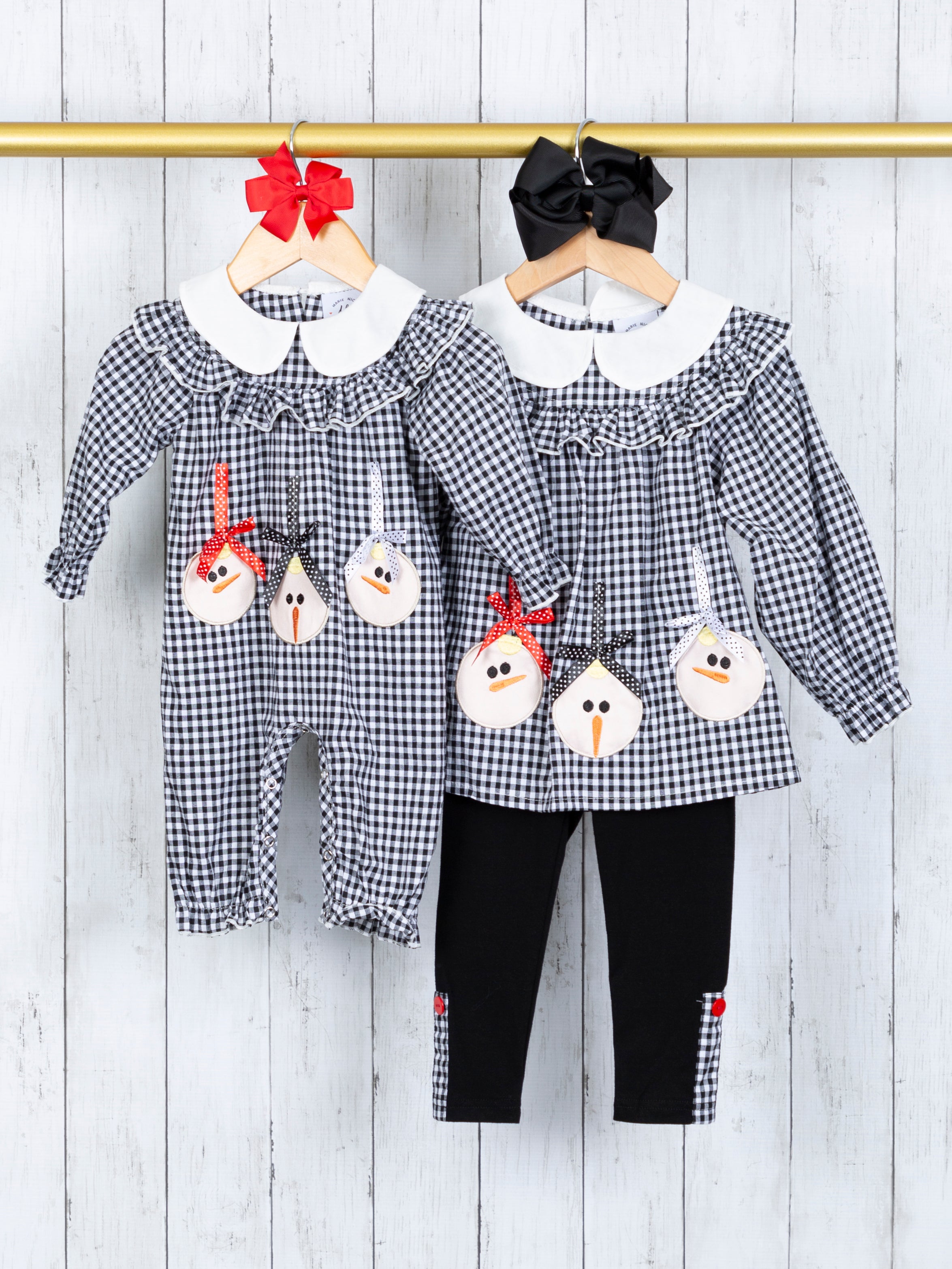 Gingham Snowman Vintage Sister Set