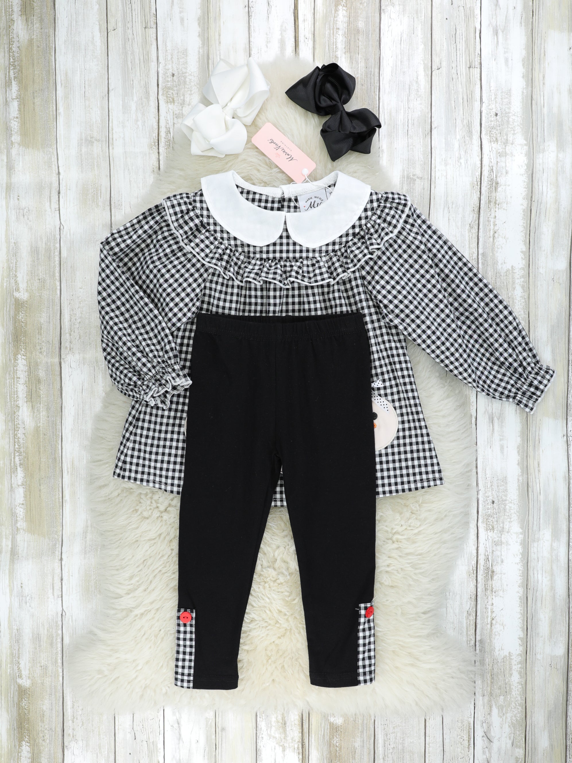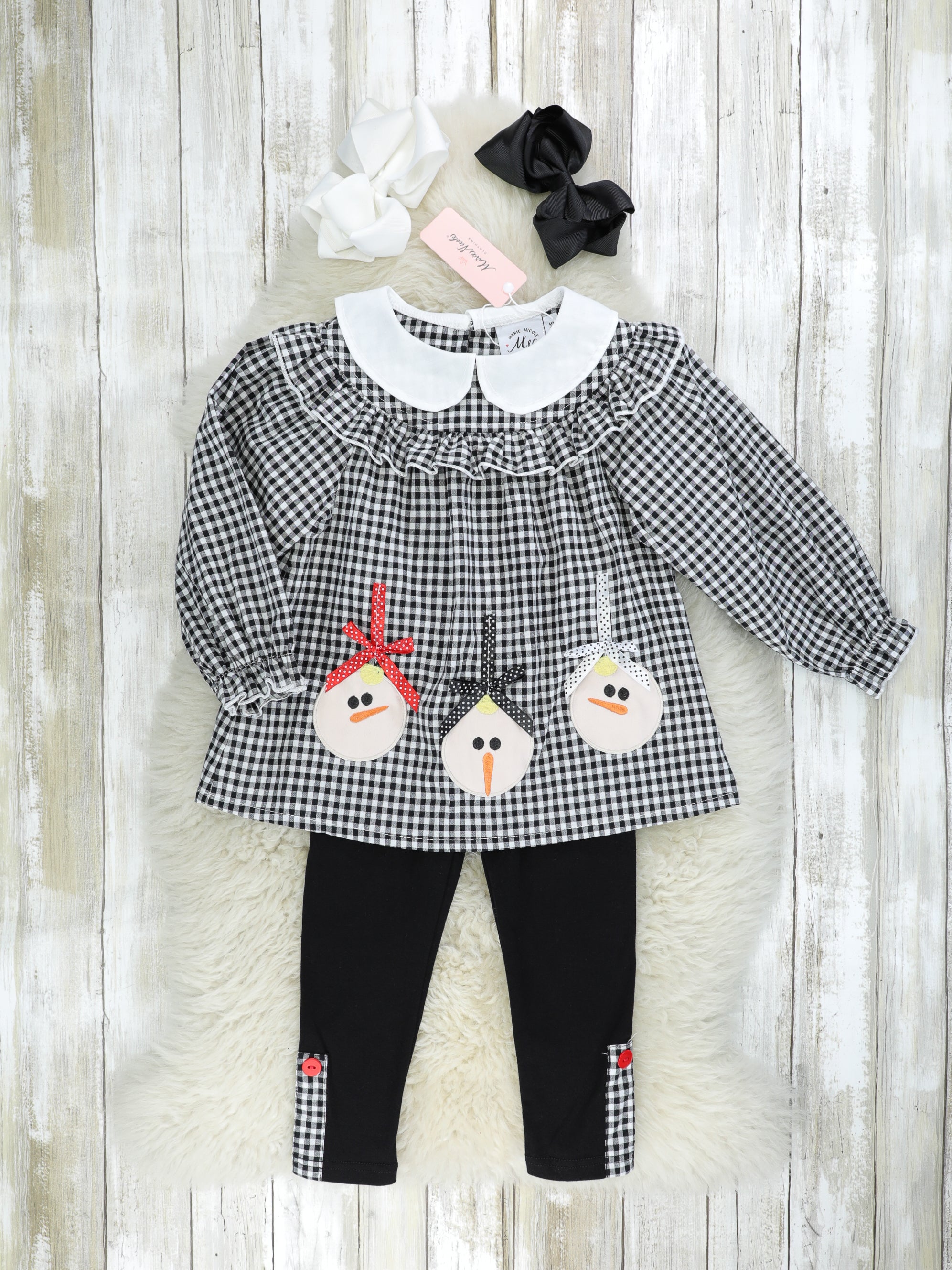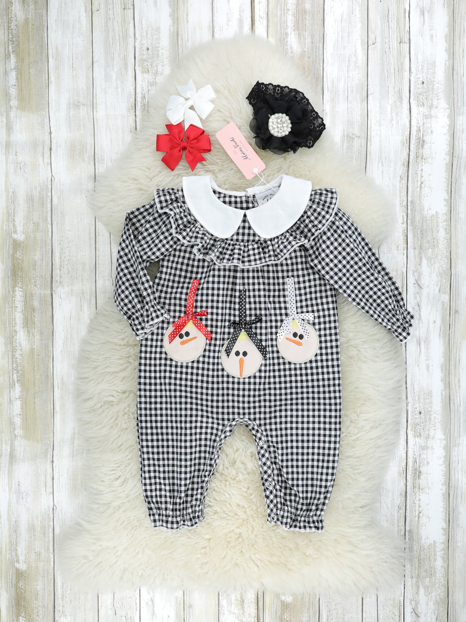 Gingham Snowman Vintage Ruffle Outfit