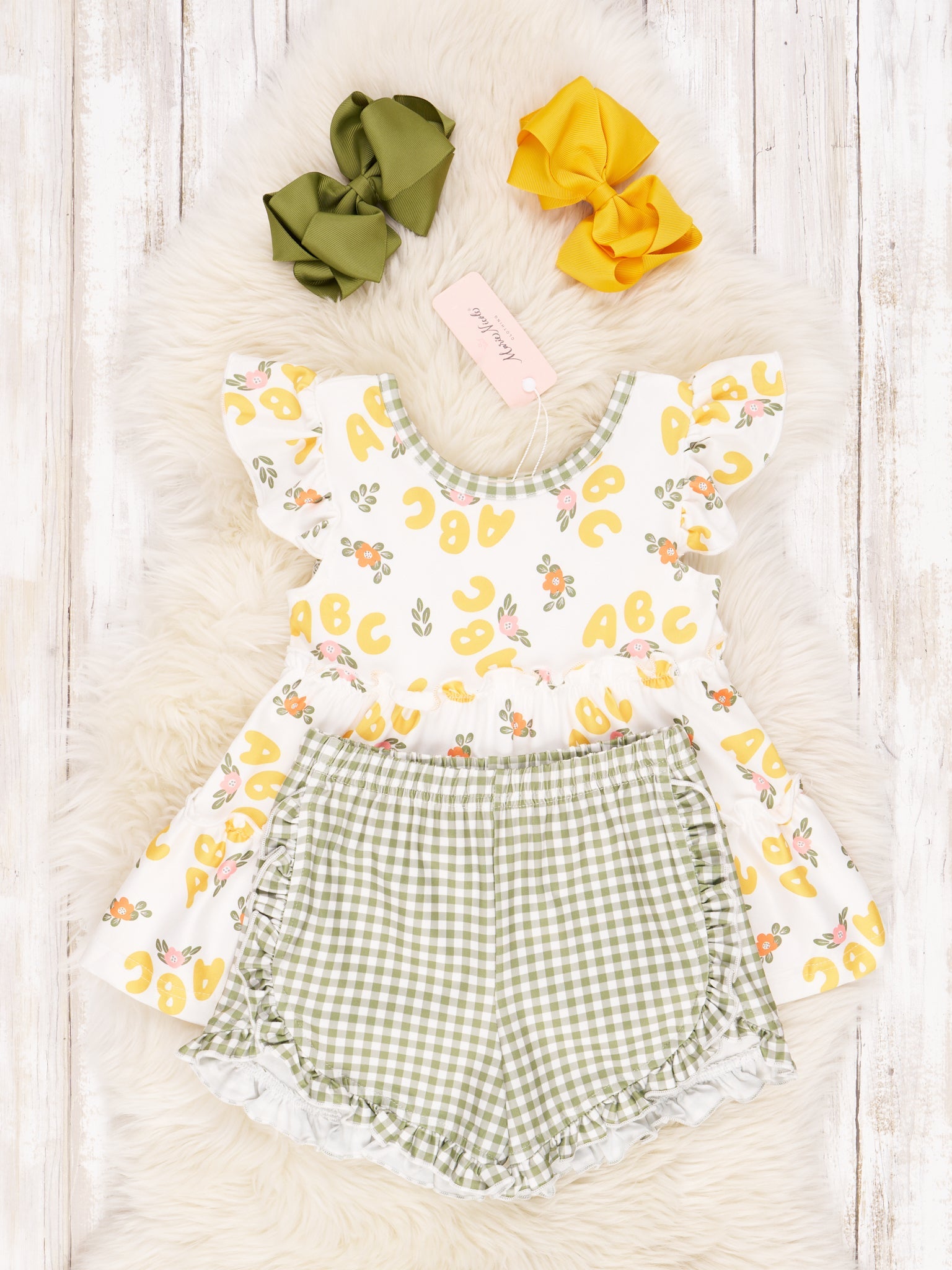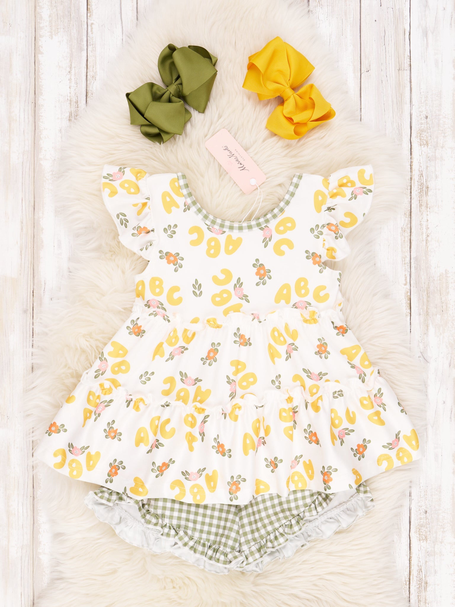 Gingham Yellow ABC Ruffle Outfit